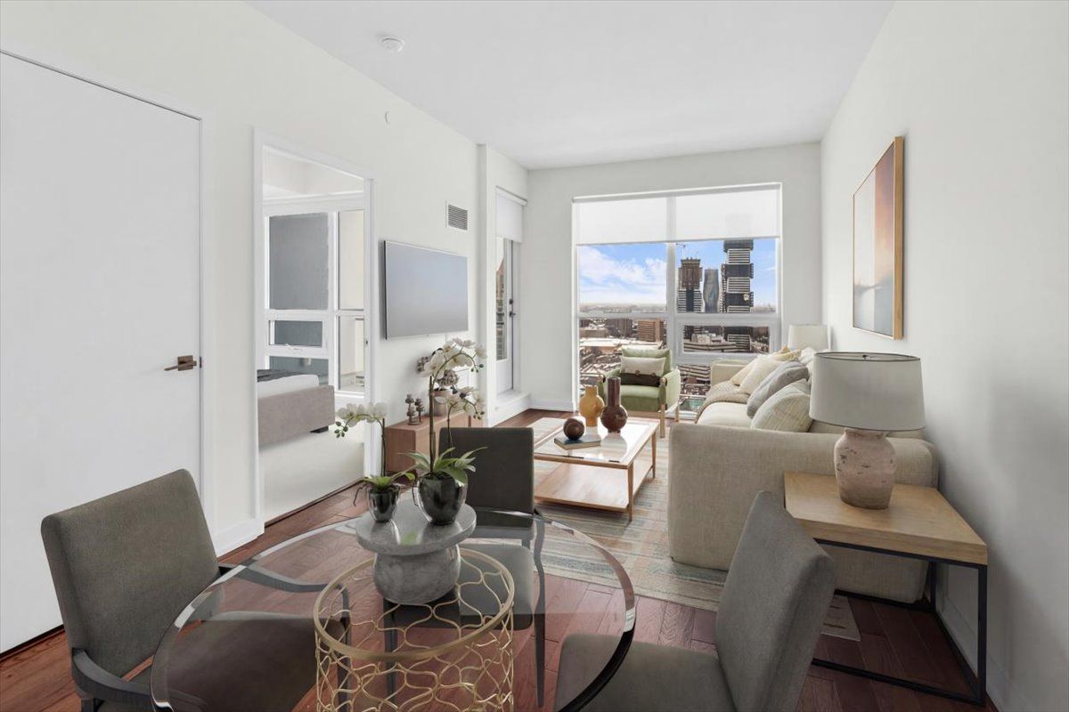 One-bedroom one-washroom condo in the heart of mississauga city centre. Open-concept living and dining area with a modern kitchen featuring stainless steel appliances. Freshly painted. Spacious bedroom with large window and closet. Walk out to a private balcony with clear northeast views. Includes one parking space and one locker. Building offers gym, pool, and 24-hour concierge. Steps to shopping, transit, and everyday amenities. Photos are virtually staged.