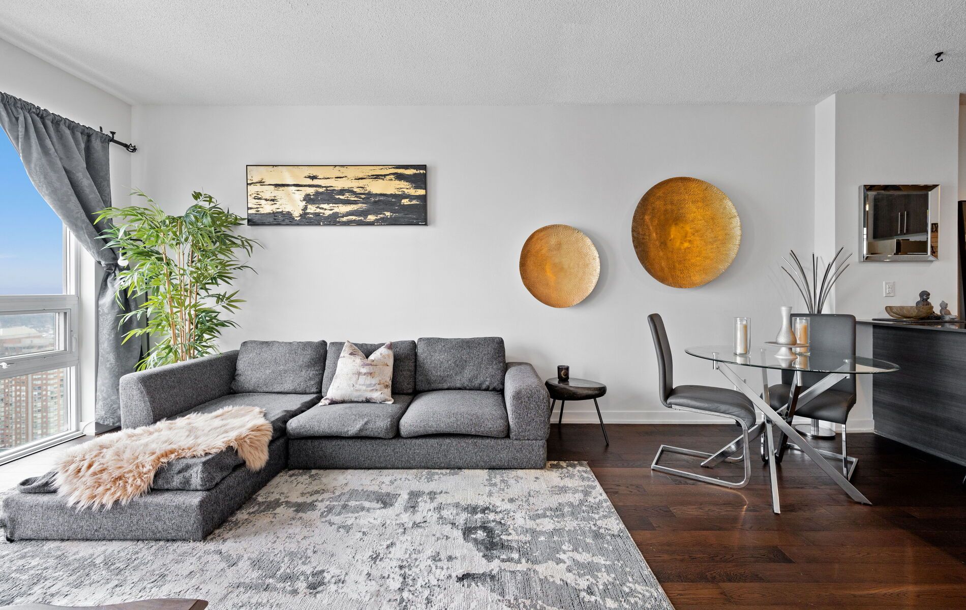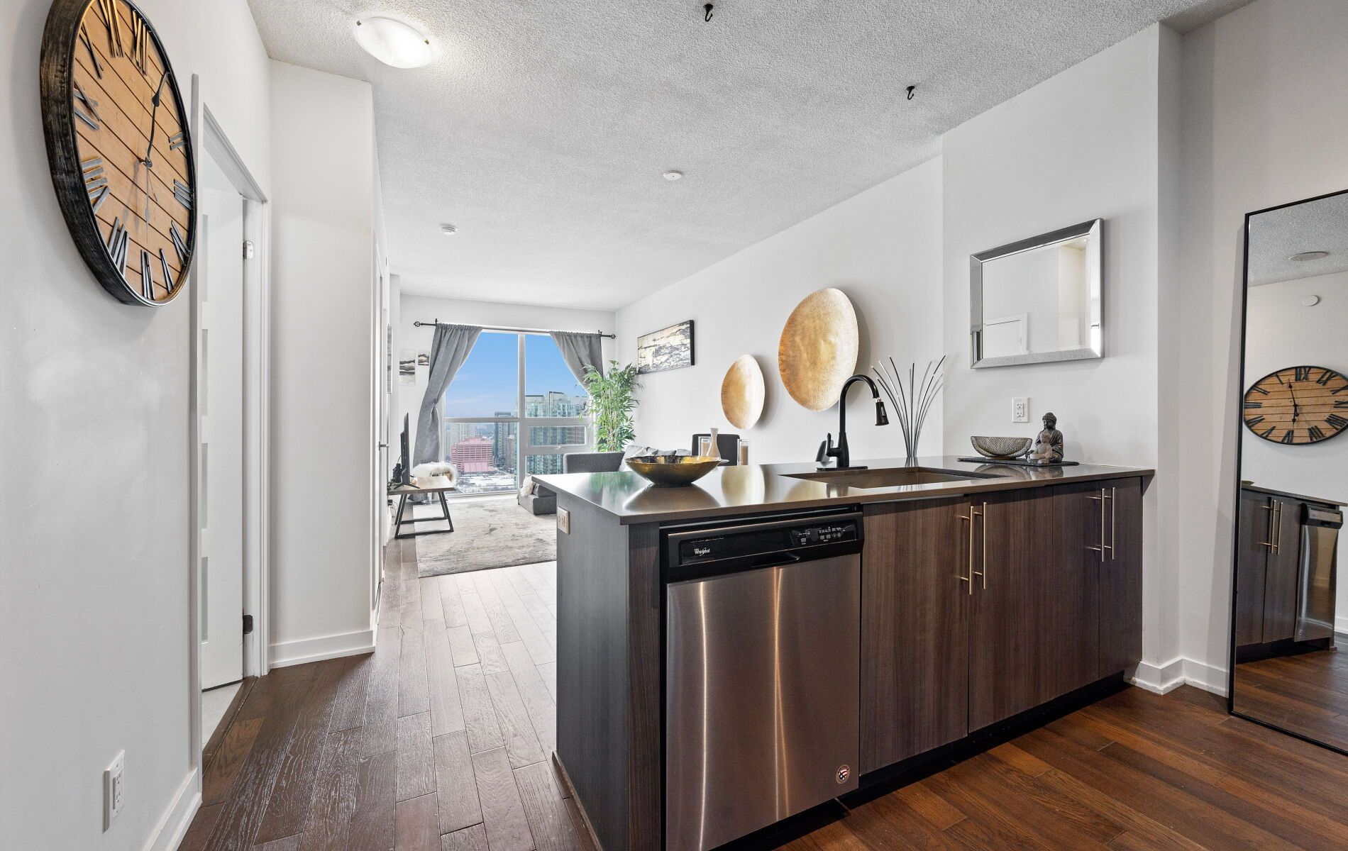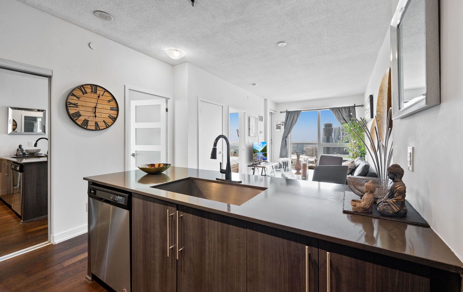 • Stylish 1-bedroom condo with open-concept living and expansive windows.