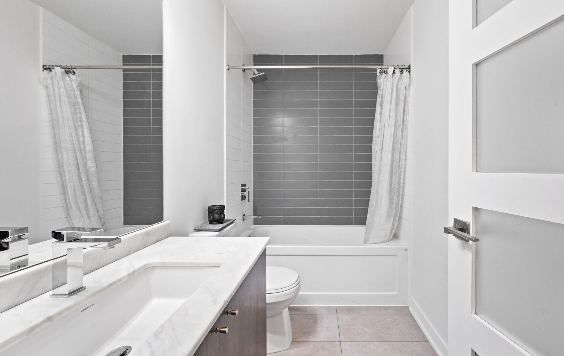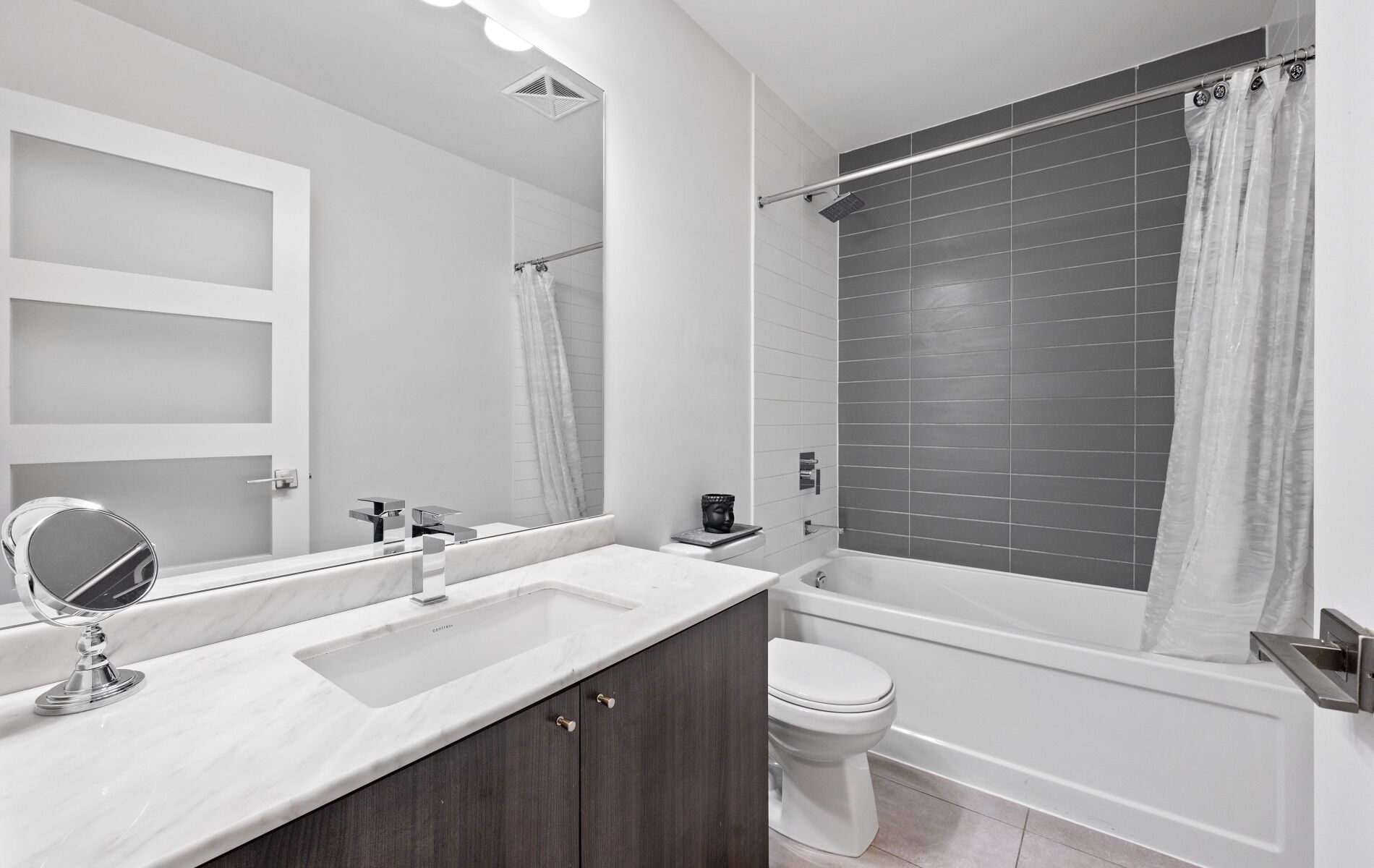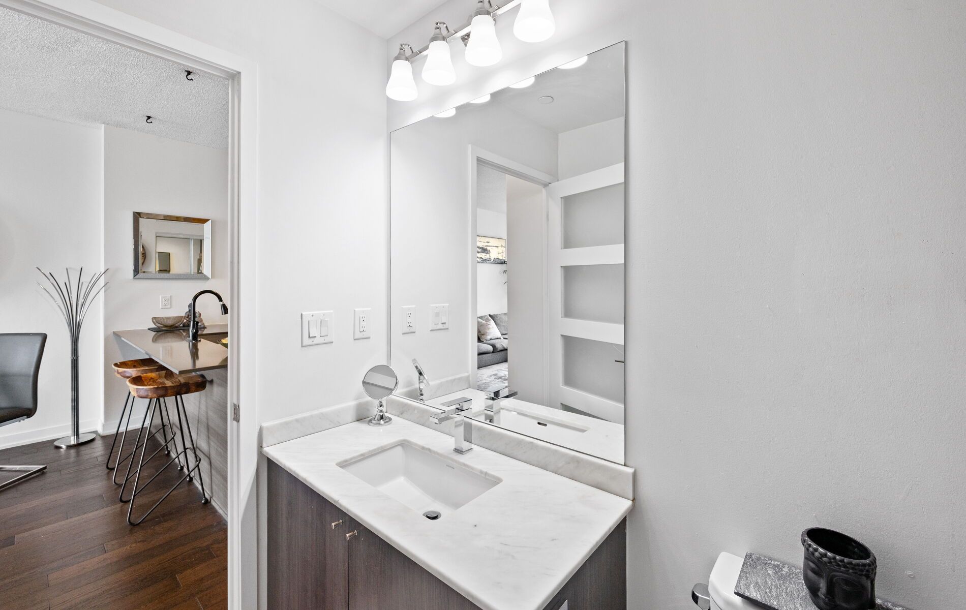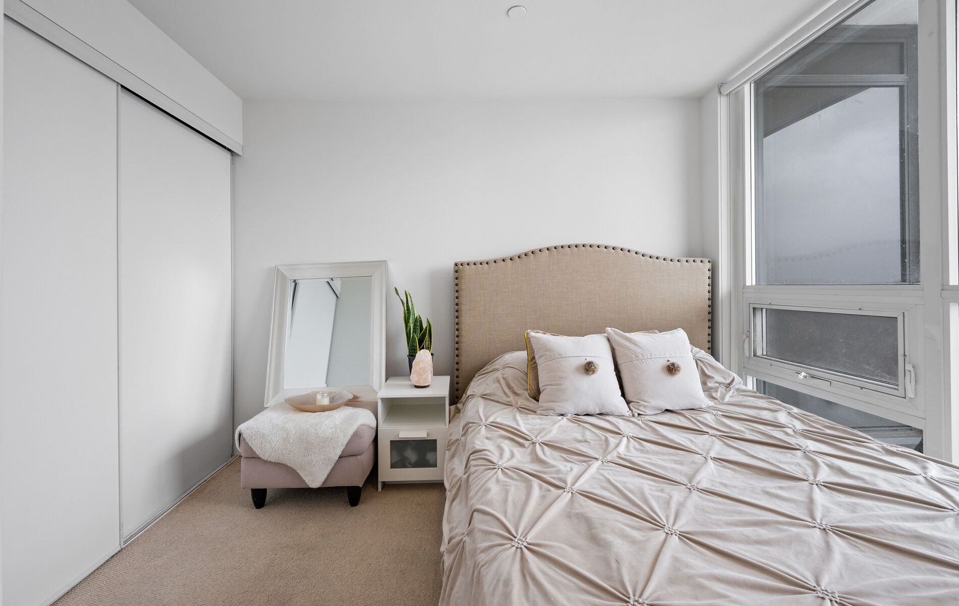 • Stylish 1-bedroom condo with open-concept living and expansive windows.