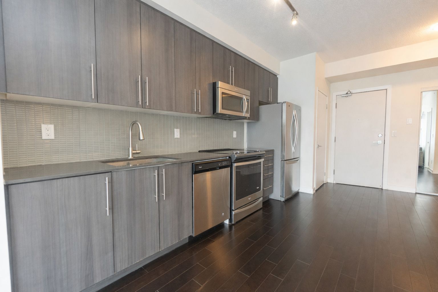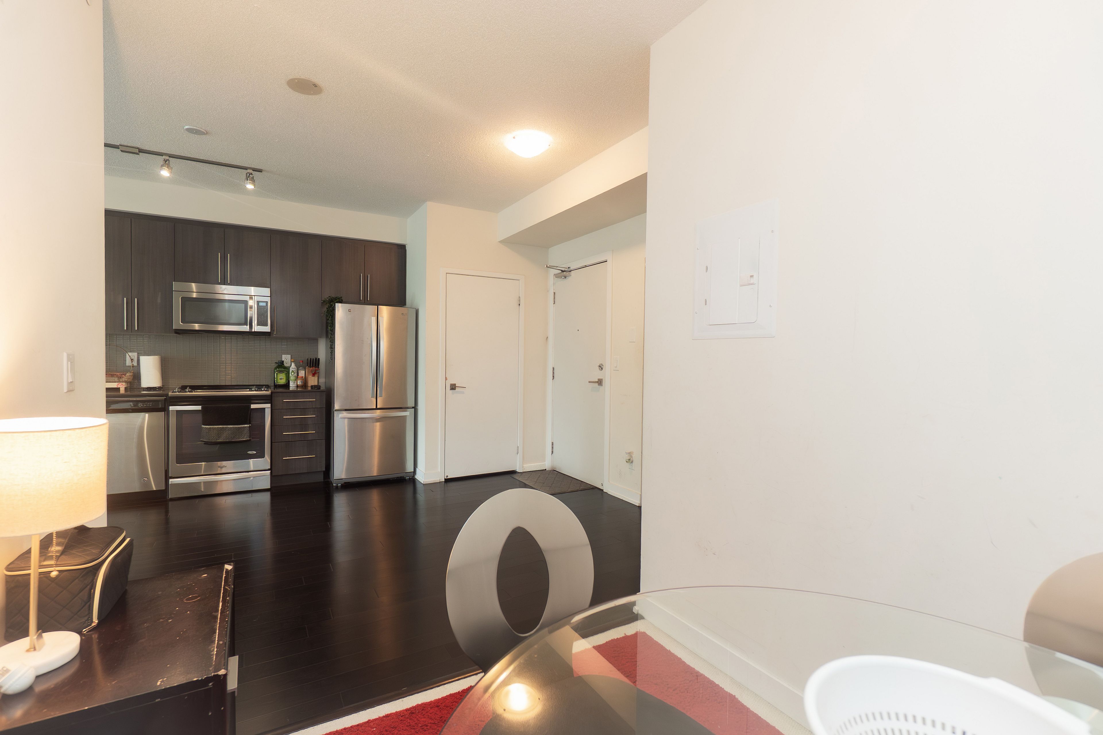 • Bright open-concept layout with hardwood floors and modern kitchen.