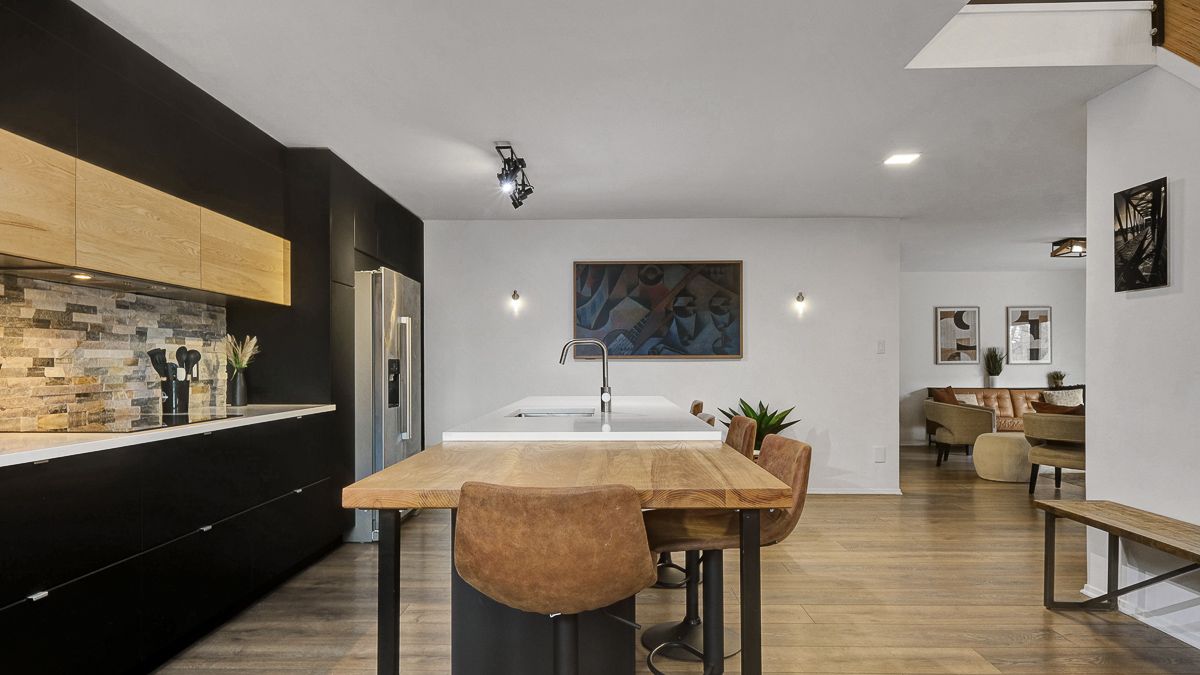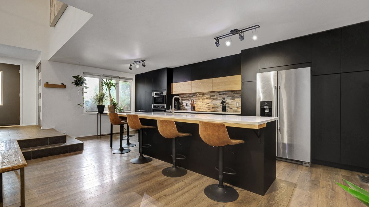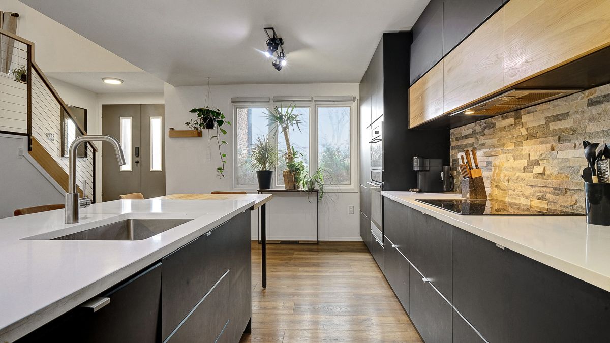 Nestled on a quiet crescent with no through traffic in cfb rockcliffe, this 2336 sq. Ft mid-century modern 4bed/4bath semi-detached infill is the perfect fit for the design oriented buyer who wants a spacious, thoughtfully updated, and architecturally interesting home that perfectly incorporates indoor and outdoor living. Warm and inviting front foyer with impressive sightlines of the open staircase and cathedral ceilings. Stunning chef's kitchen with sleek low-profile black cabinetry, quartz countertops, stone backsplash, stainless steel appliances, and oversized centre island ideal for anyone who loves to entertain. Bright and airy open-concept living area with gas fireplace, stone accent wall, and patio doors that lead to outdoor living area. Striking sun-soaked dining room with vaulted ceilings, wood-burning fireplace and lovely balcony. Convenient main floor powder room. Versatile main floor bedroom ideal for guests, gym or a tucked away home office. Spacious primary bedroom retreat with walk-in closet and spa-like 3-piece ensuite with oversized vanity and walk-in shower. Well-proportioned secondary bedrooms. Updated main bathroom. Practical second floor laundry room. Fully-finished lower-level is the ideal space for guests, teenager or to enjoy quality family time with the cozy rec-room, remodelled 3-piece bathroom with oversized walk-in shower, and room for the in-laws. Inside entry to your 1-car attached garage with electric car outlet. Fully-fenced outdoor living space with patio, sauna, tiered garden beds, and mature vegetation. Take advantage of this convenient central location on the perched next to the newly built sub-division at cfb rockcliffe. Easy access to the montfort hospital, cmhc, csis, nrc headquarters, and just a short commute from the nation's capital downtown core.