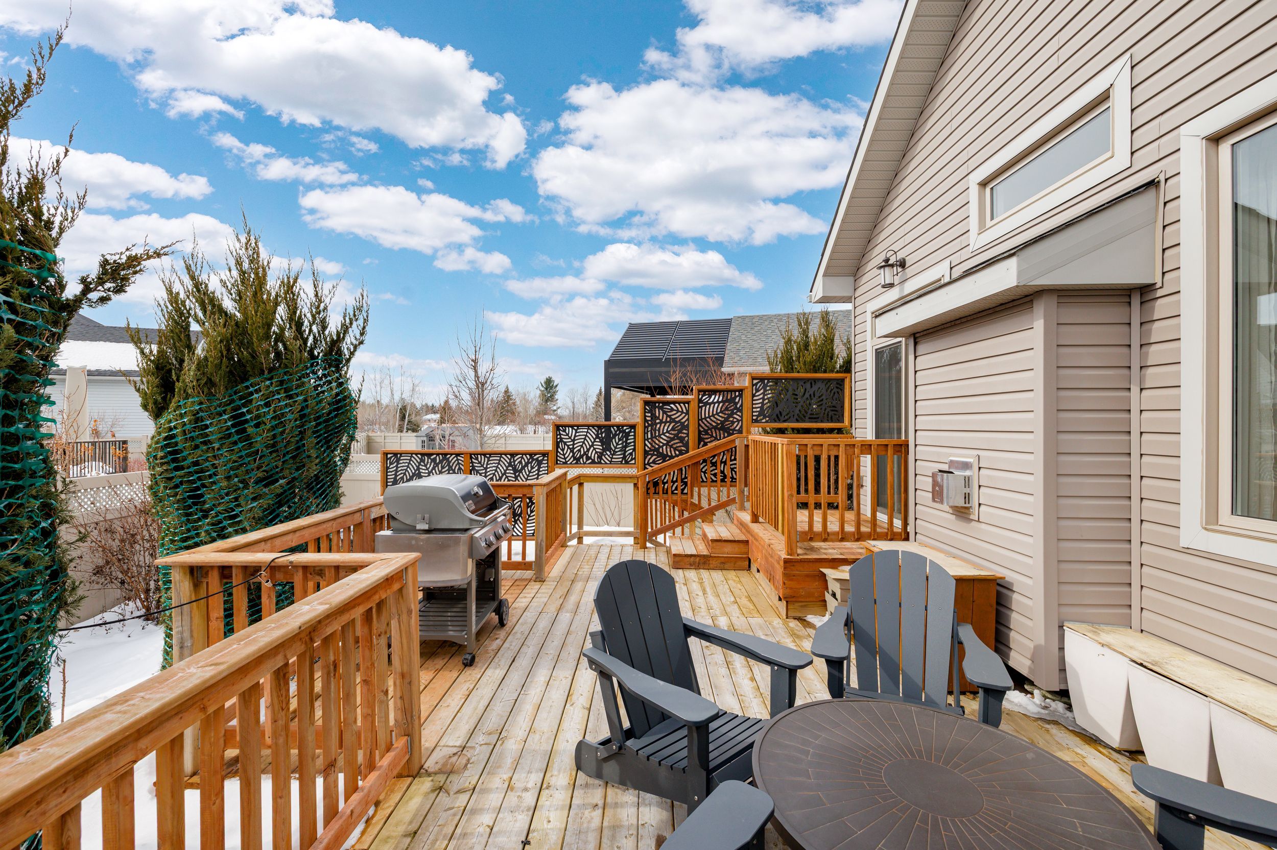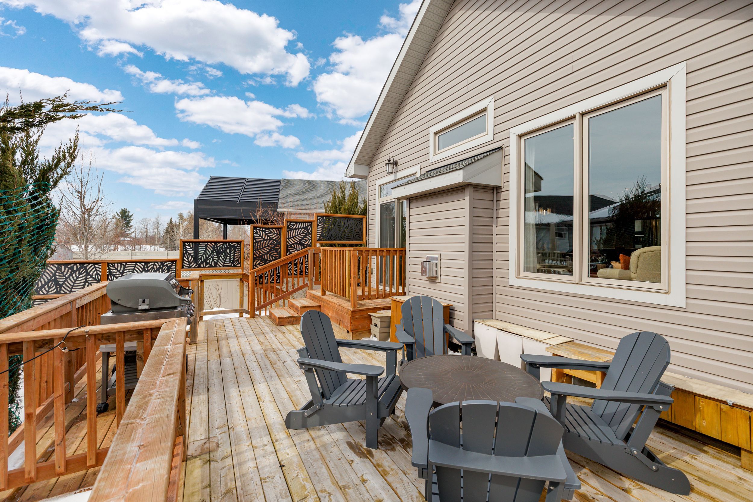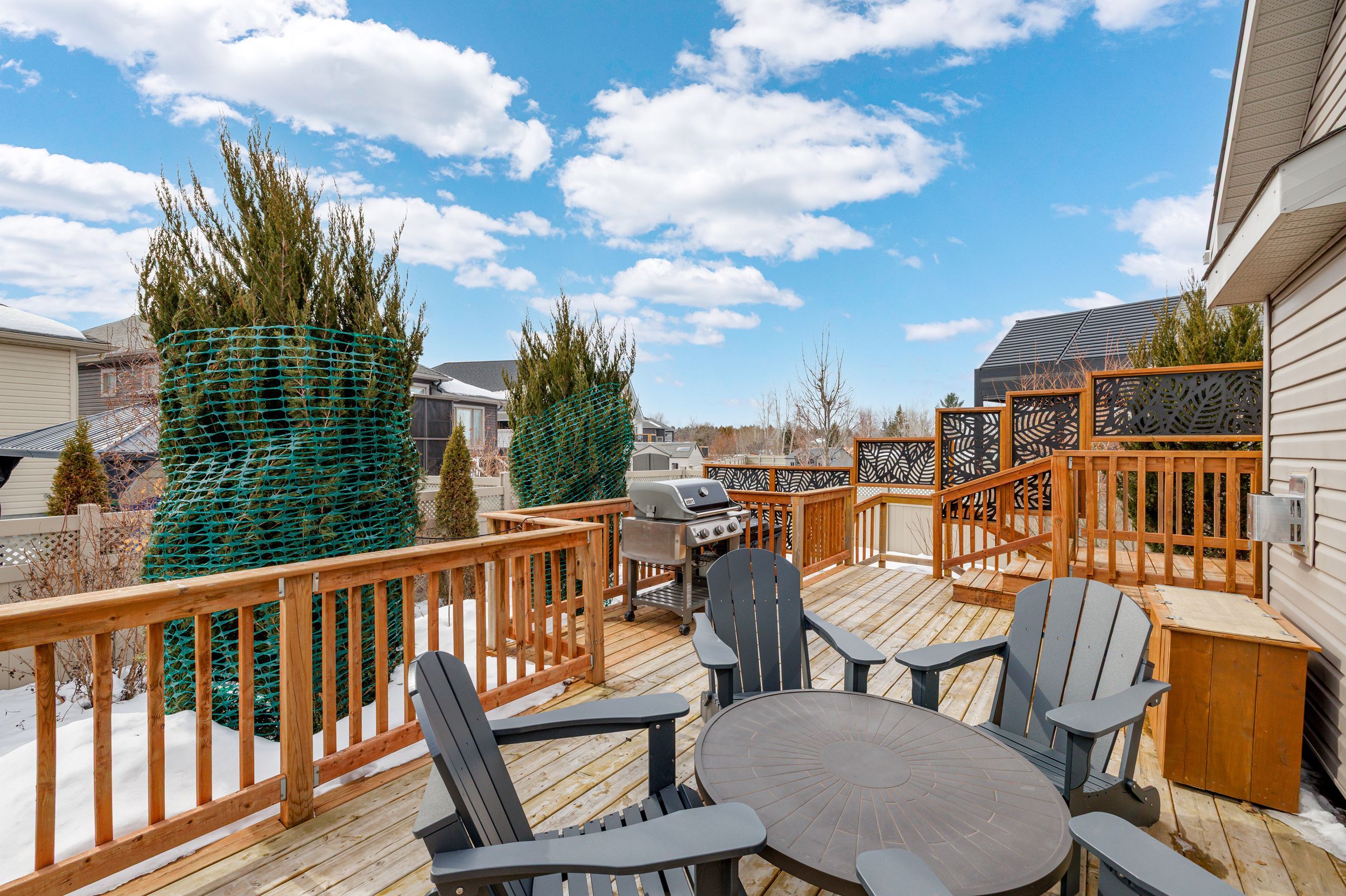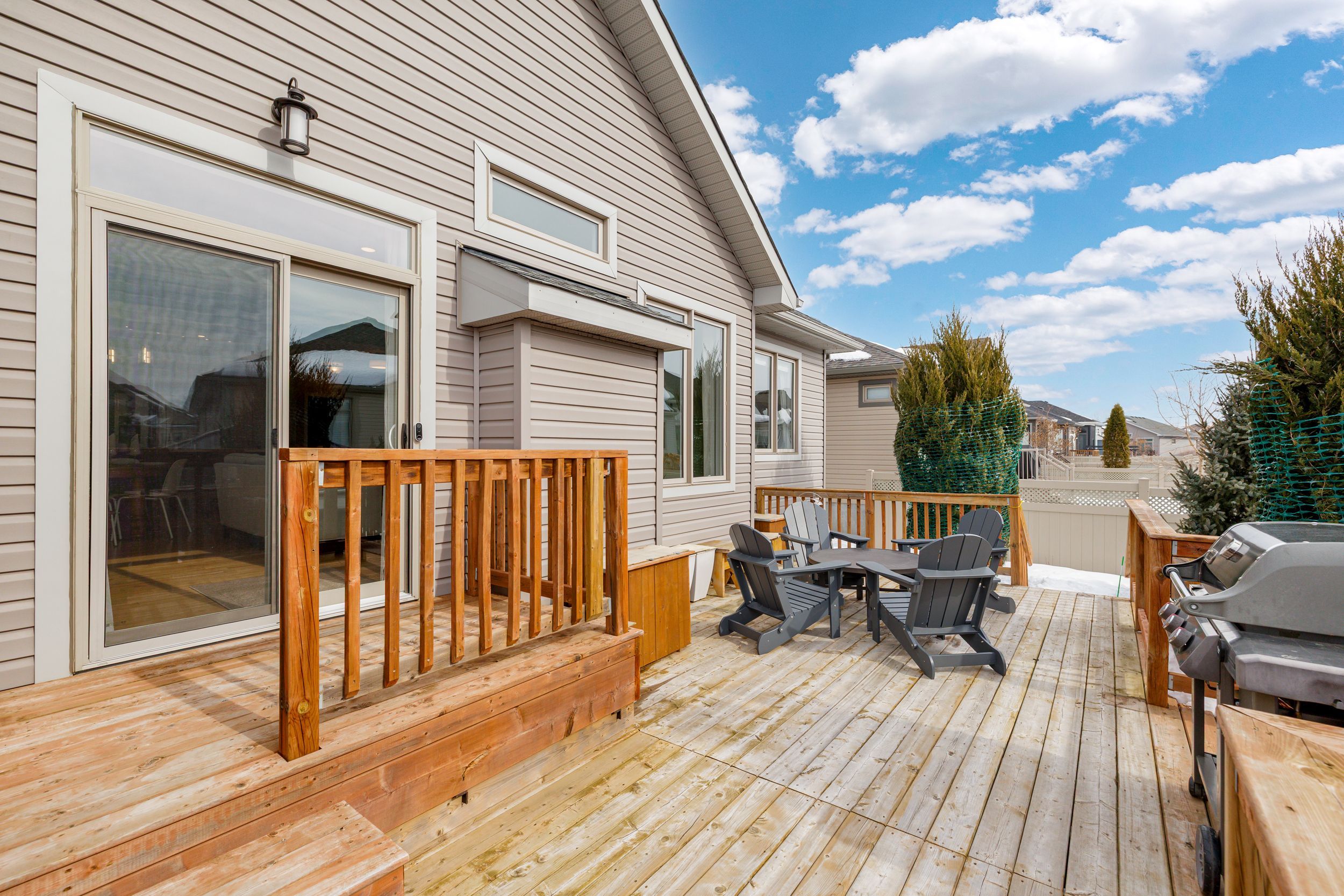 Welcome to this beautifully maintained sawgrass model by eq homes in the highly sought-after equinelle community - the perfect blend of comfort and elegance. This stunning bungalow offers 2 bedrooms plus a versatile main floor den, ideal for a home office or a quiet reading space overlooking the front yard. The bright and airy great room features soaring vaulted ceilings, upgraded windows for enhanced natural light, and a cozy fireplace that anchors the space beautifully. The kitchen is thoughtfully designed with custom granite countertops and flows seamlessly into the open-concept living and dining areas - perfect for everyday living and entertaining alike. Step outside to your south-facing backyard oasis, complete with a two-tiered deck, beautiful privacy fencing, and a fully fenced yard - ideal for relaxing or hosting guests. The fully finished basement expands your living space with a large recreation area, second fireplace, dedicated office space, and a stylish kitchenette with matching granite countertops - perfect for entertaining or accommodating extended family. A full bathroom with spa-like finishes adds to the lower level's appeal. Additional highlights include three full bathrooms, granite countertops throughout the main floor bathrooms, a double car garage that is insulated, stunning interlock in the front yard, and a generator for added peace of mind. Located in the heart of equinelle, residents have the option to join the exclusive residence club, offering additional lifestyle perks within this vibrant, golf course community. A thoughtfully upgraded home designed for comfort, connection, and effortless living.