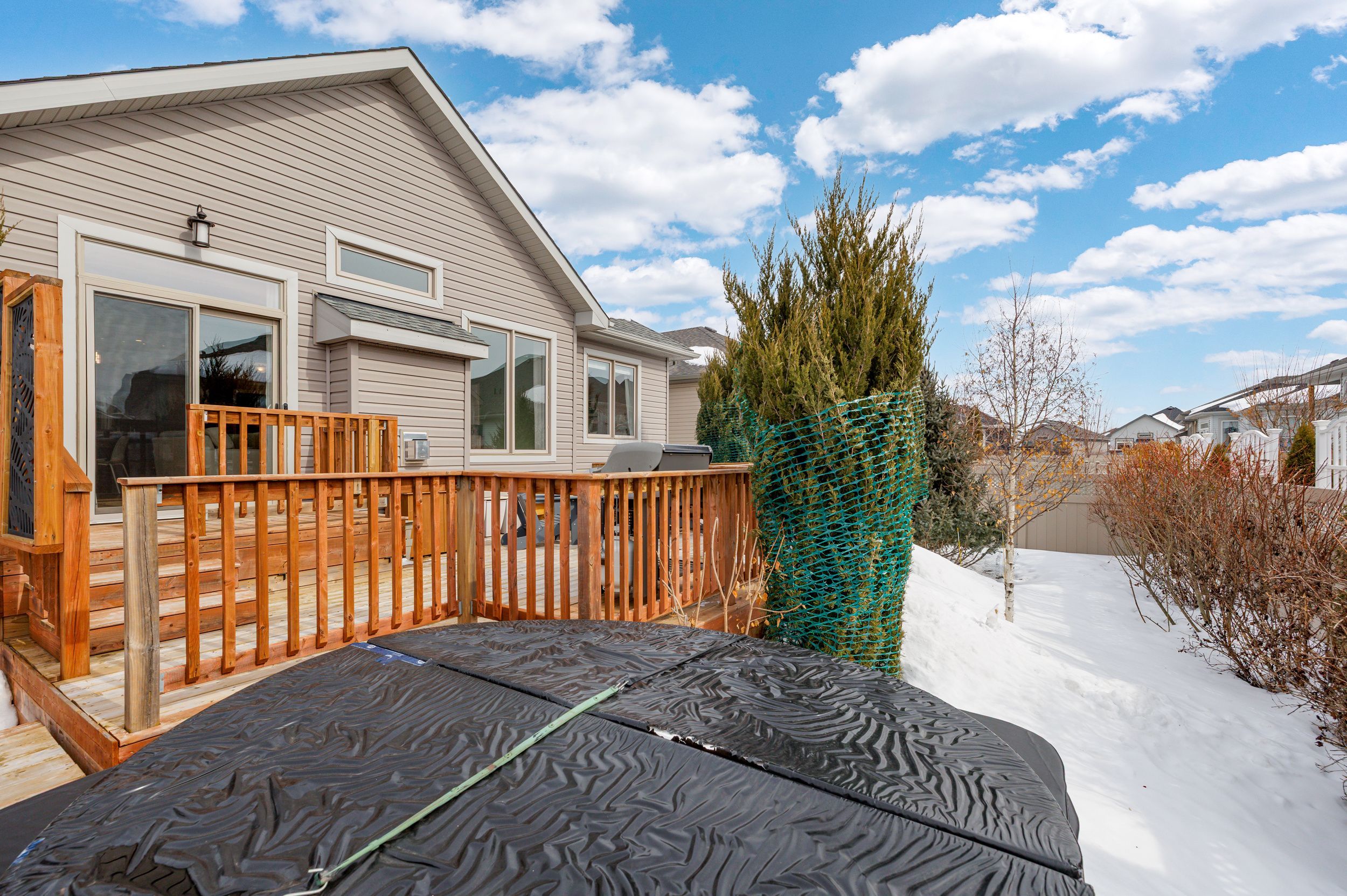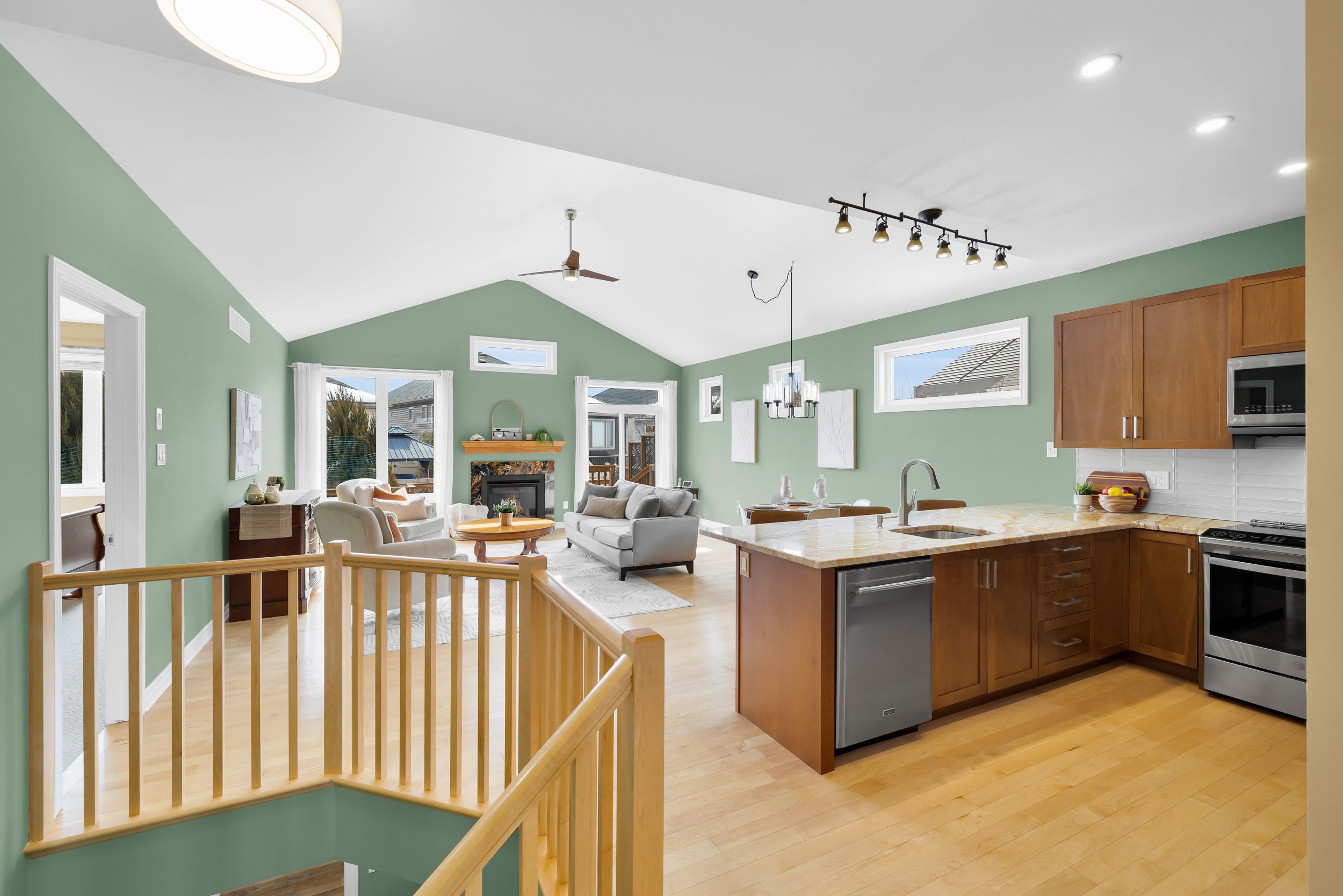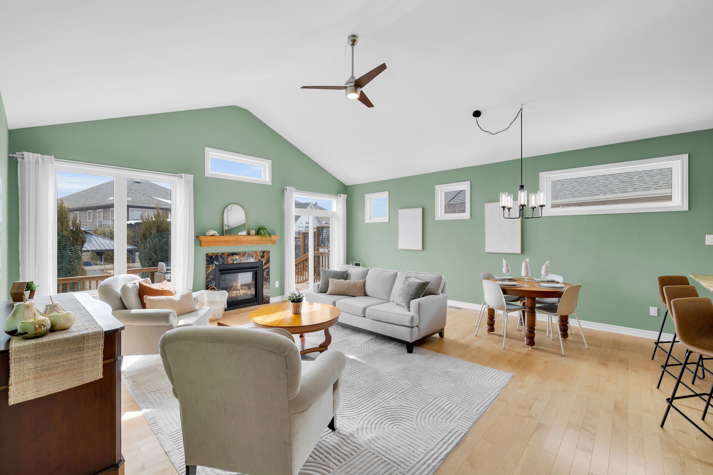 Welcome to this beautifully maintained sawgrass model by eq homes in the highly sought-after equinelle community - the perfect blend of comfort and elegance. This stunning bungalow offers 2 bedrooms plus a versatile main floor den, ideal for a home office or a quiet reading space overlooking the front yard. The bright and airy great room features soaring vaulted ceilings, upgraded windows for enhanced natural light, and a cozy fireplace that anchors the space beautifully. The kitchen is thoughtfully designed with custom granite countertops and flows seamlessly into the open-concept living and dining areas - perfect for everyday living and entertaining alike. Step outside to your south-facing backyard oasis, complete with a two-tiered deck, beautiful privacy fencing, and a fully fenced yard - ideal for relaxing or hosting guests. The fully finished basement expands your living space with a large recreation area, second fireplace, dedicated office space, and a stylish kitchenette with matching granite countertops - perfect for entertaining or accommodating extended family. A full bathroom with spa-like finishes adds to the lower level's appeal. Additional highlights include three full bathrooms, granite countertops throughout the main floor bathrooms, a double car garage that is insulated, stunning interlock in the front yard, and a generator for added peace of mind. Located in the heart of equinelle, residents have the option to join the exclusive residence club, offering additional lifestyle perks within this vibrant, golf course community. A thoughtfully upgraded home designed for comfort, connection, and effortless living.