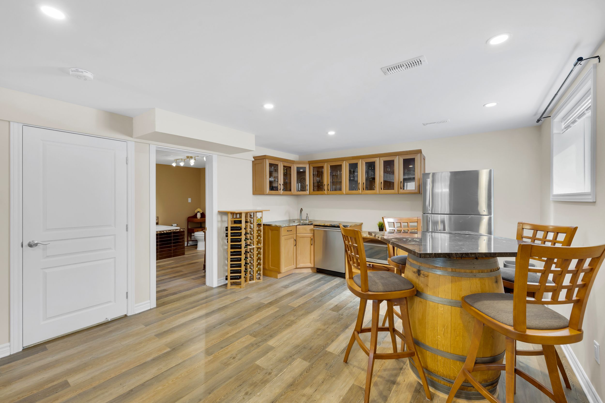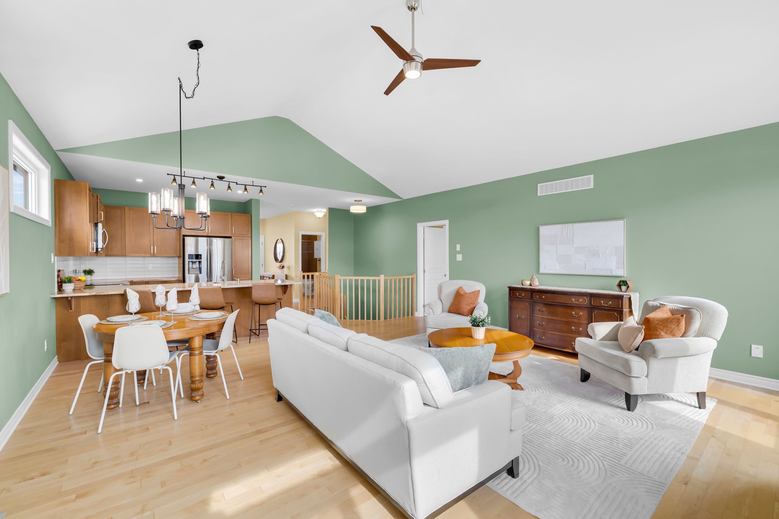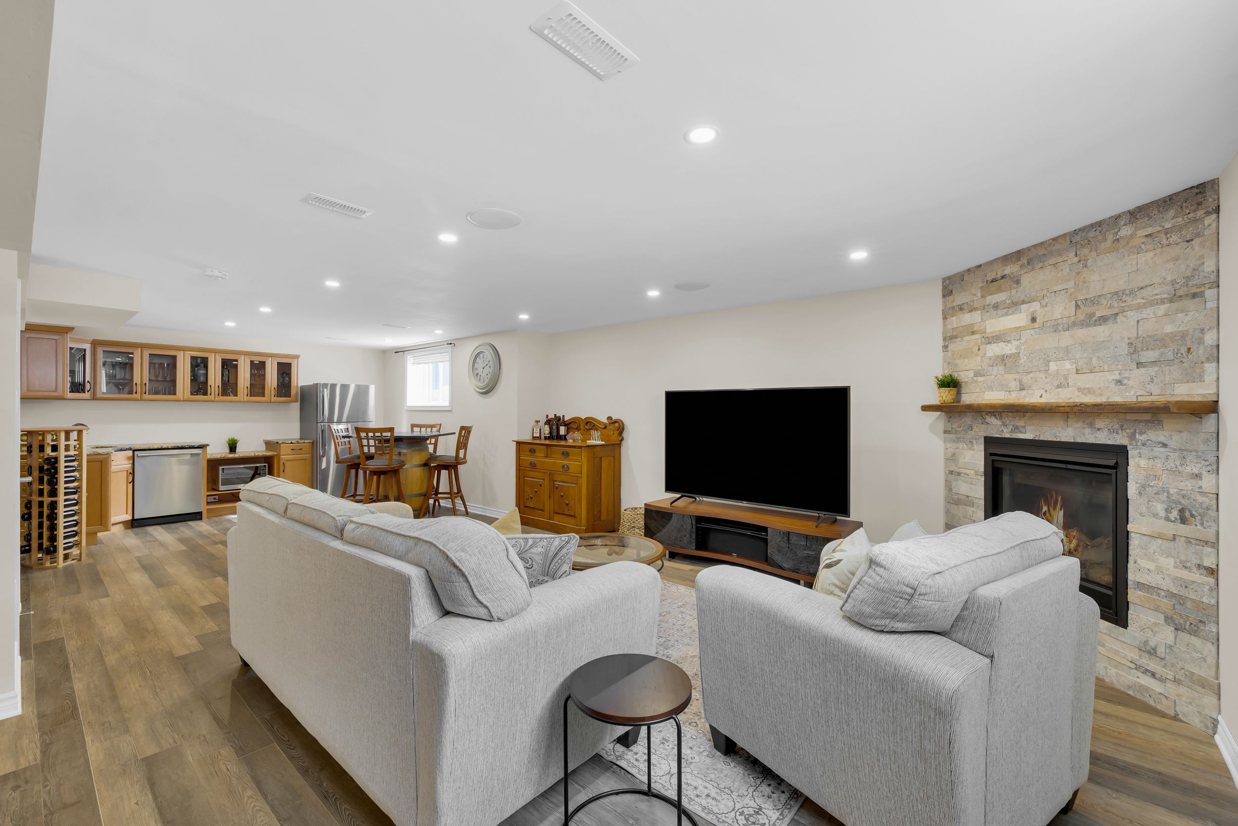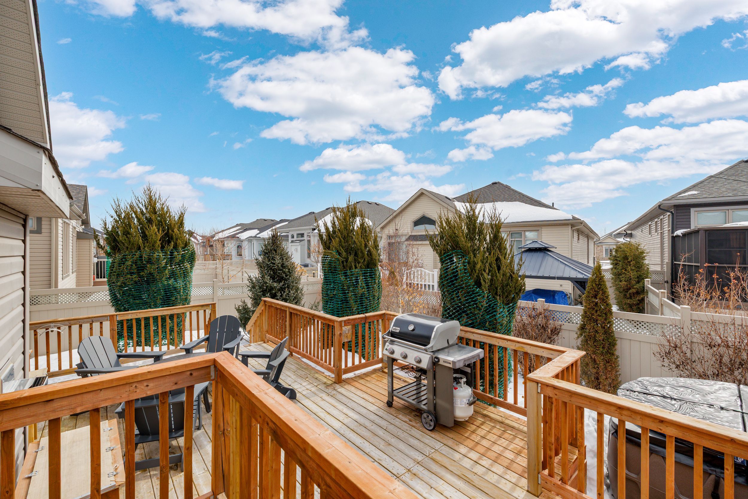 Welcome to this beautifully maintained sawgrass model by eq homes in the highly sought-after equinelle community - the perfect blend of comfort and elegance. This stunning bungalow offers 2 bedrooms plus a versatile main floor den, ideal for a home office or a quiet reading space overlooking the front yard. The bright and airy great room features soaring vaulted ceilings, upgraded windows for enhanced natural light, and a cozy fireplace that anchors the space beautifully. The kitchen is thoughtfully designed with custom granite countertops and flows seamlessly into the open-concept living and dining areas - perfect for everyday living and entertaining alike. Step outside to your south-facing backyard oasis, complete with a two-tiered deck, beautiful privacy fencing, and a fully fenced yard - ideal for relaxing or hosting guests. The fully finished basement expands your living space with a large recreation area, second fireplace, dedicated office space, and a stylish kitchenette with matching granite countertops - perfect for entertaining or accommodating extended family. A full bathroom with spa-like finishes adds to the lower level's appeal. Additional highlights include three full bathrooms, granite countertops throughout the main floor bathrooms, a double car garage that is insulated, stunning interlock in the front yard, and a generator for added peace of mind. Located in the heart of equinelle, residents have the option to join the exclusive residence club, offering additional lifestyle perks within this vibrant, golf course community. A thoughtfully upgraded home designed for comfort, connection, and effortless living.
