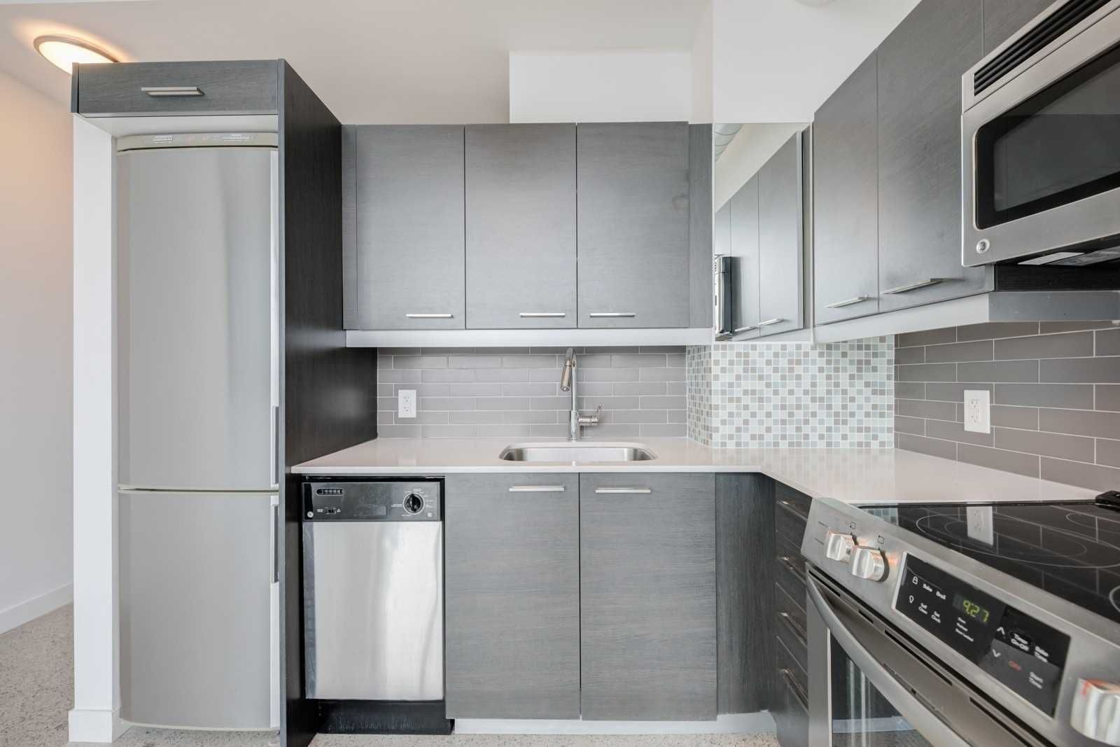 This stunning open-concept loft delivers the kind of character most buyers can only dream about. Soaring high ceilings, polished concrete floors, and a wall of glass flooding the space with morning sun create an atmosphere that is bold, bright, and undeniably cool. The sleek european kitchen features stainless steel appliances and clean modern finishes, while the open layout makes every square foot feel intentional. Step outside onto your oversized 90 sq. Ft. Private balcony and take in the neighbourhood from above. At 560 sq. Ft. Total, this is smart, stylish loft living in one of toronto's most sought-after pockets - steps to the distillery district, riverside, and leslieville with easy streetcar and highway access.