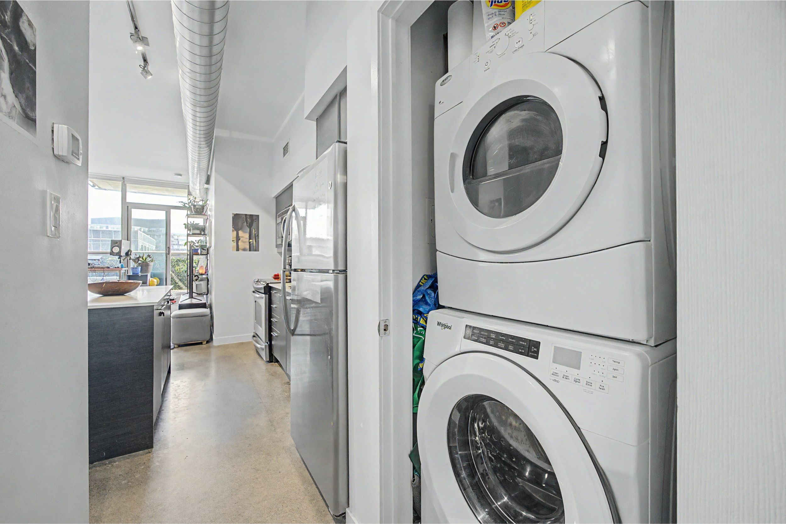 Discover a vibrant cork town lower penthouse condo. Living where king meets queen!, and enjoy bbq with friends and family in your own huge private terrace with sweeping views. The modern bright 10ft ceiling 2+1 bed, 2 bath condo with 897 sqf features stylish polished concrete floors and offer a family-size kitchen with stone countertops, stainless steel appliances and functional island, generous living/dining, large master with ensuite, laundry closet and abundant storage. The boutique building amenities include: ev charger in the visitor parking, rooftop terrace, gym, party/library/billiard room, meeting room, friendly concierge and security. Super easy access in/out of down town with literally 1-2 minutes to the dvp and less than 5 minutes to the gardiner, public transportation, walking distance to the historic distillery and riverside districts, parks, shops and restaurants. Don't miss this urban gem today!