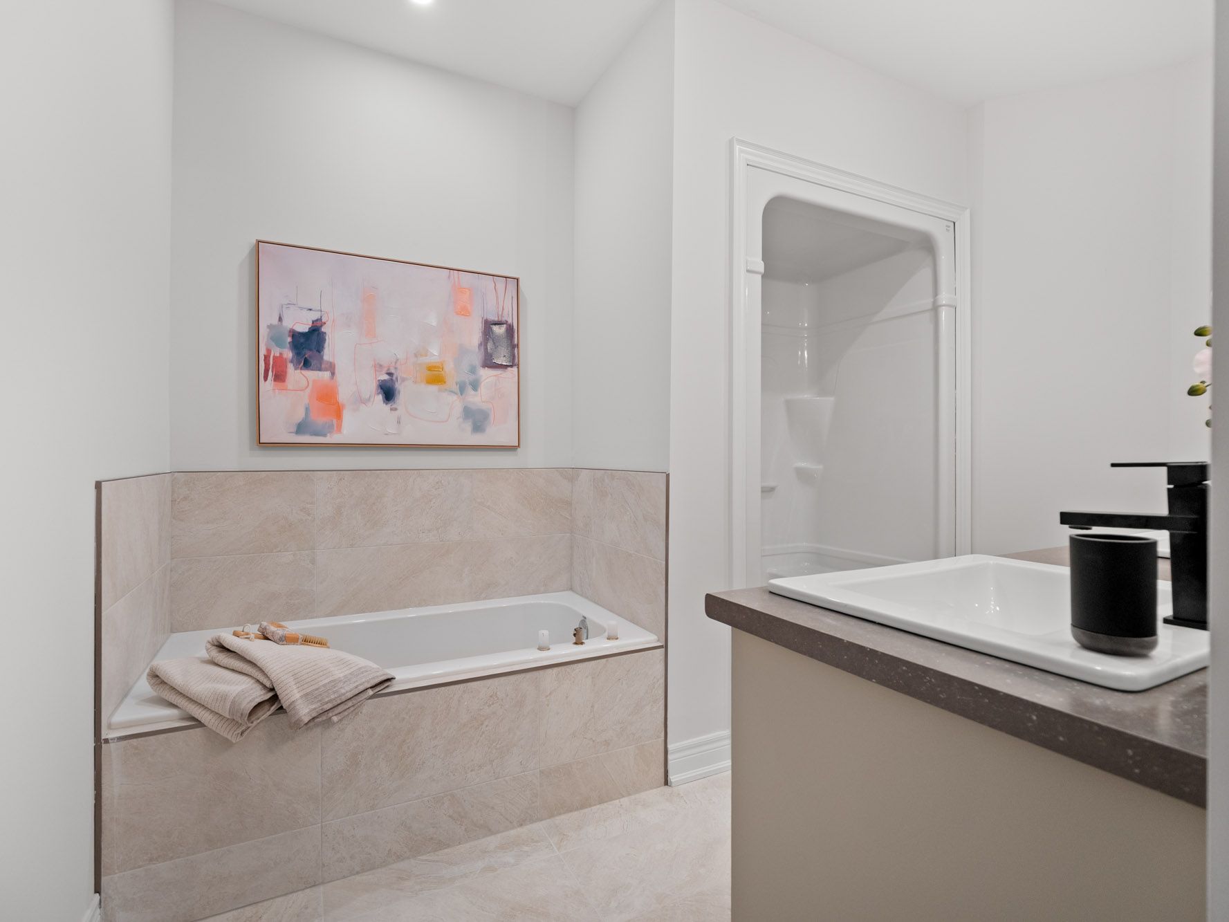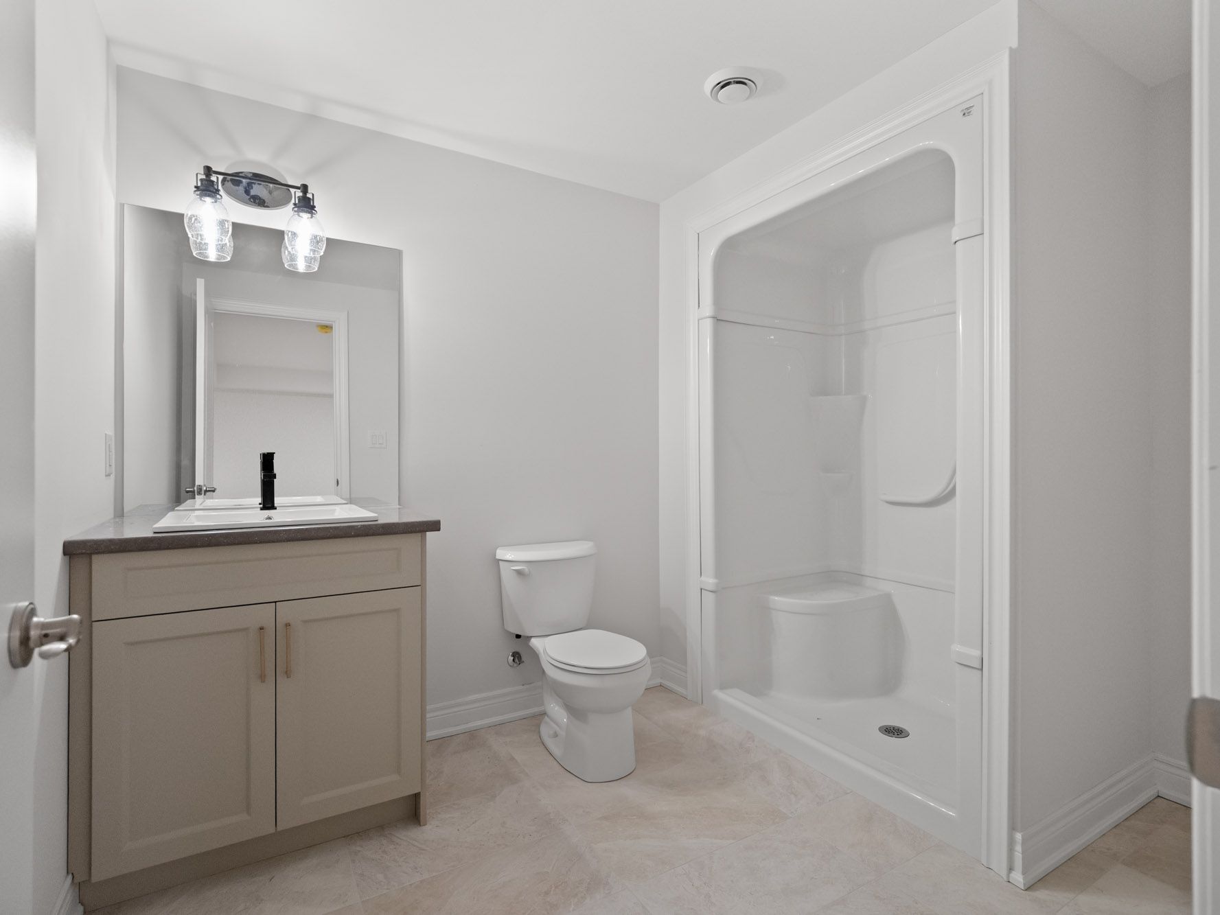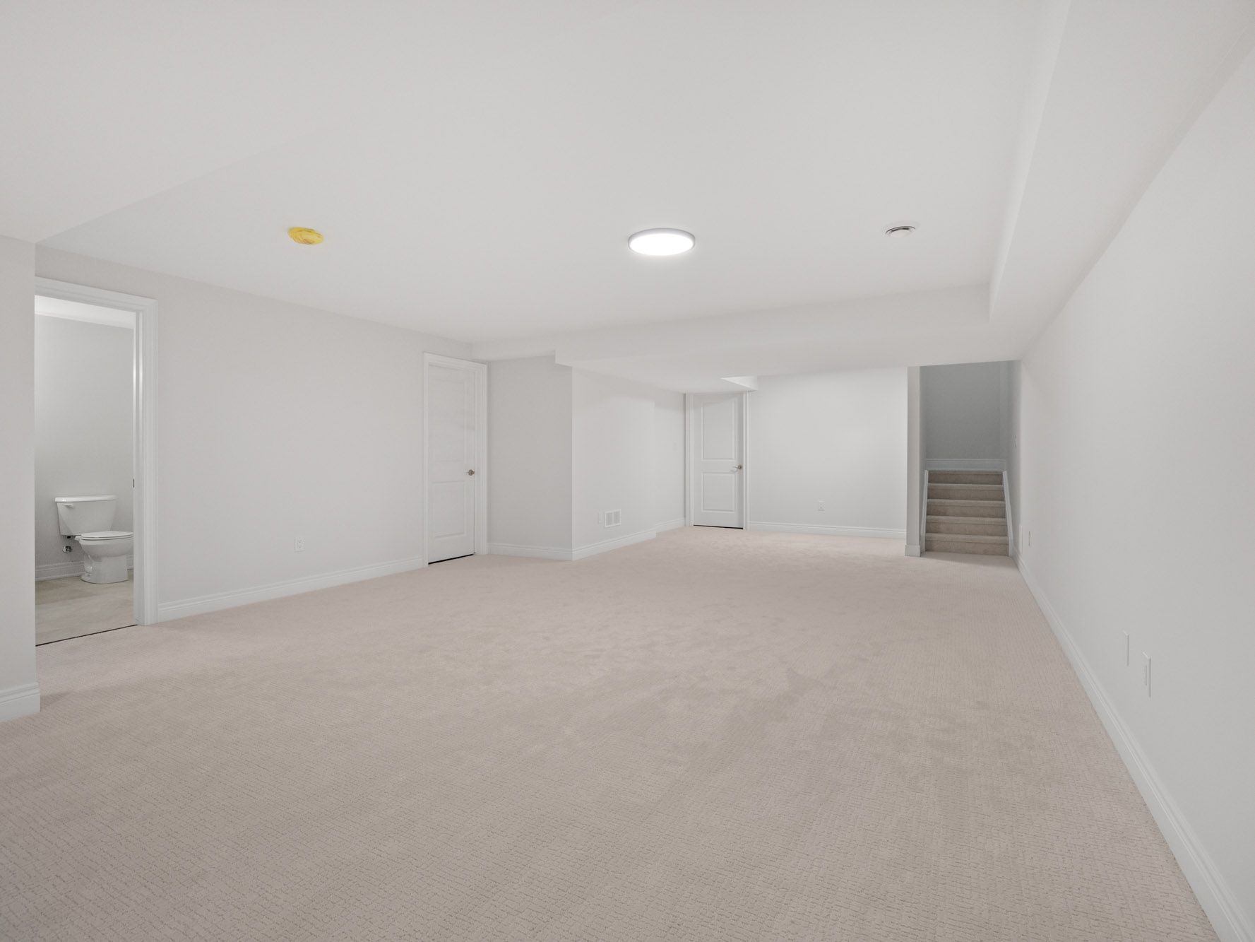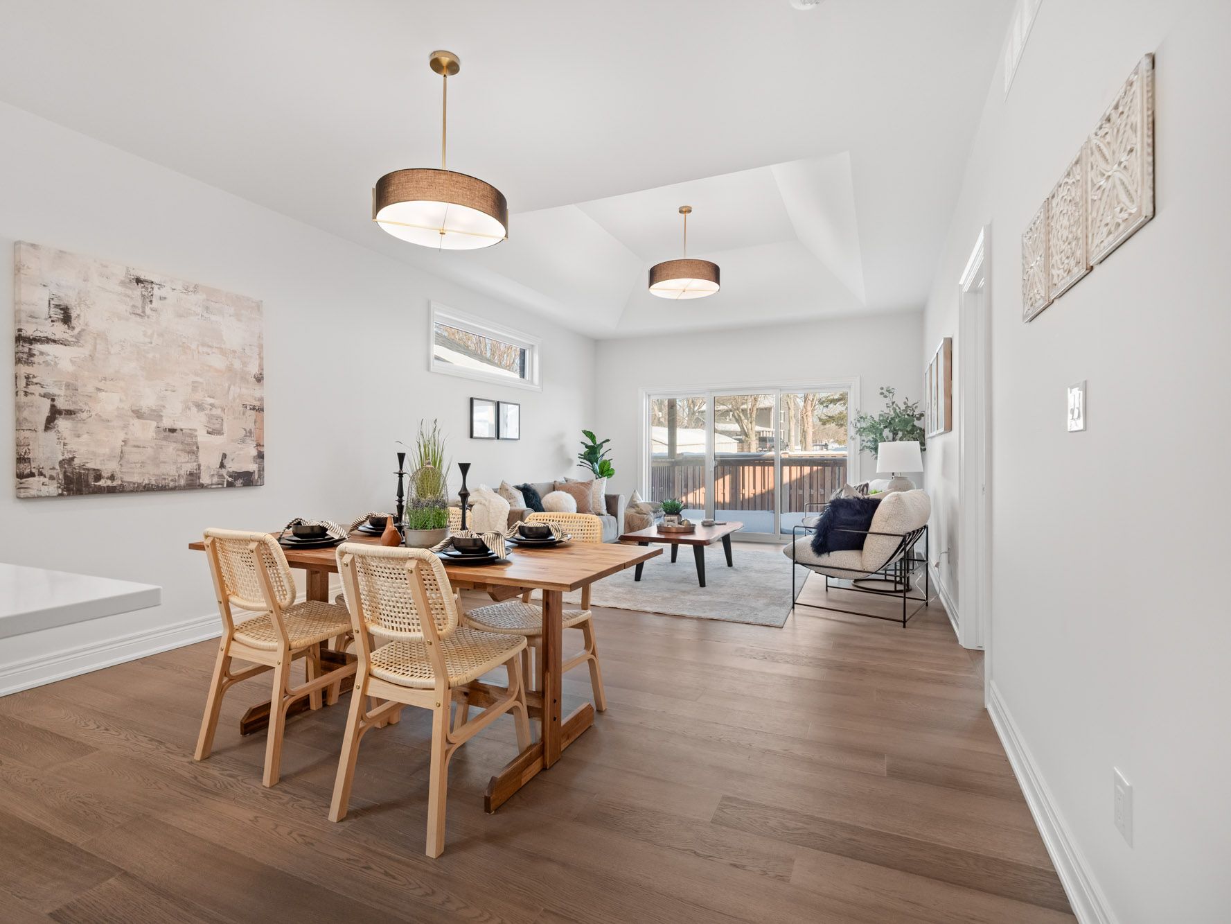 Just completed and move-in ready, this stunning freehold end-unit bungalow townhome showcases timeless, stylish finishes throughout. Finished on both levels, it offers approximately 2,200 sq. Ft. Of thoughtfully designed living space. The main level features engineered hardwood flooring in the principal living areas, complemented by elegant tile in the bathrooms and main-floor laundry room. The kitchen includes a central island, quartz countertops, ample cabinetry, tiled backsplash, undercabinet lighting, prep space, and a convenient walk-in pantry. Enjoy the seamless flow into the bright dining and living area, filled with natural light. The living room is highlighted by a tray ceiling for added character and sliding patio doors leading to a covered deck with four pot lights. The fully finished lower level adds exceptional value, offering a spacious recreation room, an additional bedroom with a large window, and a three-piece bathroom. Outside, the home features a distinguished exterior of brick, stone, and stucco, along with an exposed aggregate concrete driveway leading to the attached garage. Built by a trusted local builder using skilled local trades, this home delivers quality, comfort, and style-making life at royal ridge truly exceptional.
