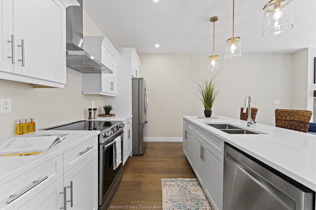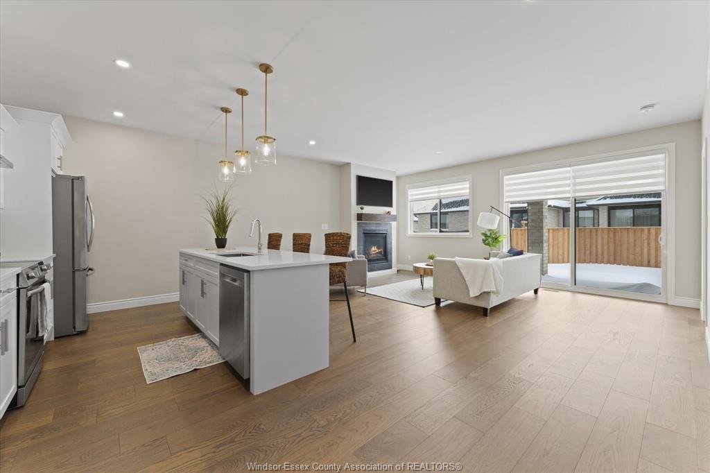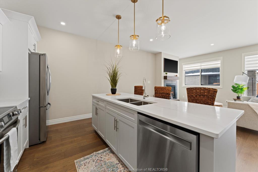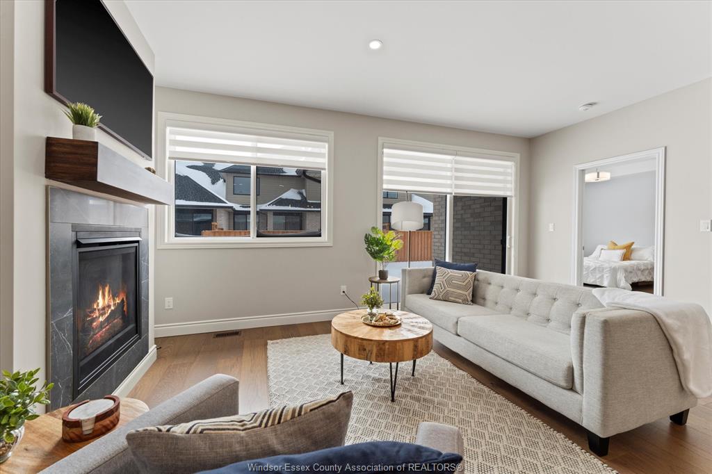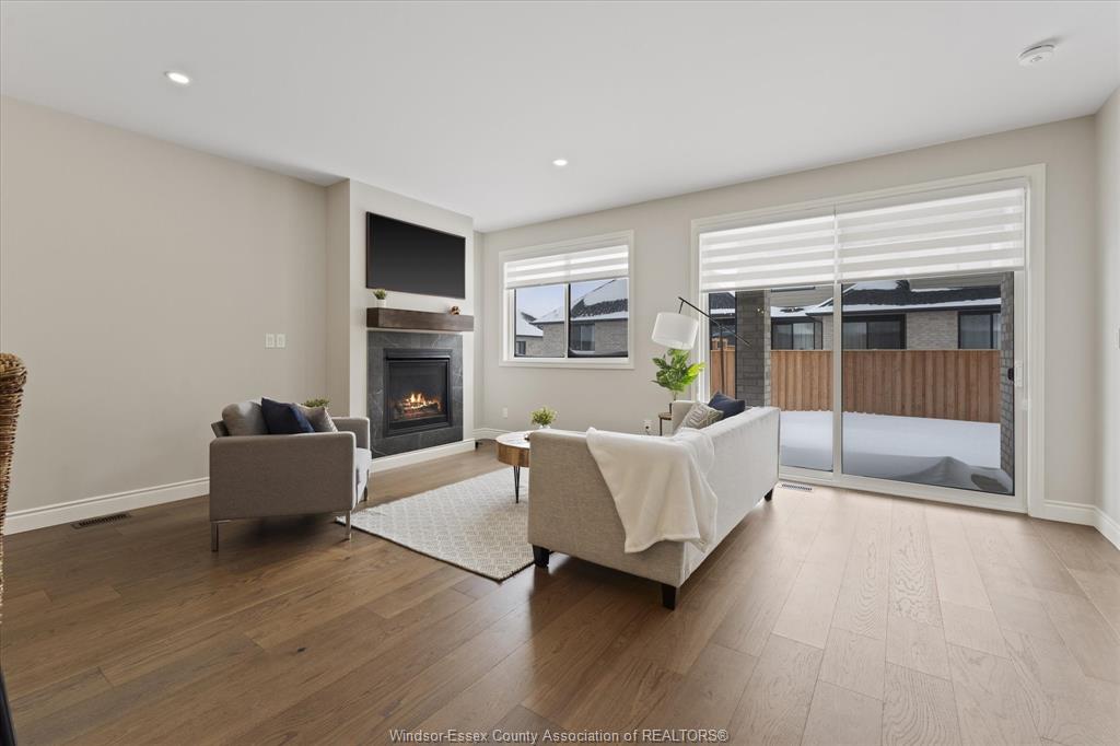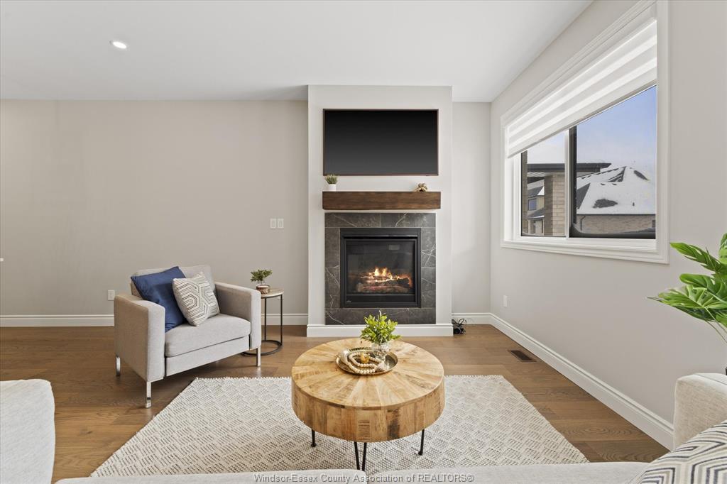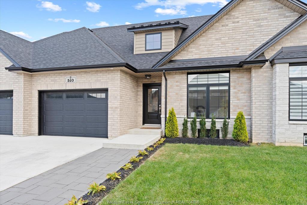 Quality built by everjonge homes, this townhome showcases luxury finishes and 9 ft ceilings!!! This beautifully landscaped, 3-year-new home offers 1,255 sq. Ft. Of thoughtfully designed living space, featuring 2 spacious bedrooms and 2 full bathrooms, including a private ensuite off the primary. Both bedrooms include walk-in closets for added convenience. Enjoy modern finishes throughout, from the bright white kitchen w/ upgraded hardware, quartz countertops and all stainless-steel appliances to the stylish fixtures, cabinetry, flooring and trim. The living room features a cozy gas fireplace w/ custom wood mantle and beautiful hardwood floors, creating a warm, inviting atmosphere. Step outside to both a covered patio and extended open patio with semi-private yard, perfect for relaxing or entertaining. The full basement offers endless potential with a rough-in bath and egress window. Just minutes to historical amherstburg.