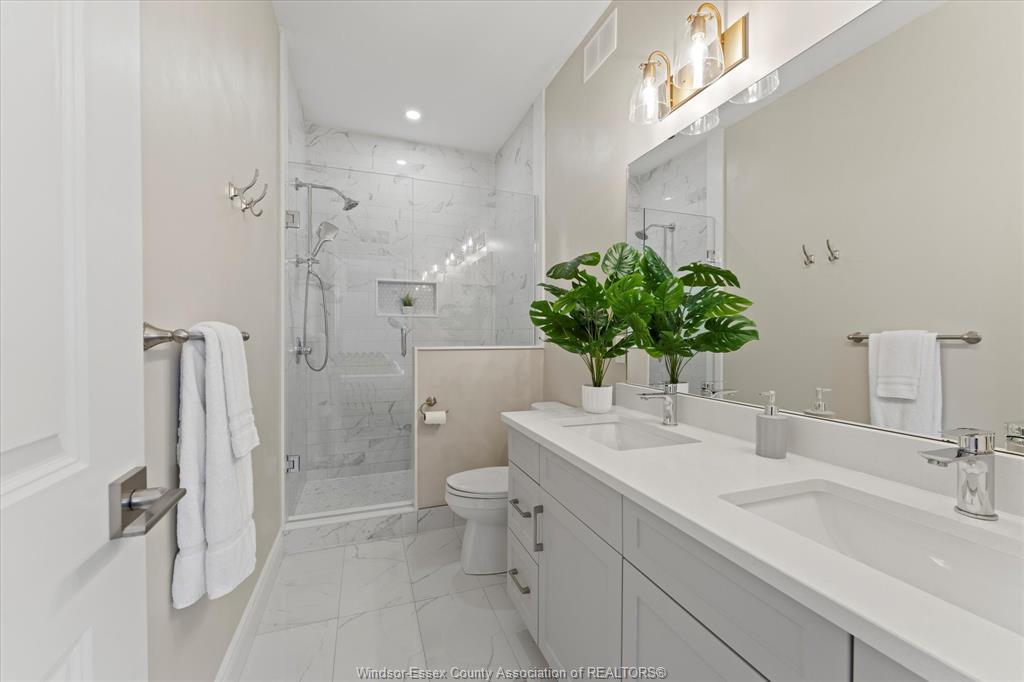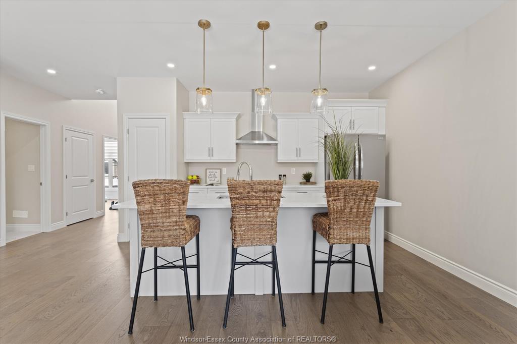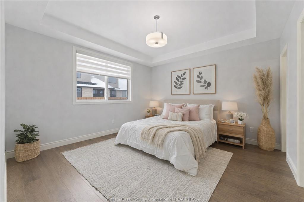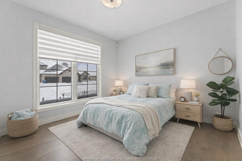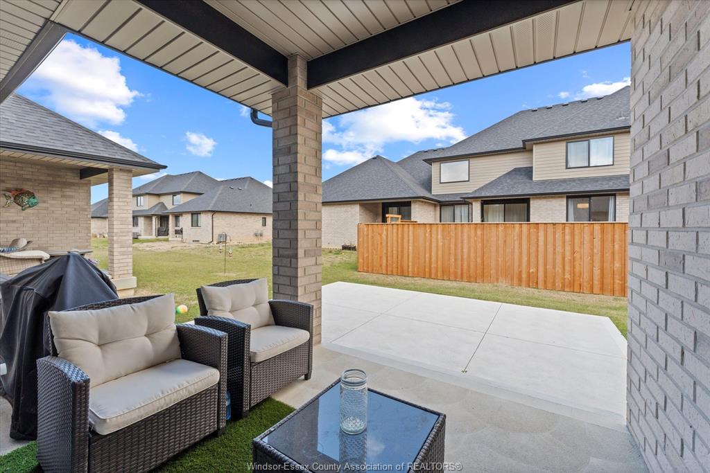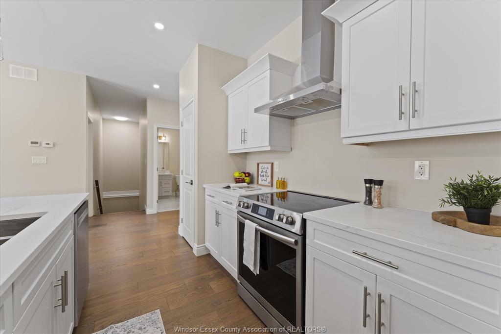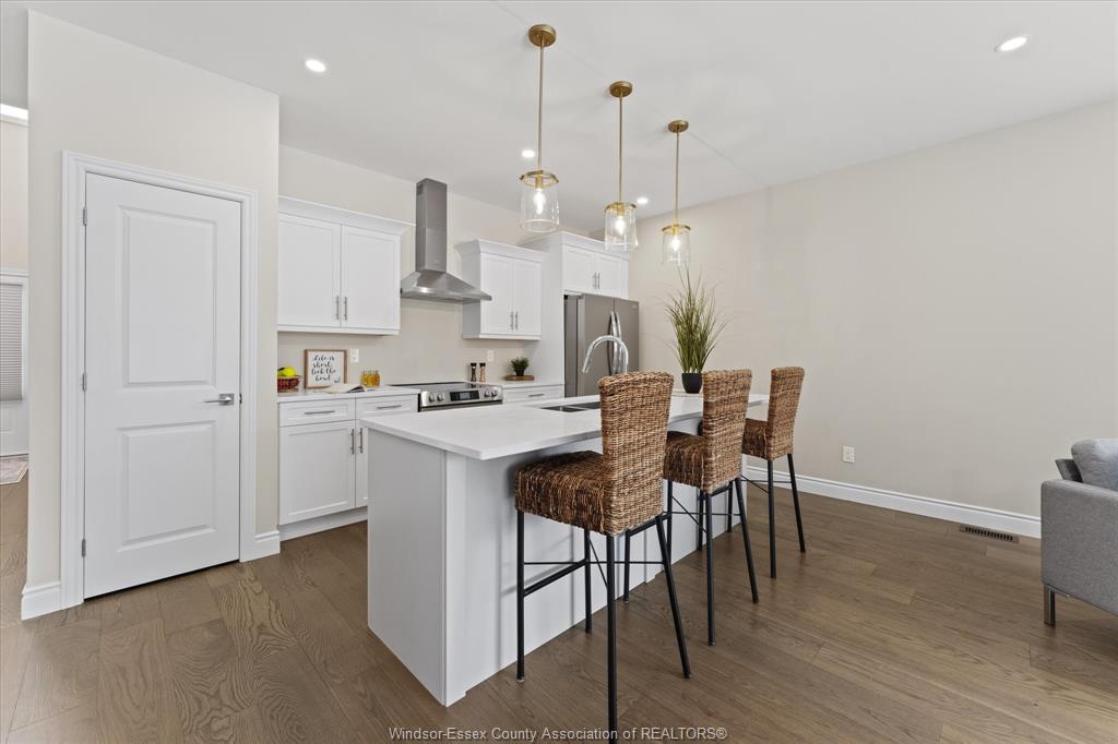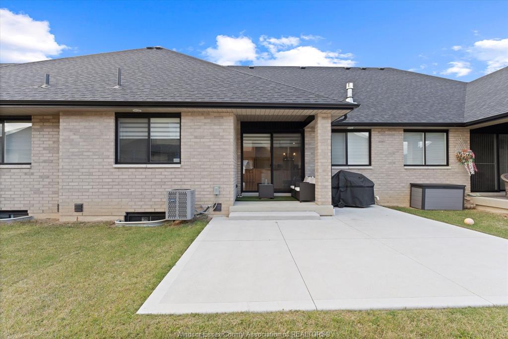 Quality built by everjonge homes, this townhome showcases luxury finishes and 9 ft ceilings!!! This beautifully landscaped, 3-year-new home offers 1,255 sq. Ft. Of thoughtfully designed living space, featuring 2 spacious bedrooms and 2 full bathrooms, including a private ensuite off the primary. Both bedrooms include walk-in closets for added convenience. Enjoy modern finishes throughout, from the bright white kitchen w/ upgraded hardware, quartz countertops and all stainless-steel appliances to the stylish fixtures, cabinetry, flooring and trim. The living room features a cozy gas fireplace w/ custom wood mantle and beautiful hardwood floors, creating a warm, inviting atmosphere. Step outside to both a covered patio and extended open patio with semi-private yard, perfect for relaxing or entertaining. The full basement offers endless potential with a rough-in bath and egress window. Just minutes to historical amherstburg.