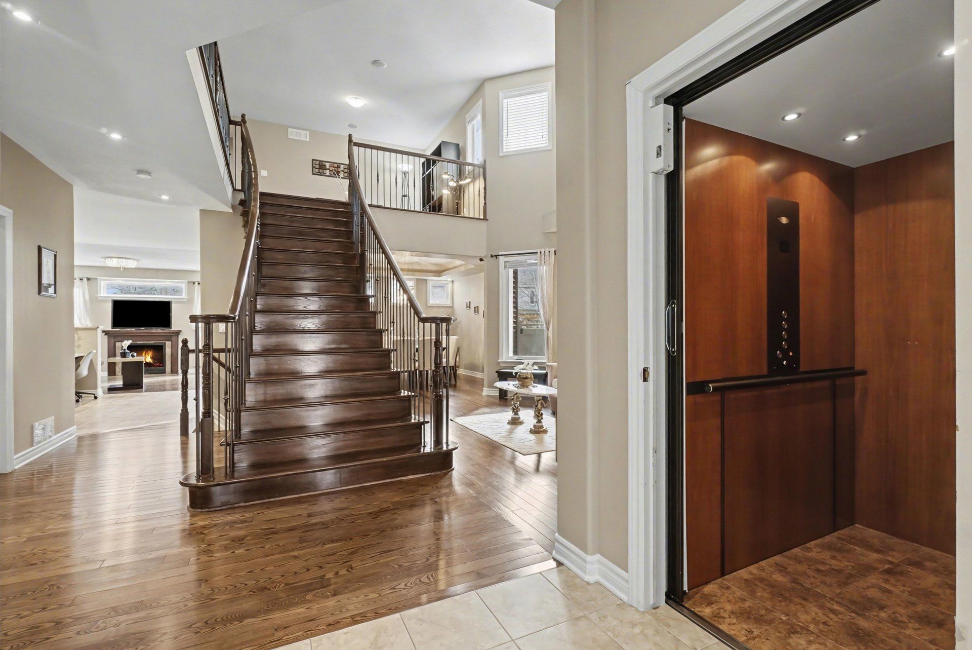 • Private in-home elevator connecting three spacious levels for convenience.