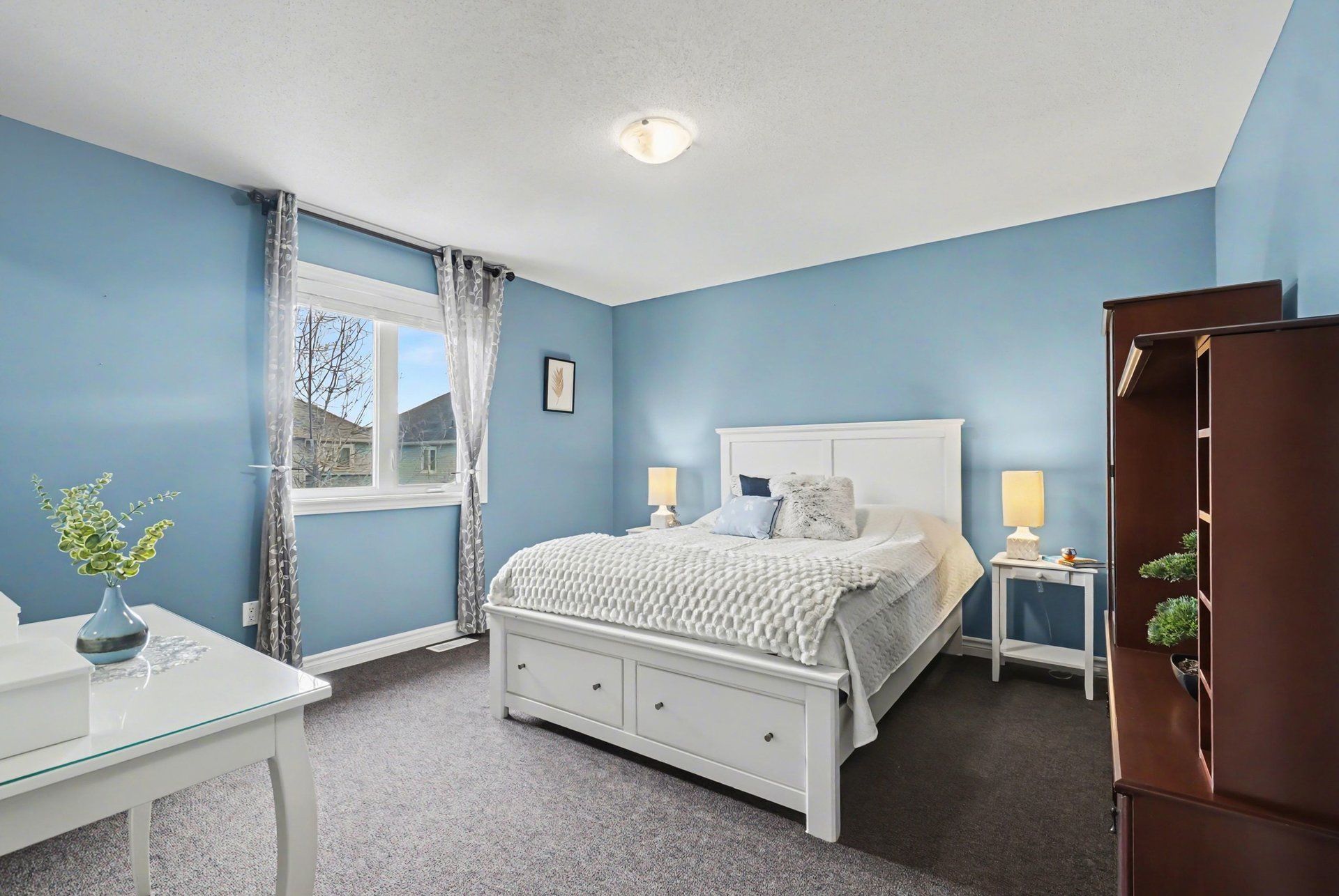 • Fully fenced backyard offers privacy and charming park views.