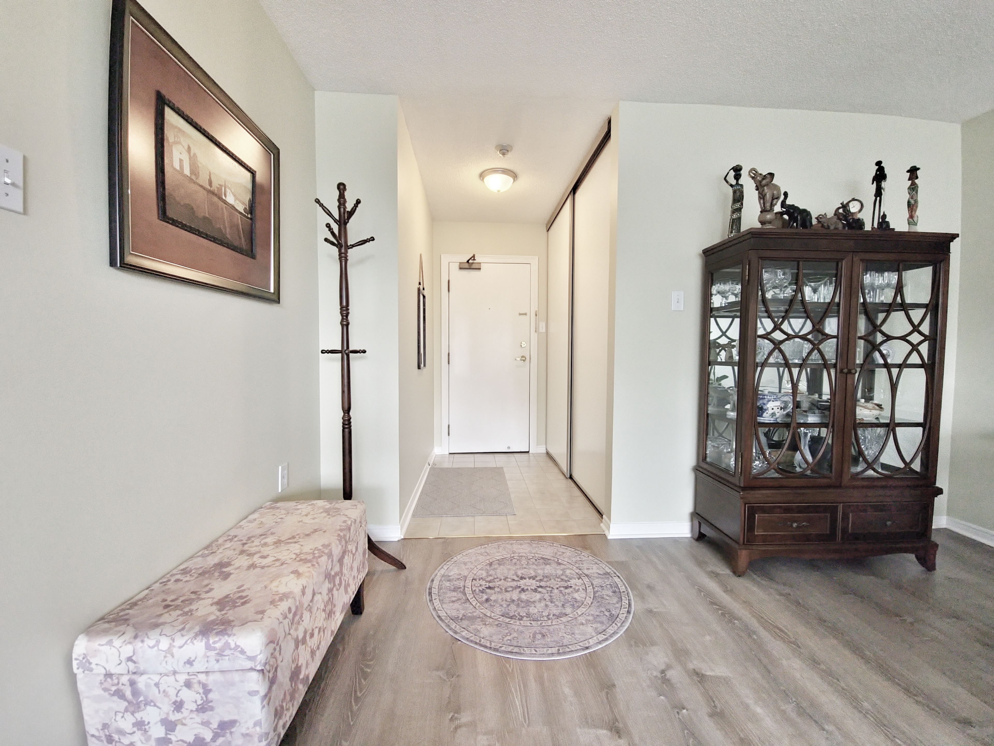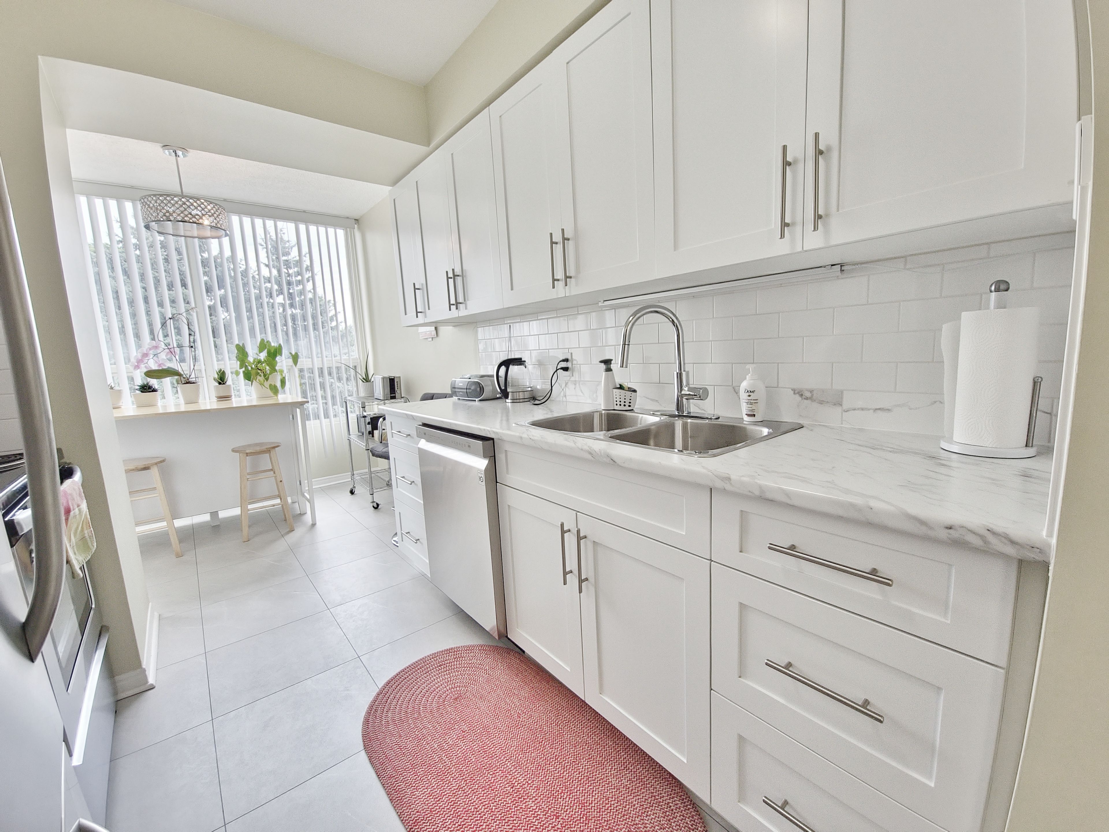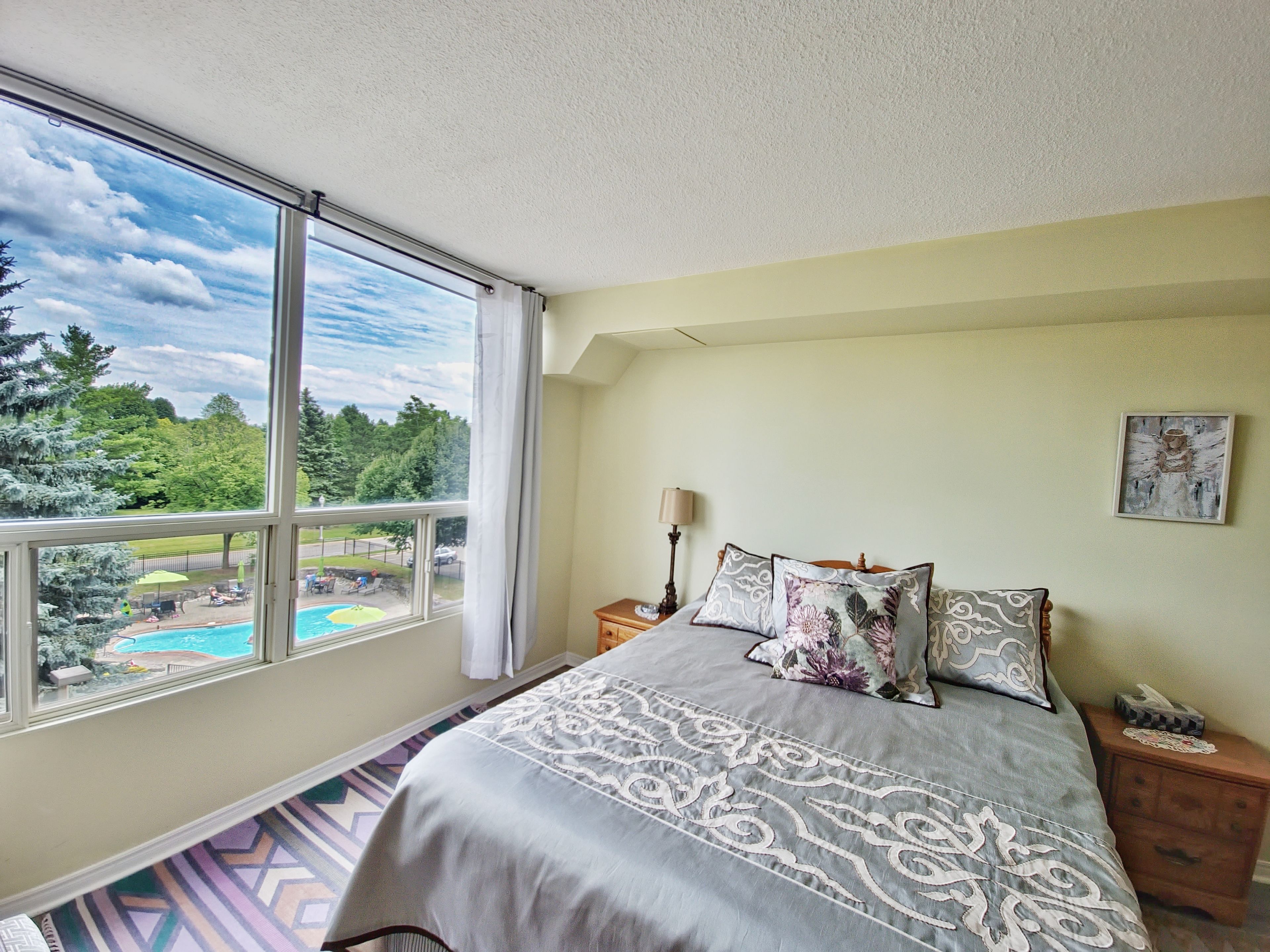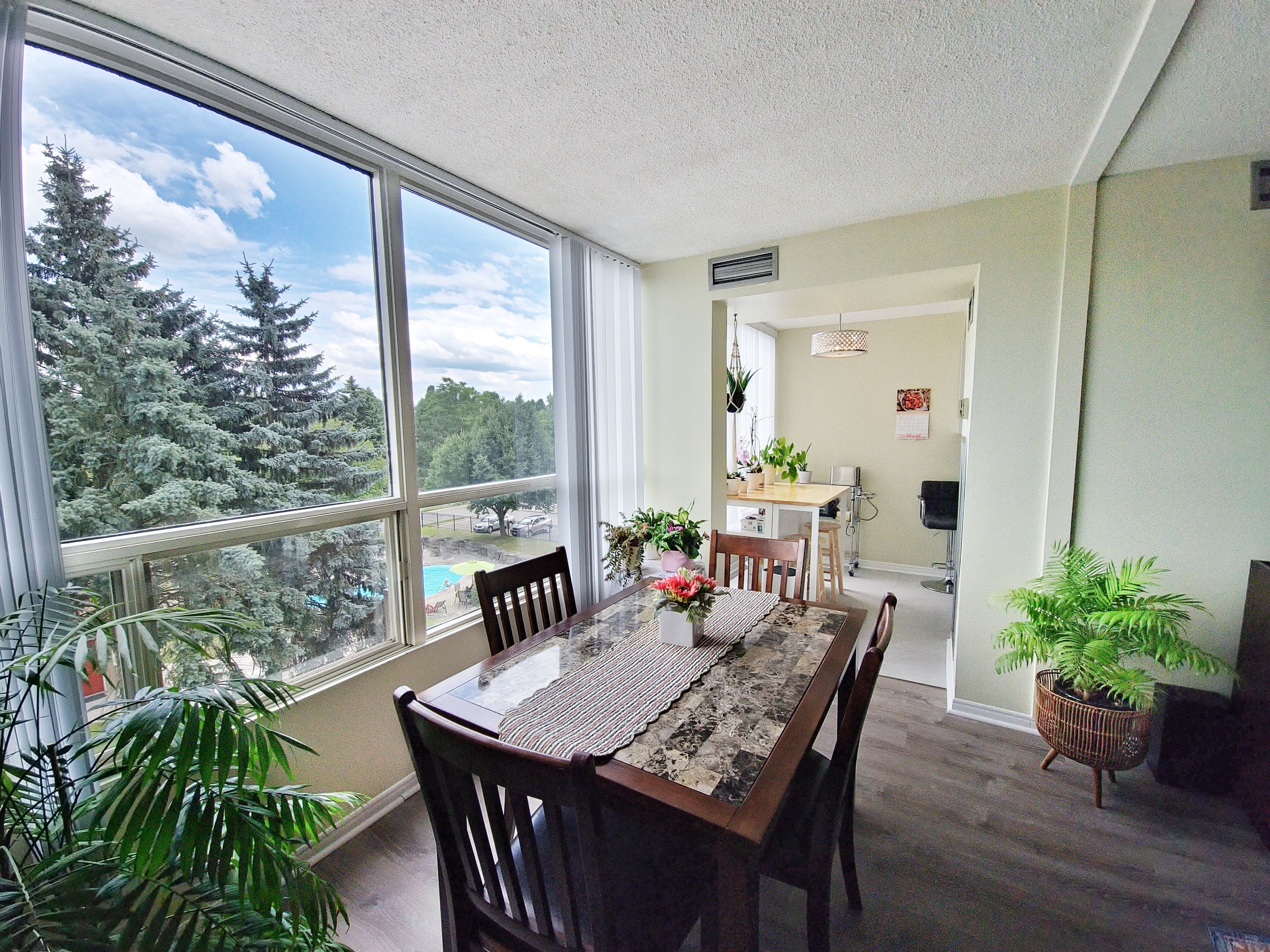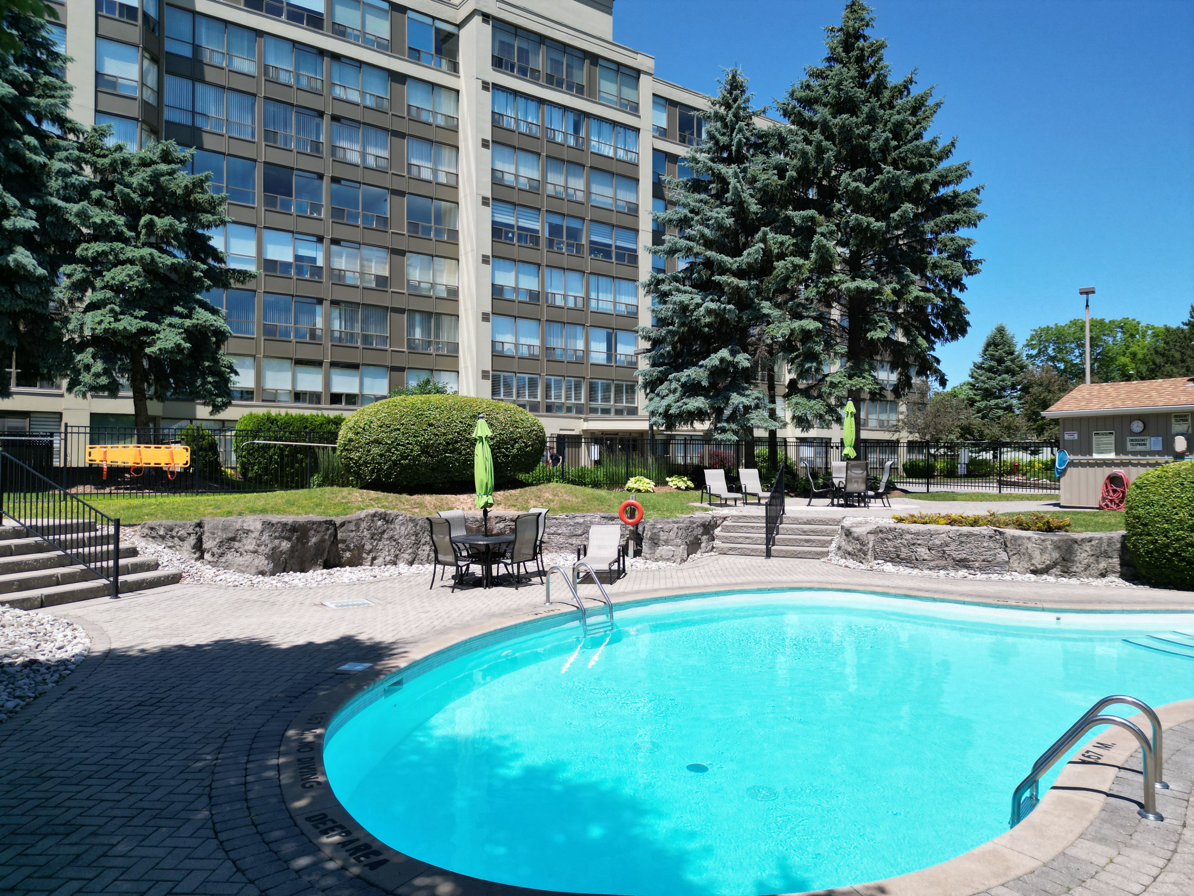 Welcome to your dream home in the highly sought-after dufferin place! This exceptional 1 bedroom, 1. 5 bathroom condo spans nearly 1,000 square feet with breathtaking views of the beautifully landscaped grounds and the inviting inground pool. Step into a bright and spacious living room featuring an oversized closet for additional storage, newer laminate flooring(2021) that extends throughout the unit. The fully updated kitchen is boasting a breakfast island, stainless steel appliances, modern backsplash, soft-closing cabinets with ample storage, perfect place to enjoy your morning coffee with the breathtaking view. The large primary suite is a serene retreat with a walk-in closet and a fully updated 4-piece ensuite bathroom with bathtub and a large vanity with ample storage. Enjoy the picturesque pool view right from your window, surrounded by mature trees for added privacy and tranquility. The additional 2-piece bathroom includes an in-unit laundry area for your convenience. Beyond the comfort of your home, dufferin place offers a range of premium amenities. Host gatherings in the elegant party room, stay fit in the well-equipped exercise room, and take advantage of the exclusive car wash station, saving you time and money. Your new home also includes an additional storage locker and a secure underground parking space. For ultimate convenience, the condo fee includes all utilities, maintenance fees, and cable tv. Located in a prime location, dufferin place provides easy access to major highways, shopping, schools, and parks, ensuring you are always close to everything you need. Every detail of this unit has been meticulously updated in 2021, including new appliances, fresh paint, and modern fixtures throughout. Whether you are a first-time home buyer, a retiree, or simply looking to downsize, this beautiful condo offers the perfect blend of comfort, convenience, and a truly worry-free living. Don't miss this opportunity to own a piece of paradise in dufferin place!
