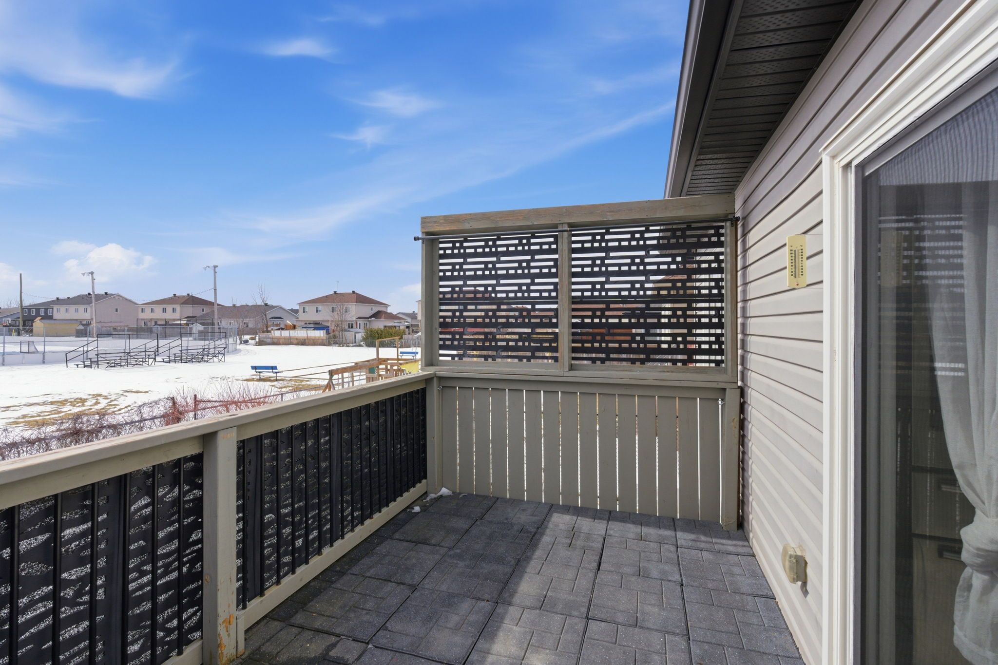 • Private deck with views of green space for outdoor enjoyment.