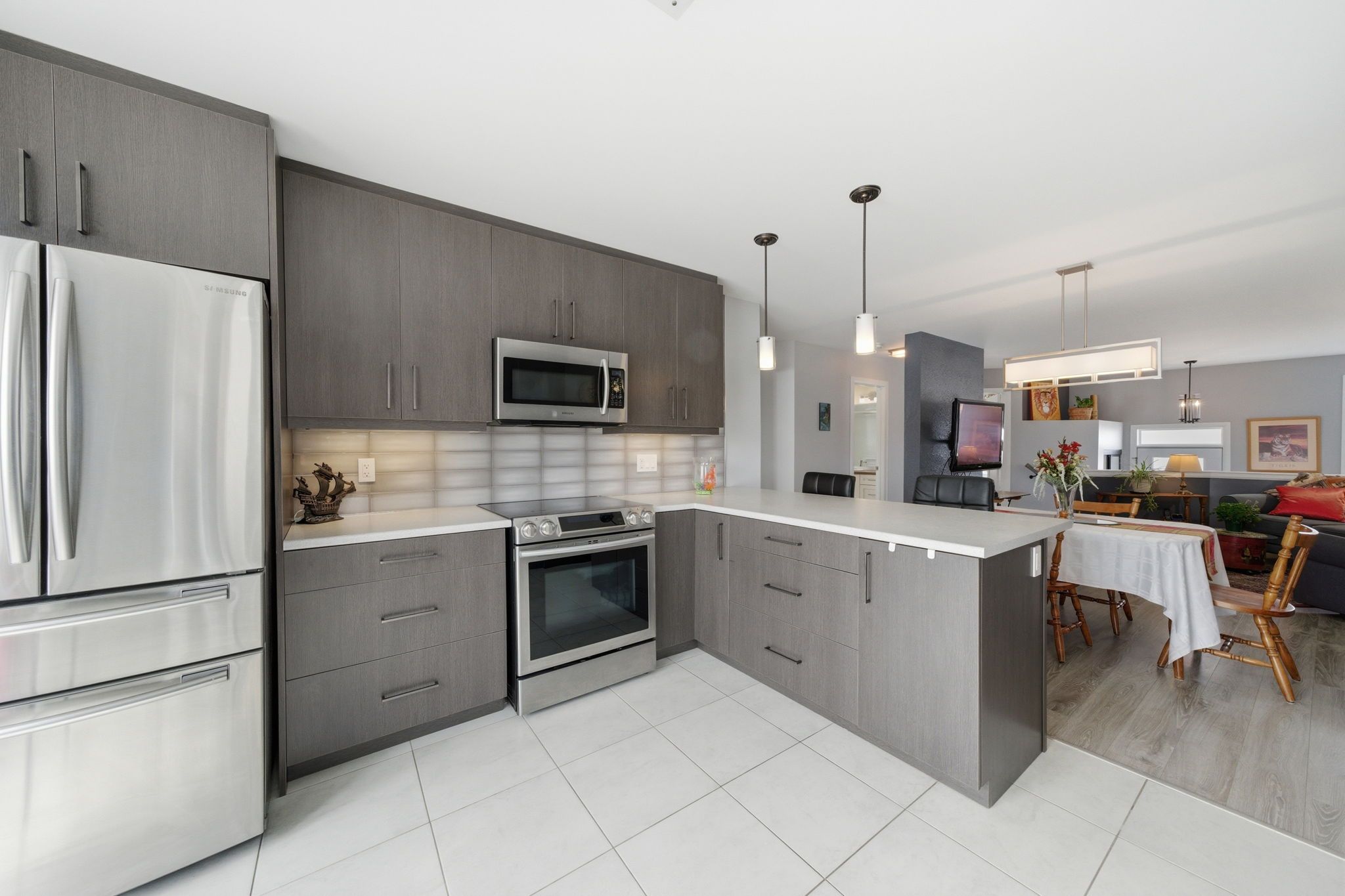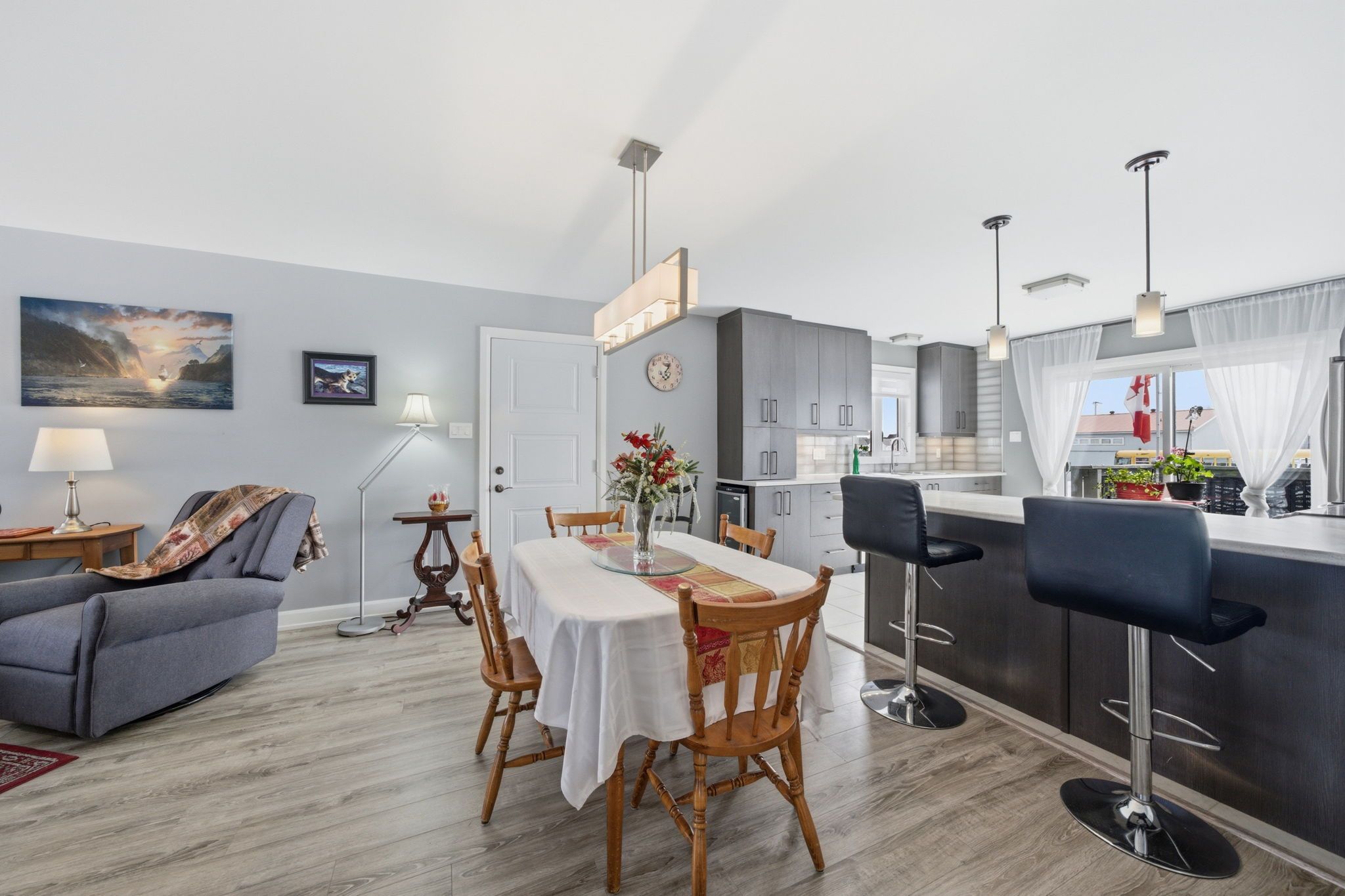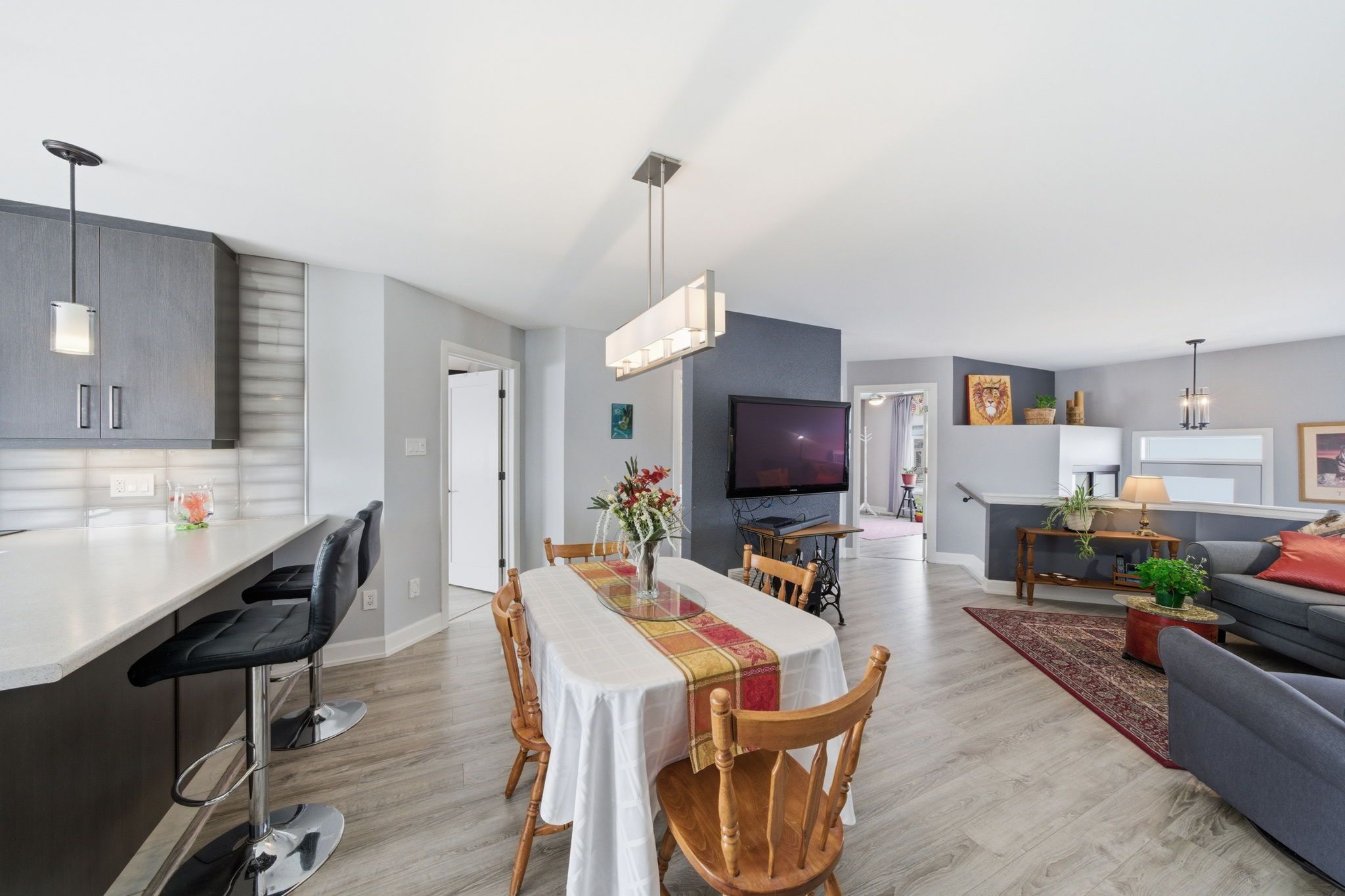 • Open-concept living and dining area great for family gatherings.