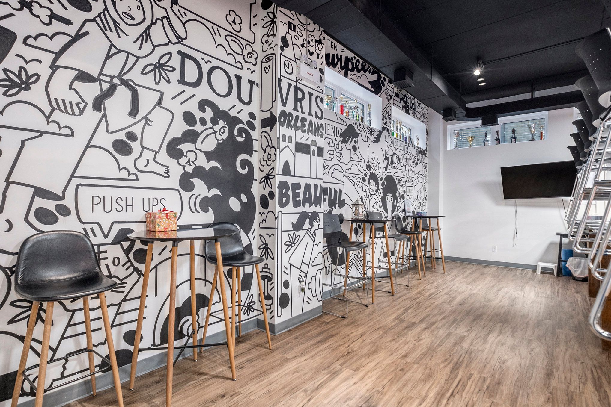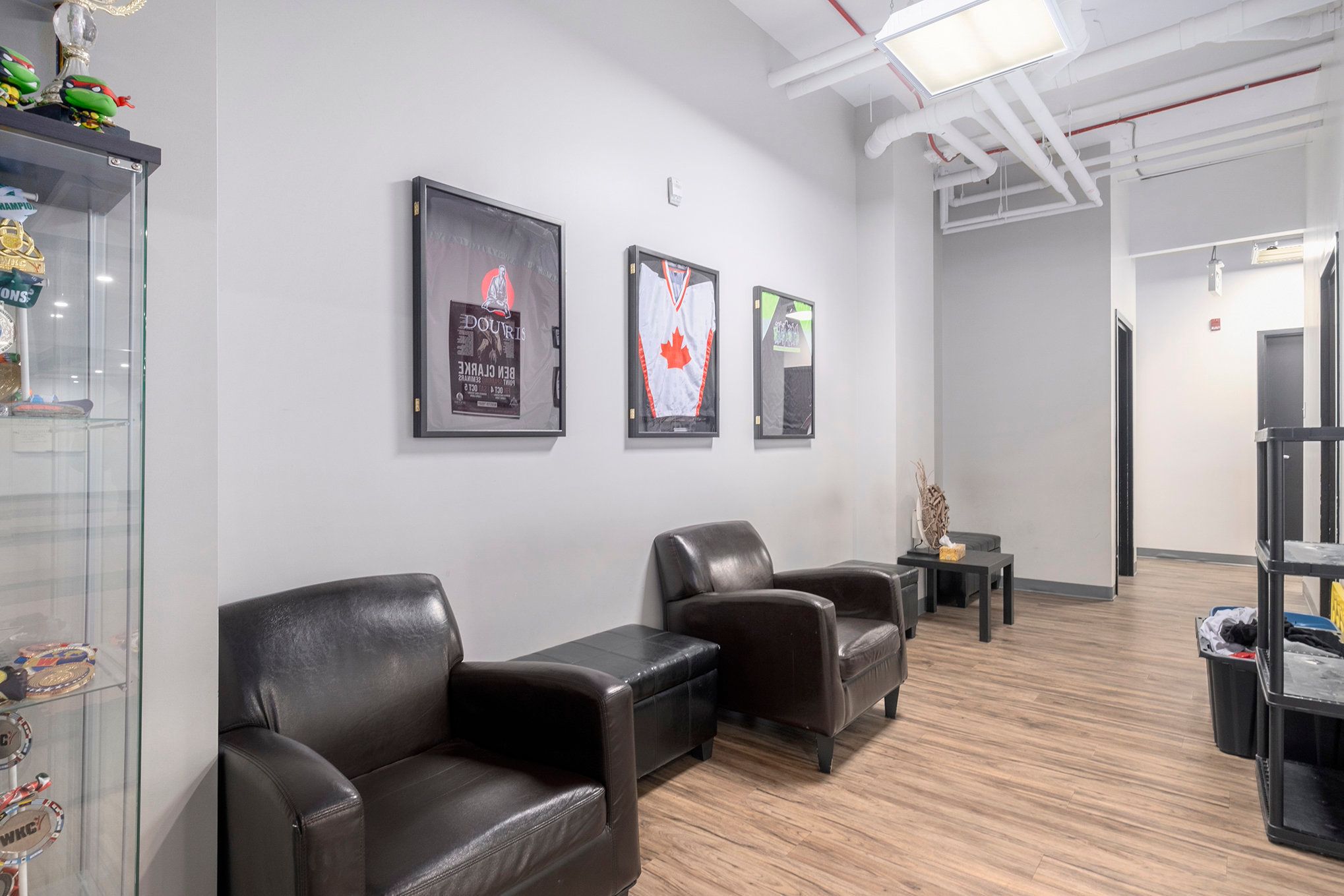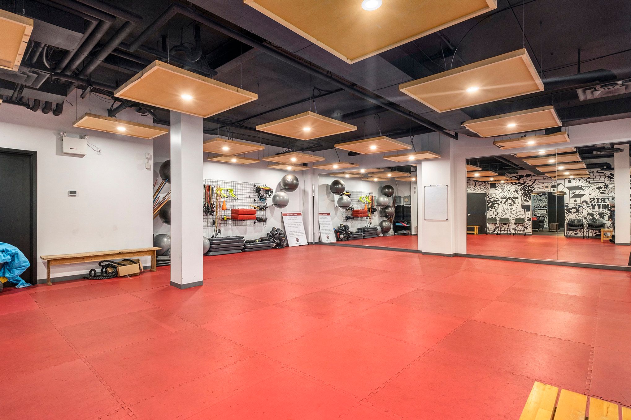 • Features two open rooms, currently set up as gyms or similar spaces.