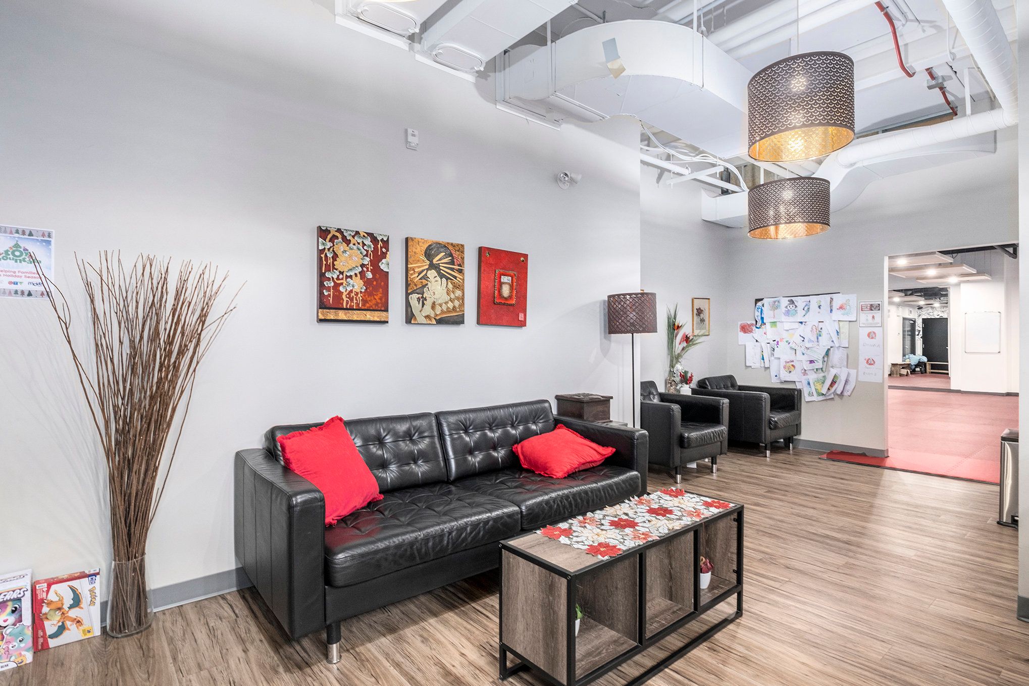 Amazing 6000 sq ft lower level space with separate entrance for lease. 2 separate open rooms set up as gyms, waiting room, viewing space, 2 spacious bathrooms with change rooms, currently being used as a dojo, in a busy established building with a daycare, cafe, pilates gym. Easy access from trim road and highway 174. Extra rent has been set for $9. 50/sq ft