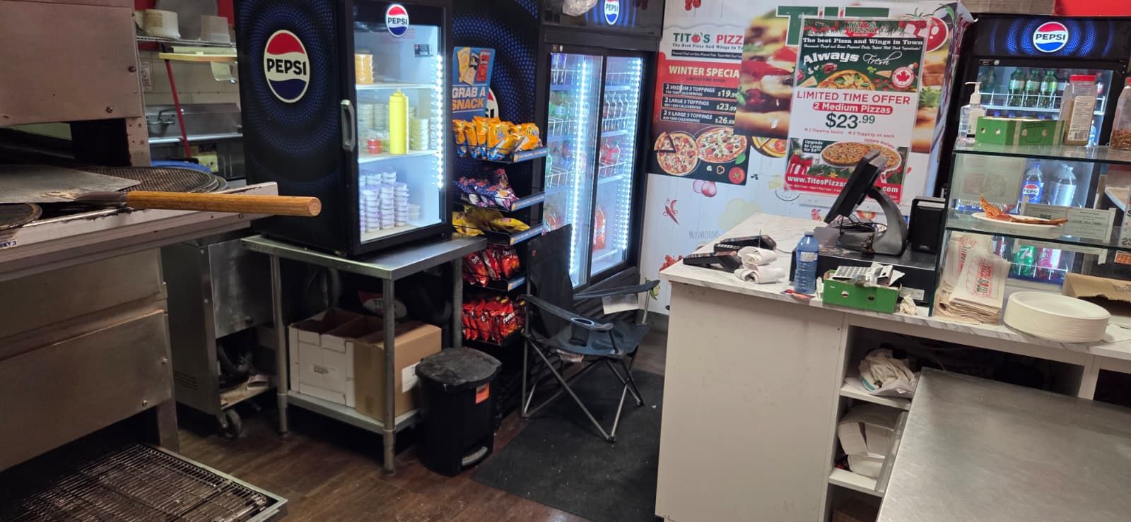 Tito's pizza in springfield, on is for sale. Located at the busy intersection of ron mcneil line/whittaker rd. Business is surrounded by fully residential neighborhood, close to schools, highway, offices, banks, major big box store and much more. Business with so much opportunity to grow the business even more. Monthly sales: approx: $25,000, rent: $1186/m including tmi & hst, lease term: existing 5 + 5 years option to renew. Royalty: $900/m, advertising $450/m.