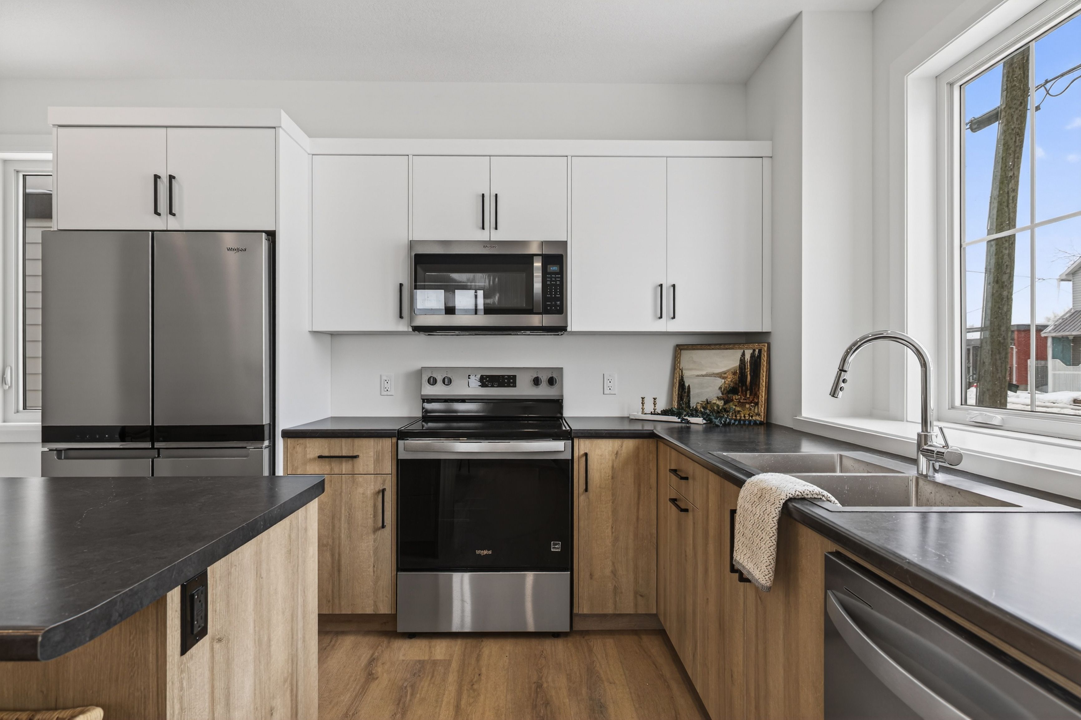 Brand new purpose-built 4-plex in the heart of springfield exceptional investment opportunity with this newly constructed, purpose-built 4-plex in the desirable community. This thoughtfully designed property features four spacious, semi-detached style units-each offering three levels of finished living space. Each unit boasts an open-concept main floor with a modern kitchen complete with a large island, seamlessly flowing into the dining and living areas-perfect for both everyday living and entertaining. A convenient 2-piece powder room completes the main level. Upstairs, you'll find two generously sized bedrooms, a well-appointed 4-piece bathroom, and the convenience of stacked laundry located in a hallway closet. The fully finished basements in all units provide a large multi-purpose space, ideal for a family room, home office, or additional living area. Each unit is also equipped with its own utility room and dedicated storage space. One unit features a slightly smaller basement due to a dedicated well room, which offers convenient access via exterior stairs. The building is serviced by municipal sewer and a private well, with all well equipment fully owned. Each unit comes fully equipped with kitchen appliances, including a fridge, stove, dishwasher, and microwave, as well as in-suite washer and dryer. A turnkey addition to any portfolio, offering modern design, functional layouts, and strong rental appeal.