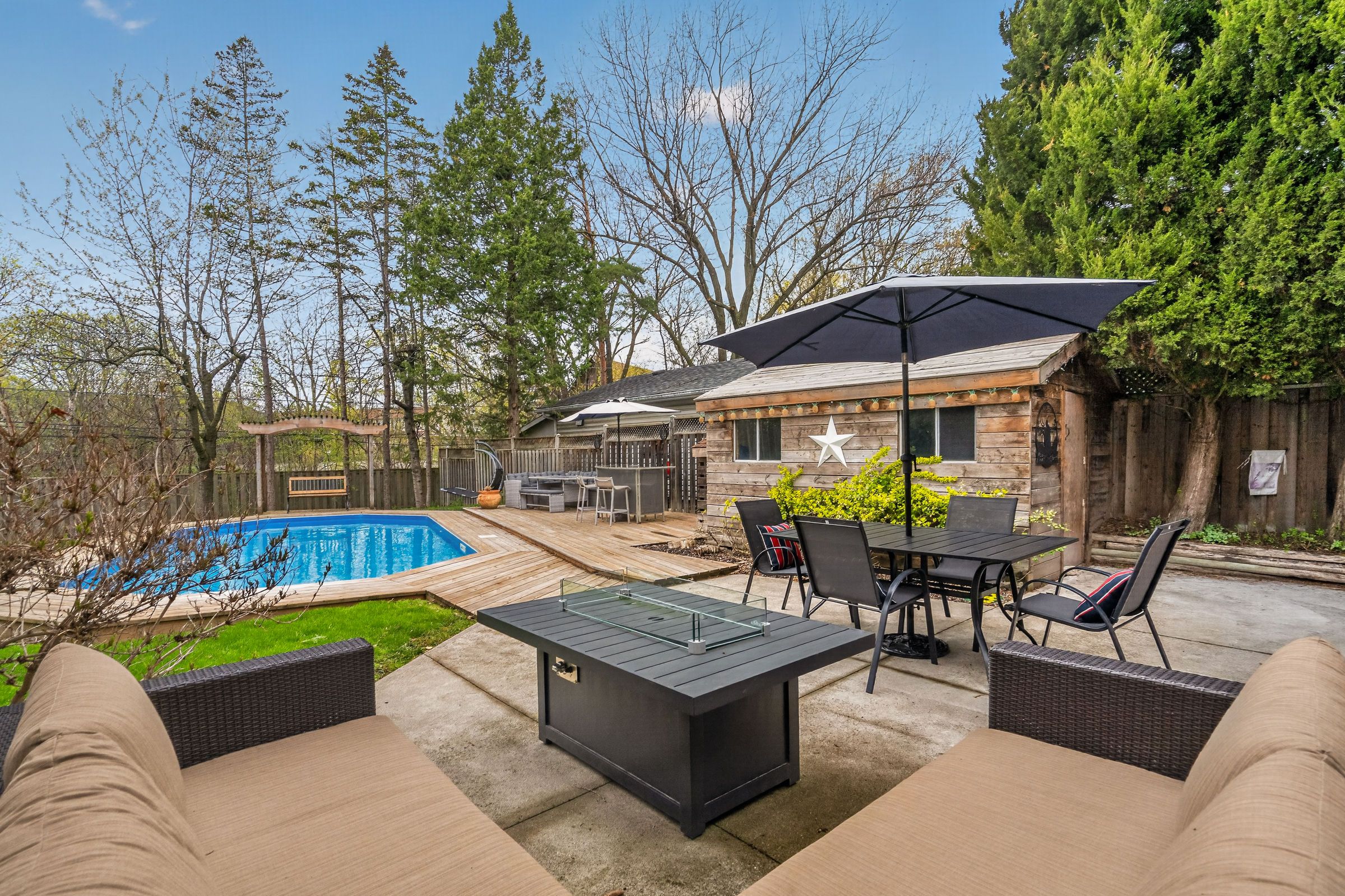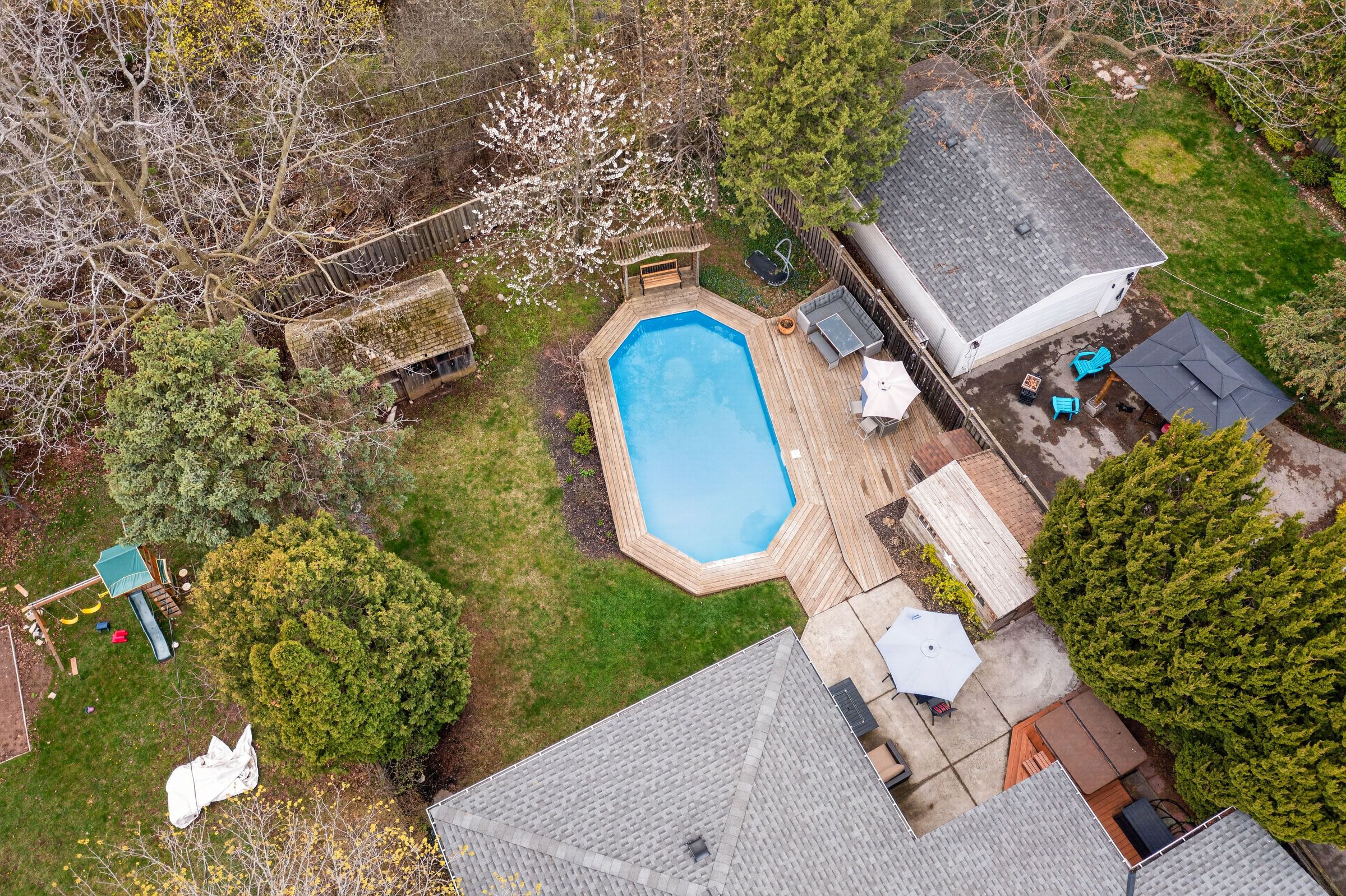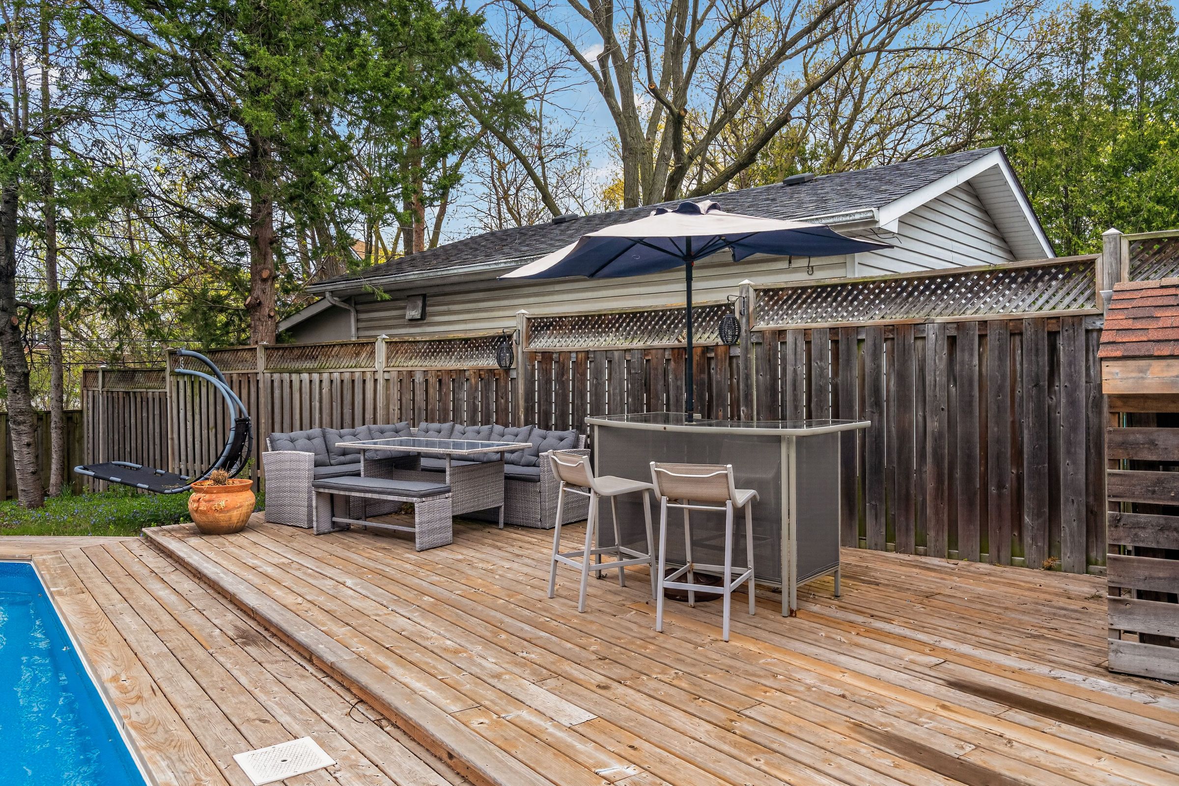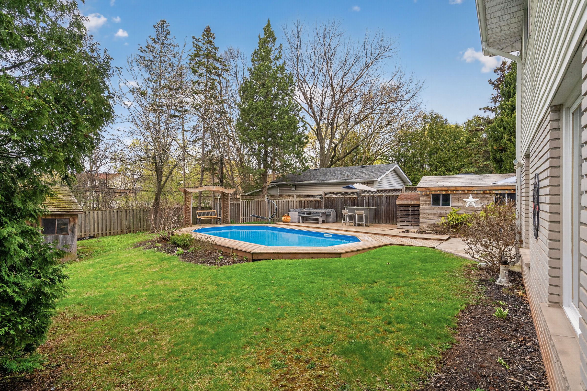 • Beautifully landscaped backyard featuring an inviting on-ground pool and large decks.