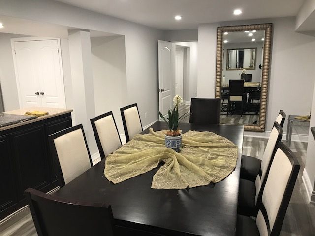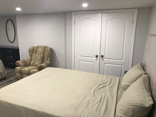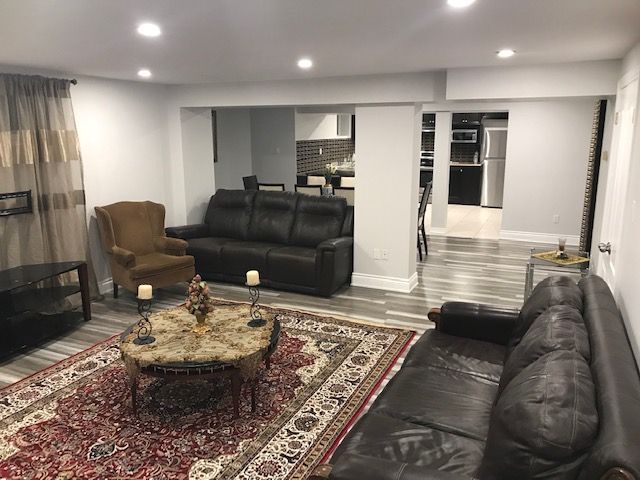 • Partially furnished spacious basement in a newly renovated home.