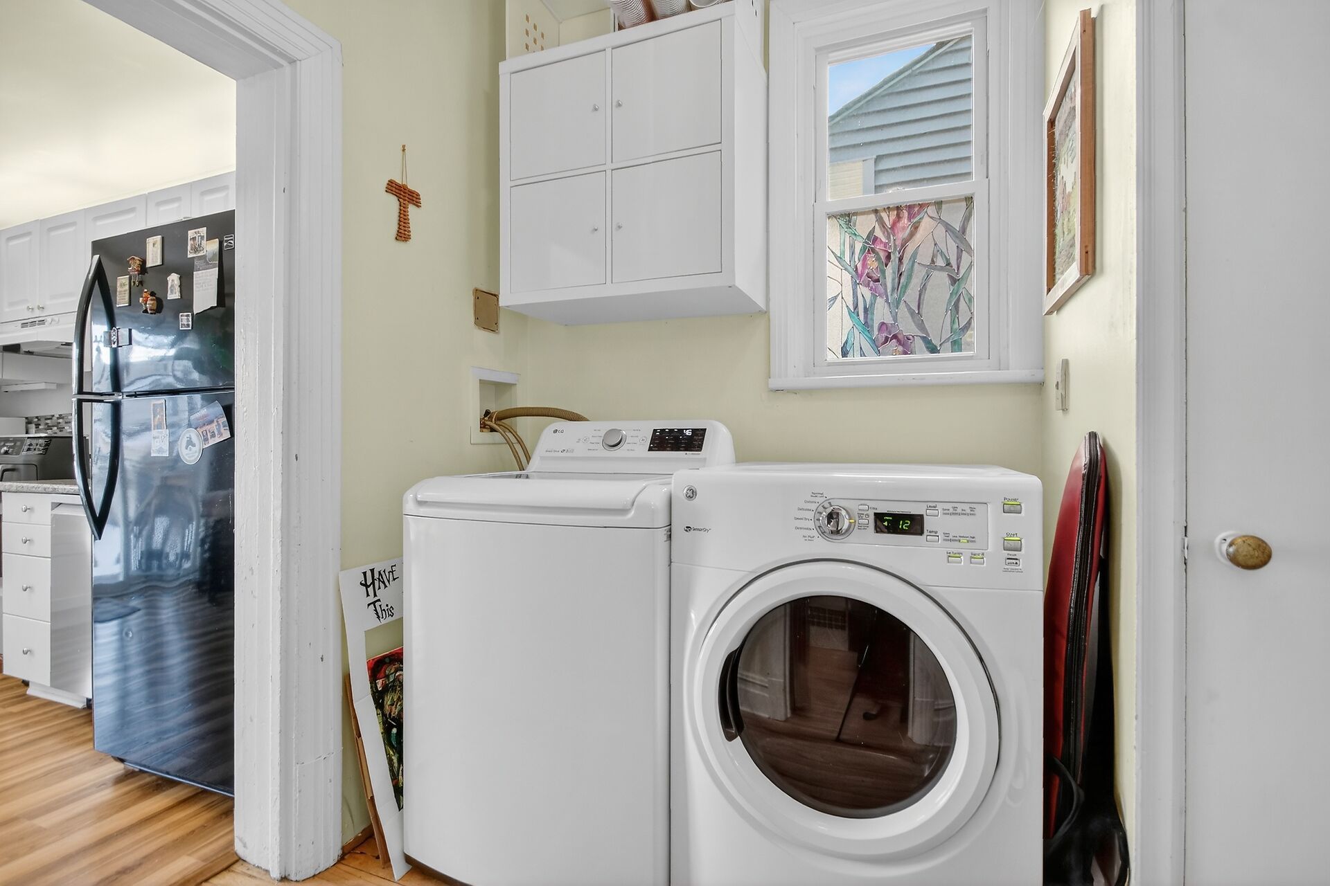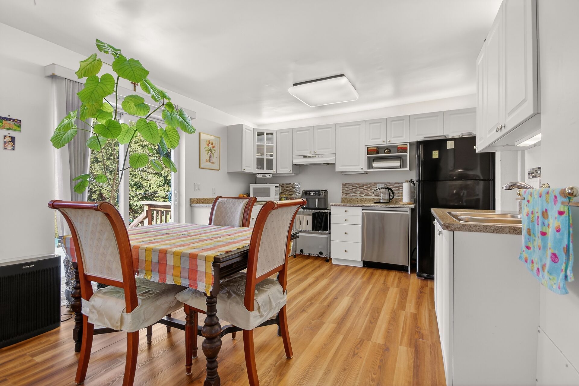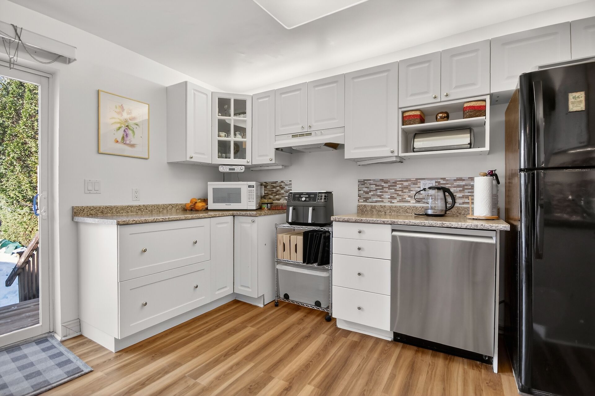 • Spacious eat-in kitchen offers natural light and backyard access.