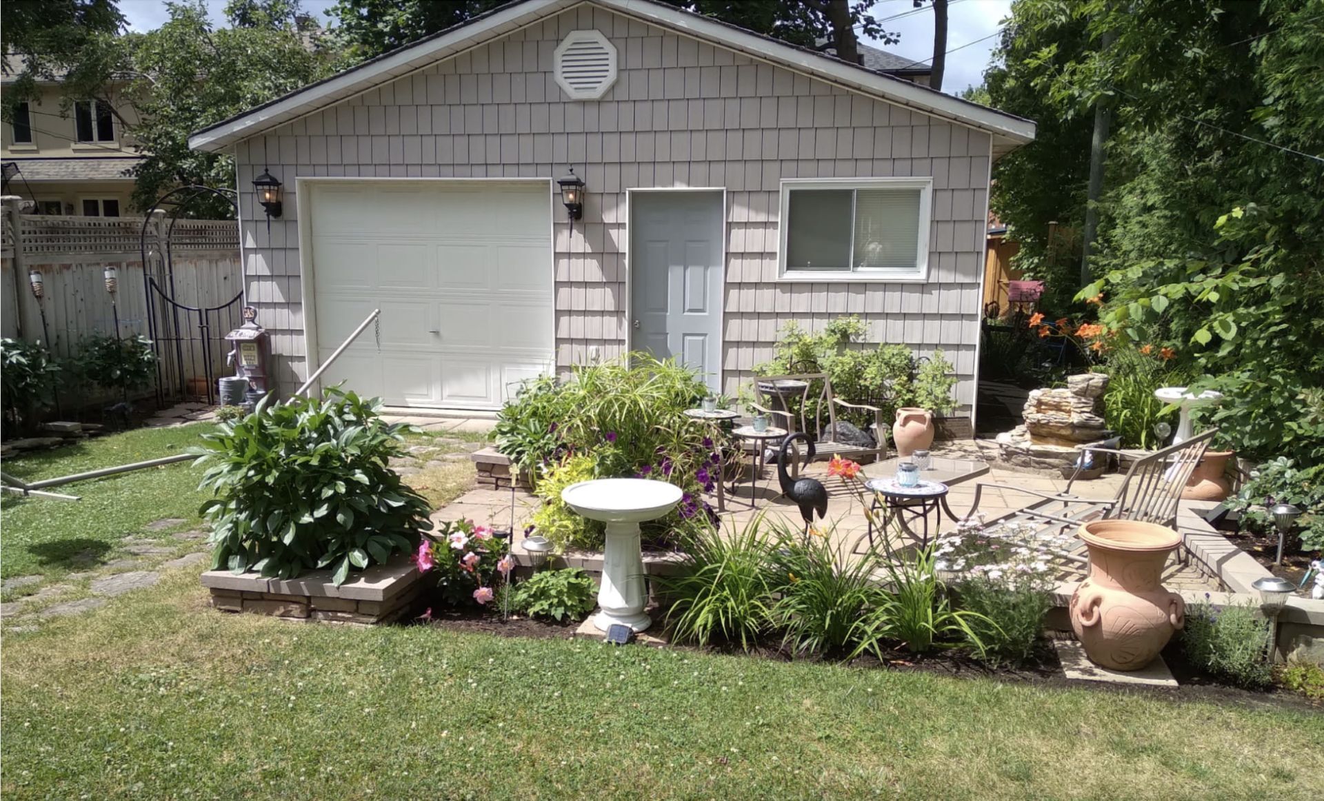 • Detached structure provides potential for garage or workshop.