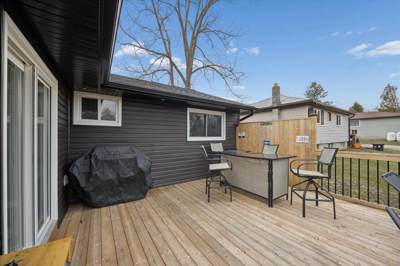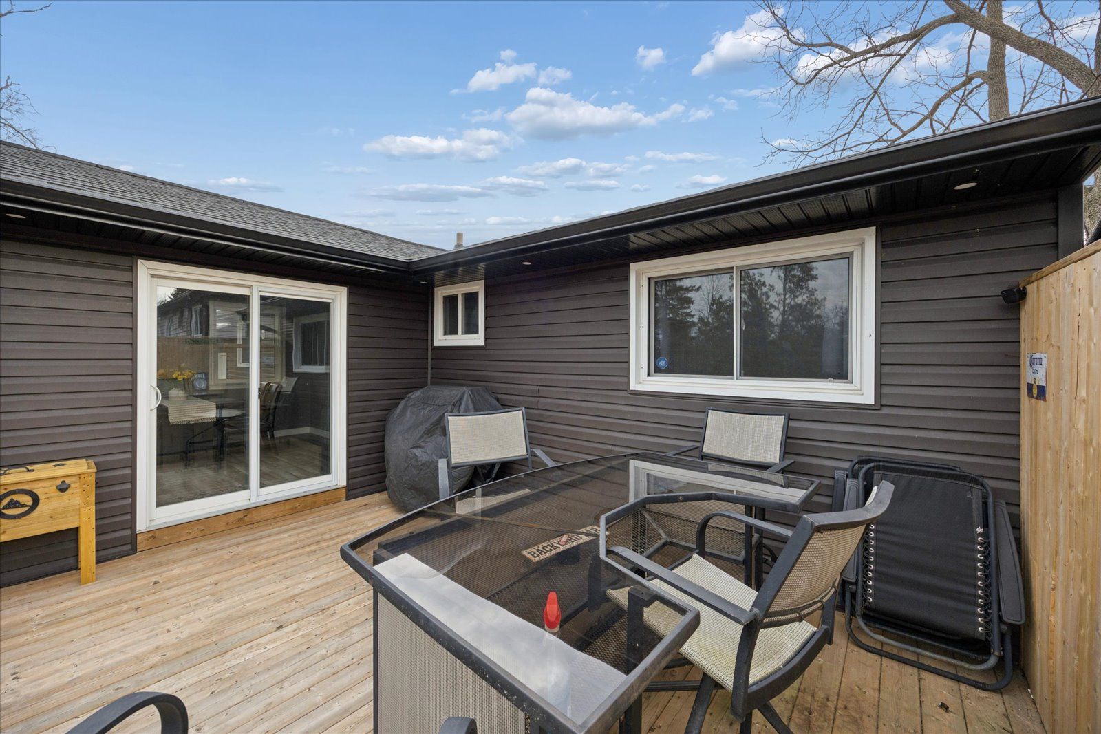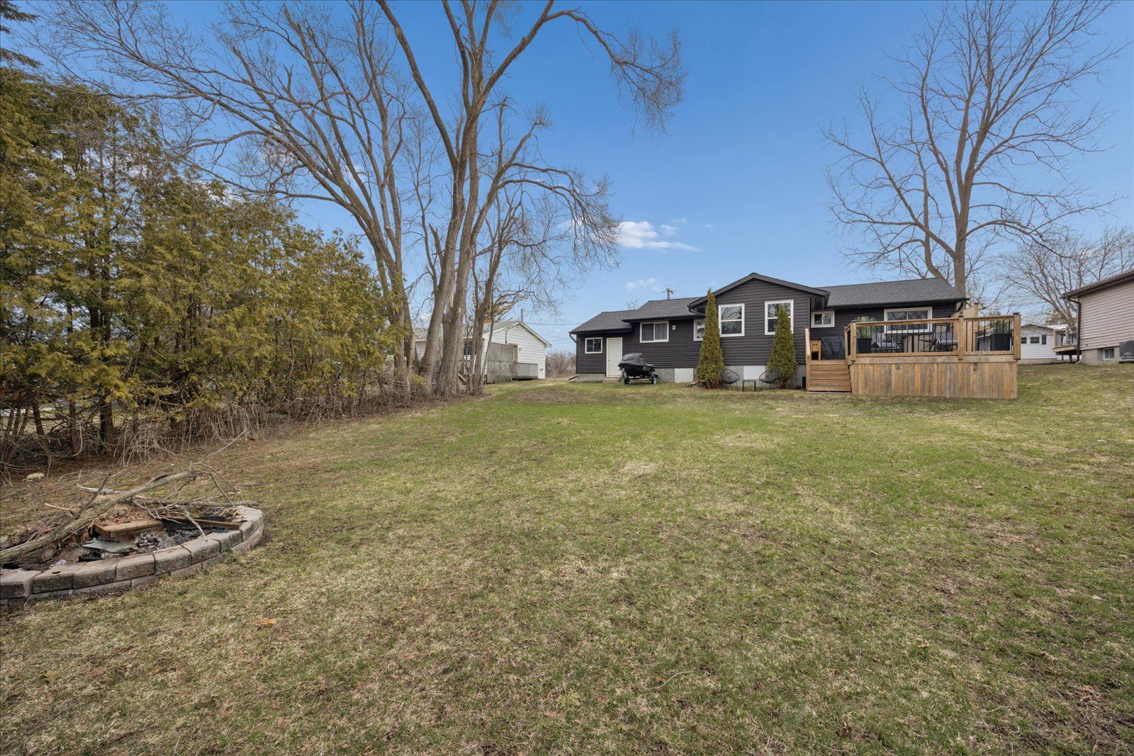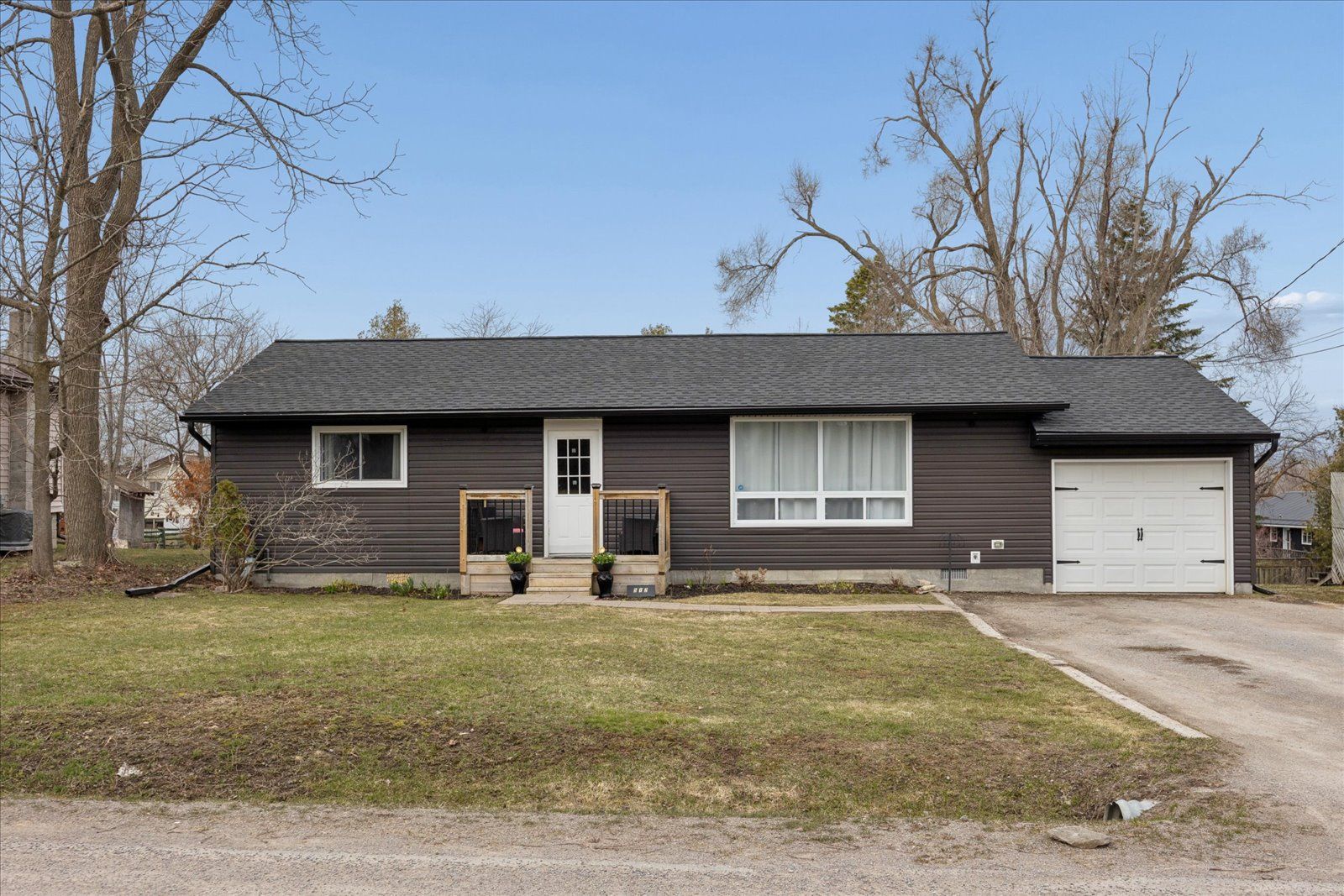 Welcome to this beautifully updated, move-in ready bungalow set on a generous 66 x 160 ft lot, offering the perfect blend of comfort, style, and outdoor living. From the moment you arrive, the home impresses with its modern curb appeal, featuring brand new vinyl siding, soffit, fascia, eavestroughs, exterior pot lights, and new shingles for added peace of mind. Inside, you'll find a bright and inviting layout with laminate flooring throughout and a spacious living room ideal for both relaxing and entertaining. The charming kitchen with island flows effortlessly into the dining area, where large windows fill the space with natural light and provide direct access to a beautiful new deck-perfect for summer barbeques and outdoor gatherings. The backyard is truly a standout, offering a sun-drenched setting with plenty of space for kids to play, entertain guests, or simply unwind. This well-appointed home features two bedrooms and one bathroom, along with an oversized single-car garage that offers convenient access into the home through the hallway and access the the laundry/storage area. The driveway accommodates up to four vehicles, and additional upgrades include a new furnace and new washer and dryer. With natural gas and full town services, this property delivers both comfort and convenience. Complete with modern exterior finishes, spacious principal rooms, and seamless indoor-outdoor living, this turnkey home is an incredible opportunity for first-time buyers, downsizers, or anyone looking for a move-in ready property with room to grow.