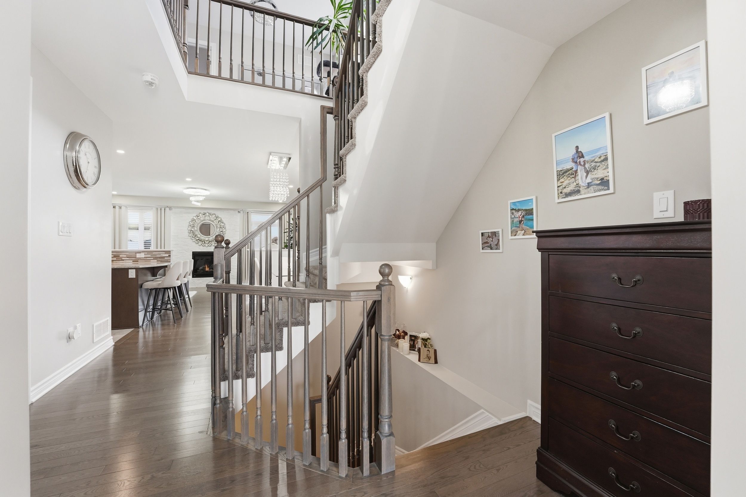 This beautifully upgraded 3-bedroom, 3-bathroom tartan built home stands out from the moment you walk in. The main floor is bright and inviting, featuring tile in the foyer and pristine hardwood flooring that carries through the open-concept living and dining spaces. Large windows bring in plenty of natural light, while a custom stone wall around the gas fireplace adds a warm, stylish touch. The kitchen is both functional and eye-catching, complete with a large quartz breakfast bar. It is a great space to entertain! Upstairs offers three well-sized bedrooms, a full laundry room, and a bonus loft! The primary suite comfortably fits a king-sized bed and includes a large walk-in closet, and a spa-like ensuite with a freestanding tub, quartz vanity, and glass shower. The oversized, fully finished basement provides great additional living or flex space. Outside, enjoy an interlock patio with gazebo and a fully fenced yard. The extended driveway outfront will also come in handy. A great neighborhood close to parks, walking paths, and amenities.