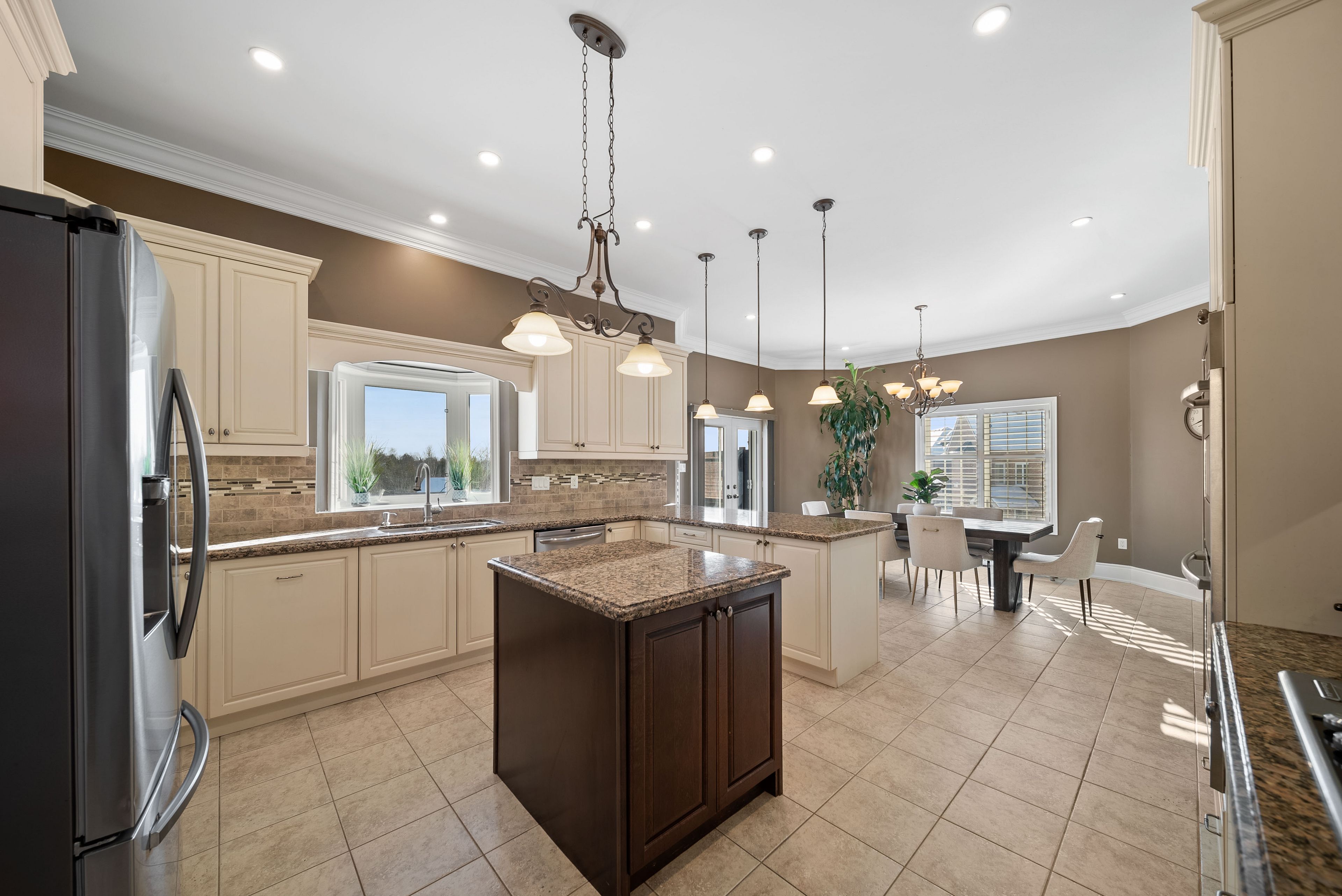 • Oversized kitchen flows into family and dining areas for entertaining.