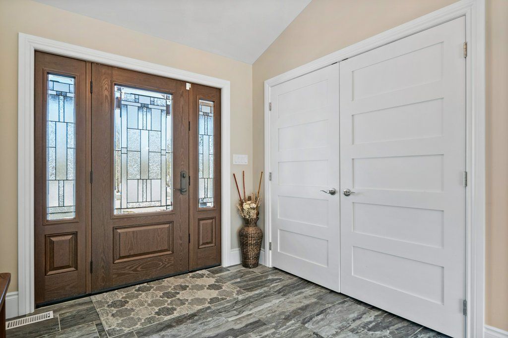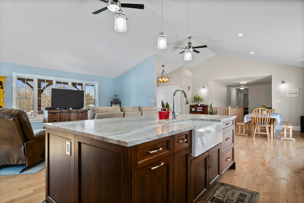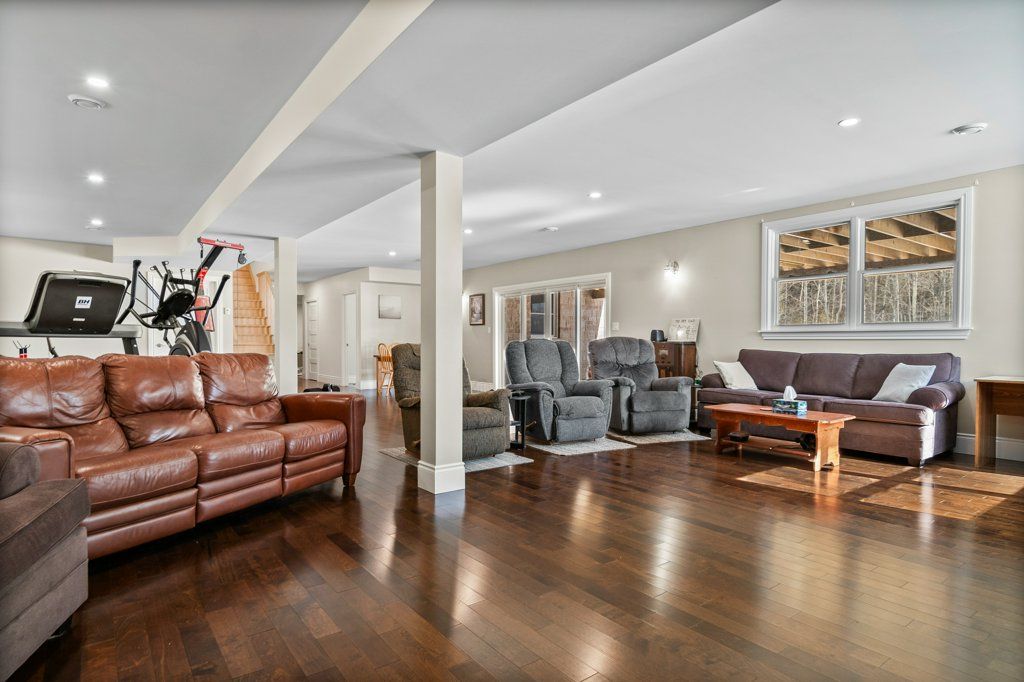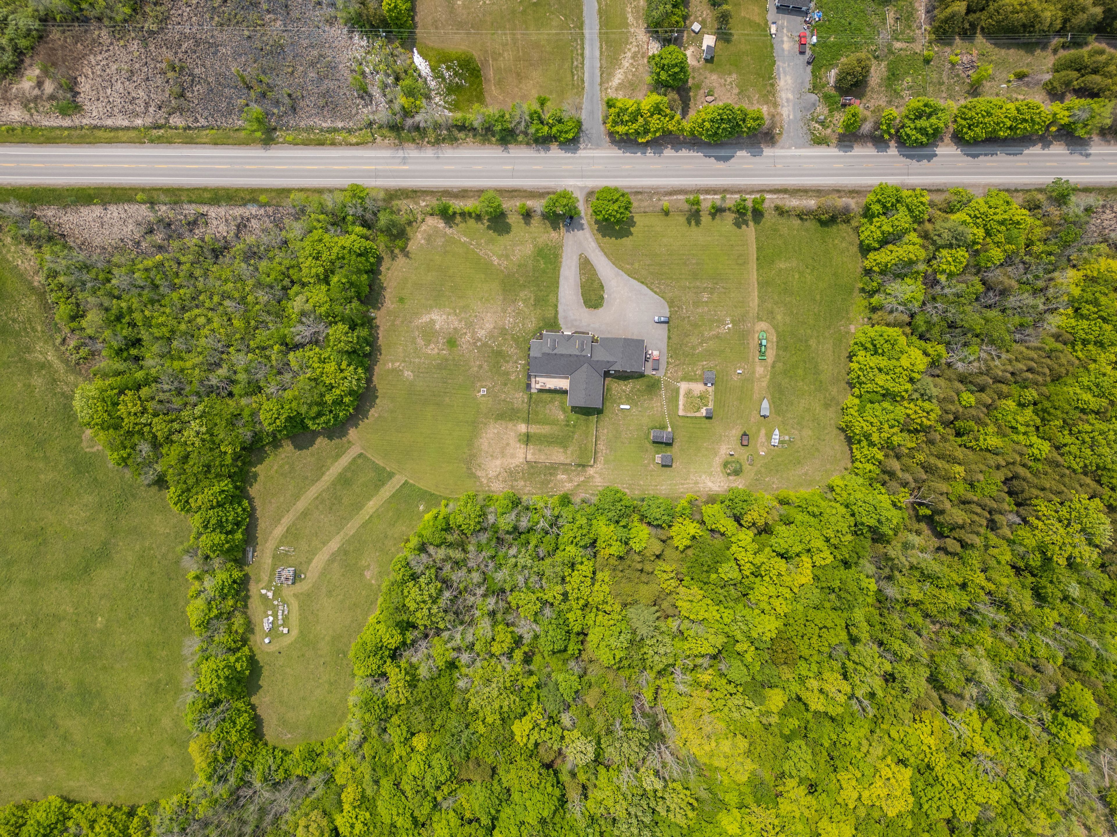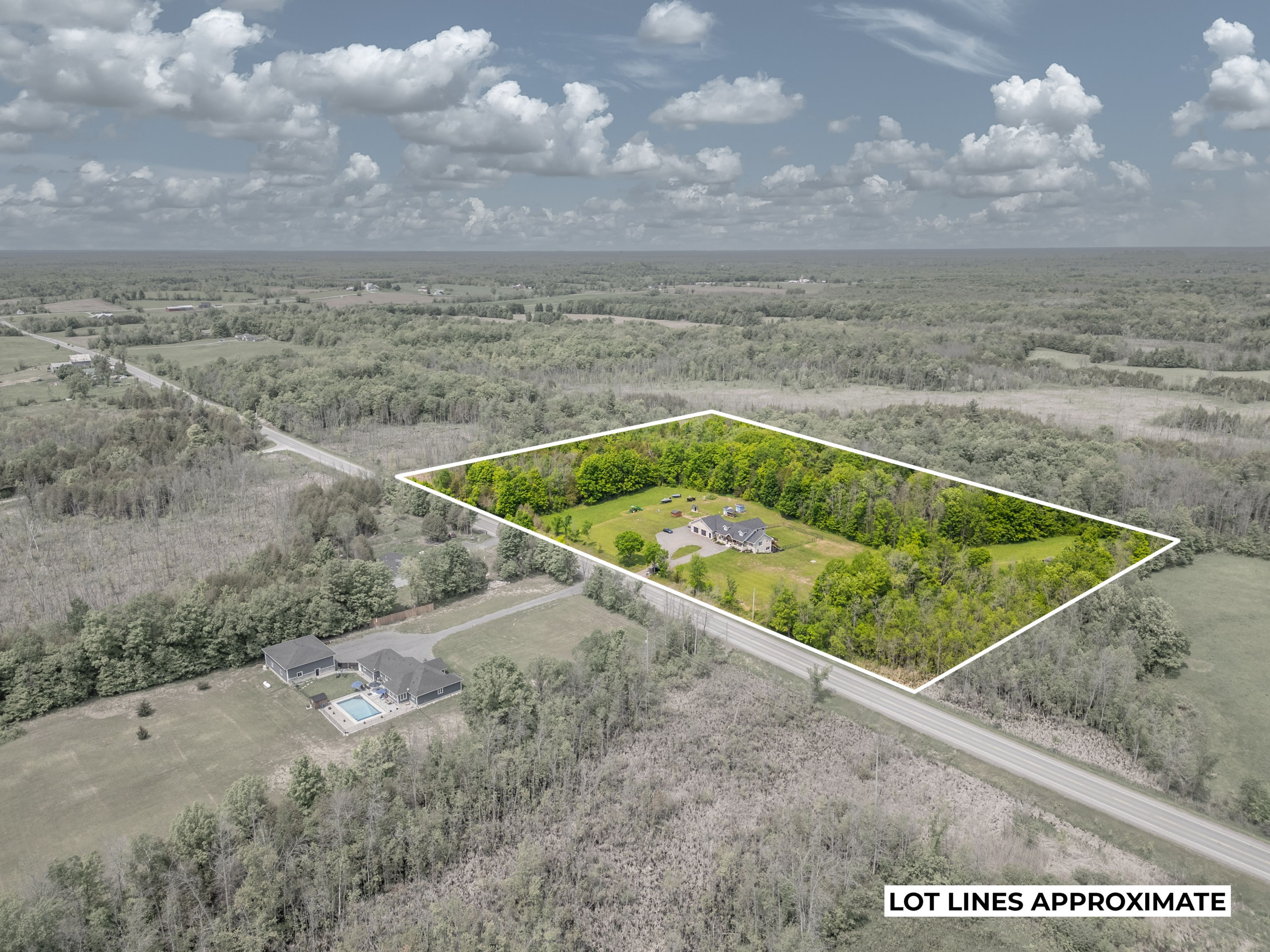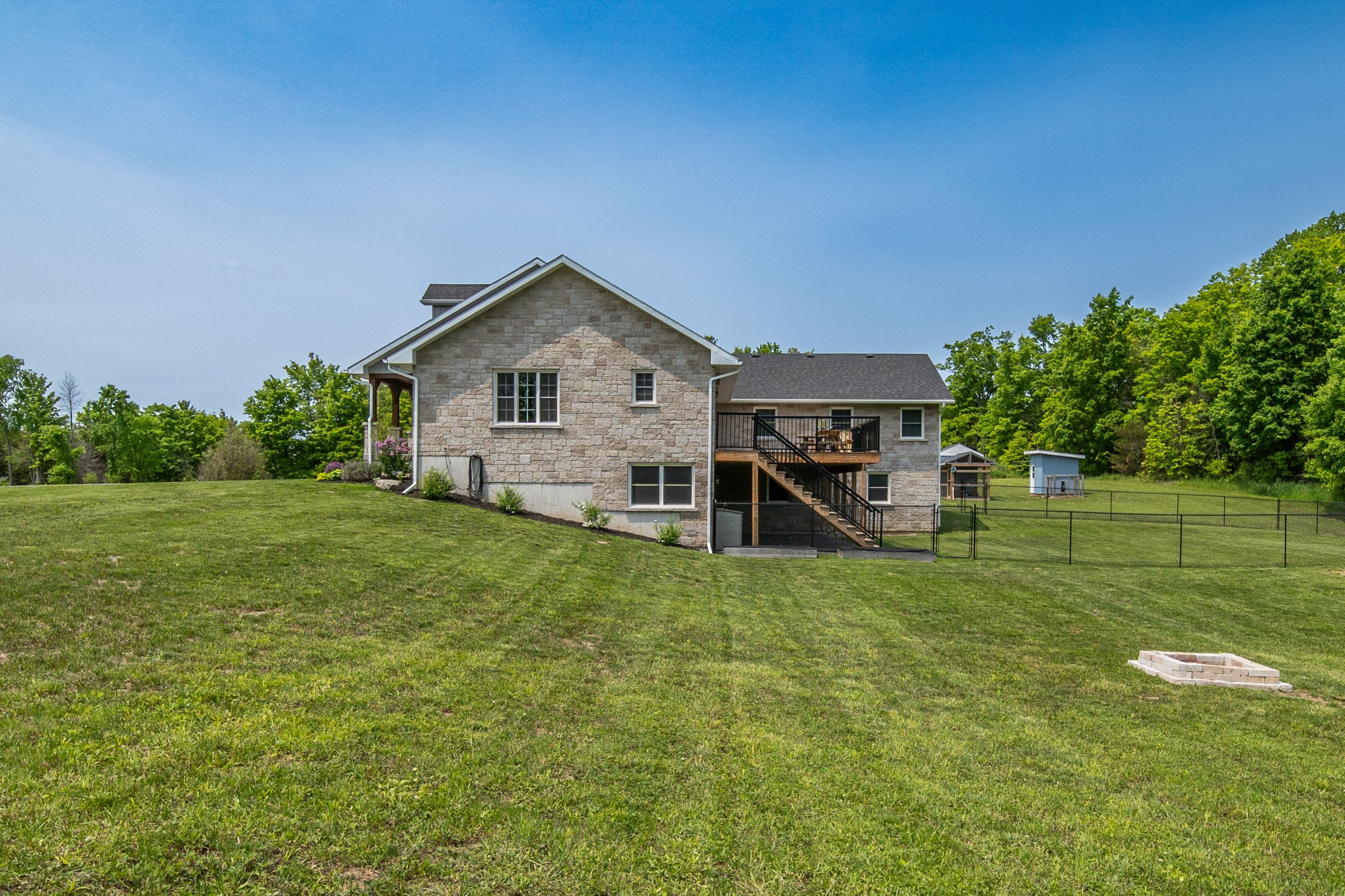 Situated on over 16 acres of serene countryside, this exquisite stone bungalow, built in 2022, offers a blend of modern luxury and rustic charm. Designed to capture the essence of country living while providing every comfort, the home boasts eight spacious bedrooms and five beautifully appointed bathrooms. The main level of the home is open-concept and bathed in natural light. The master suite is a true retreat, complete with a walk-in closet and a five-piece en-suite bathroom, ensuring a private oasis to unwind after a long day. Four of the five bedrooms are conveniently located on the main floor, offering ample space for family and guests, while the remaining bedroom is located in the lower level. Two of the bathrooms on the main level further enhance convenience, making this an ideal home for families of any size. Above the garage, a loft area offers additional room for a variety of uses, from an art studio to a quiet reading nook. The lower level is just as impressive, featuring a large cold room perfect for food storage, while the rest of the basement is equipped with in-floor radiant heating, ensuring comfort throughout the seasons. The expansive recreation room, complete with large glass sliding doors, opens directly onto the patio and fenced backyard, creating an ideal space for entertaining or simply enjoying the natural surroundings. The property is also home to over 100 sugar maple trees, offering a unique opportunity to tap for syrup. The land itself is perfect for exploring, gardening, or just enjoying the peace and privacy of rural living. The home also features a whole-house generator, providing peace of mind during inclement weather, and an attached garage equipped with an electric vehicle charging plug, ensuring your car is always ready to go. This remarkable property offers an exceptional lifestyle, blending the best of modern design with the tranquil beauty of the countryside, making it the perfect place to call home.