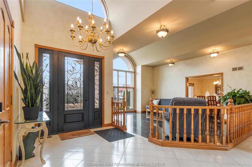 Experience refined living as you enter through the private gated driveway and landscaped grounds to this impressive 3,000 sq. Ft. Custom-built style home. Offering exceptional curb appeal, this property features an attached heated double-car garage, a detached garage, and an above-ground swimming pool with a fully fenced in yard. Step inside the grand foyer and your met with elegant barrel-vault ceilings, detailed crown mouldings, and a spacious living room that connects into a formal dining area—ideal for entertaining. The eat-in kitchen boasts ample cabinetry and a charming breakfast nook overlooking the backyard and sunken family room, complete with a natural fireplace. A generously sized laundry room is conveniently located off the garage, along with a two-piece powder room. The thoughtfully designed layout continues into the other wing where you will find 5 bedrooms, including a spacious primary retreat with a walk-in closet, private ensuite, and a unique indoor hot tub room. The full unfinished basement offers outstanding potential for future living space, featuring a roughed-in bathroom and separate access to the backyard—ideal for customization to suit a variety of needs. Outdoors, enjoy a fully fenced yard with patio space and endless possibilities for relaxation or entertaining. **property is being sold in “as-is” condition. Disclosure and letter pertaining to potential sewers available in documents.**