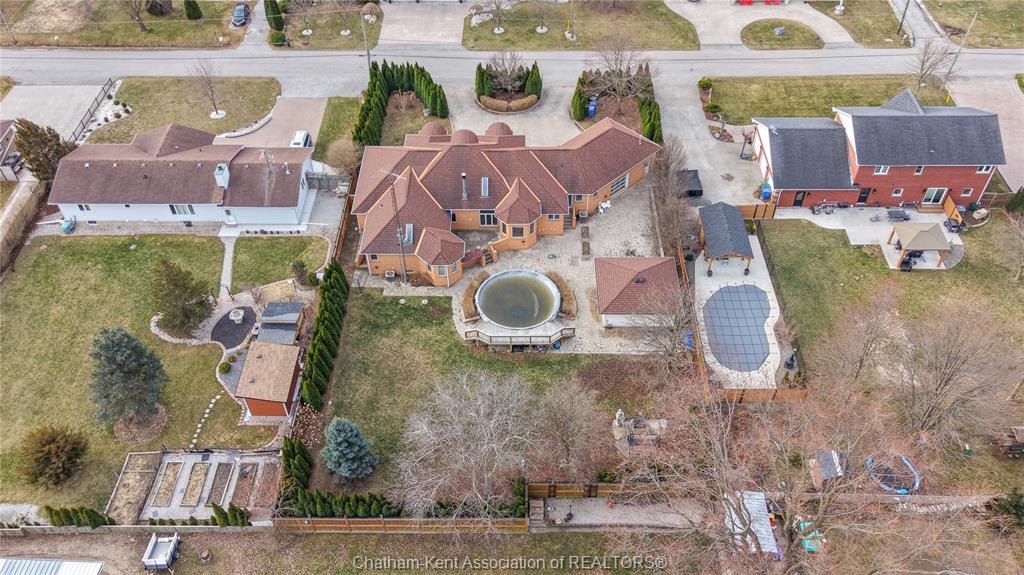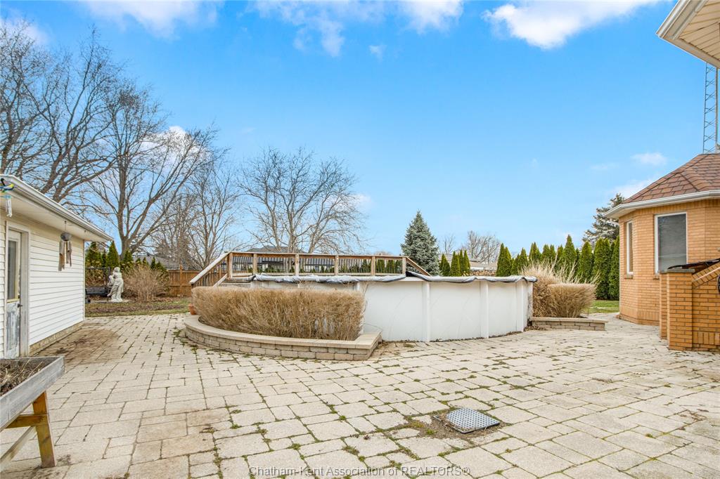• Fully fenced yard with patio space and an above-ground pool.