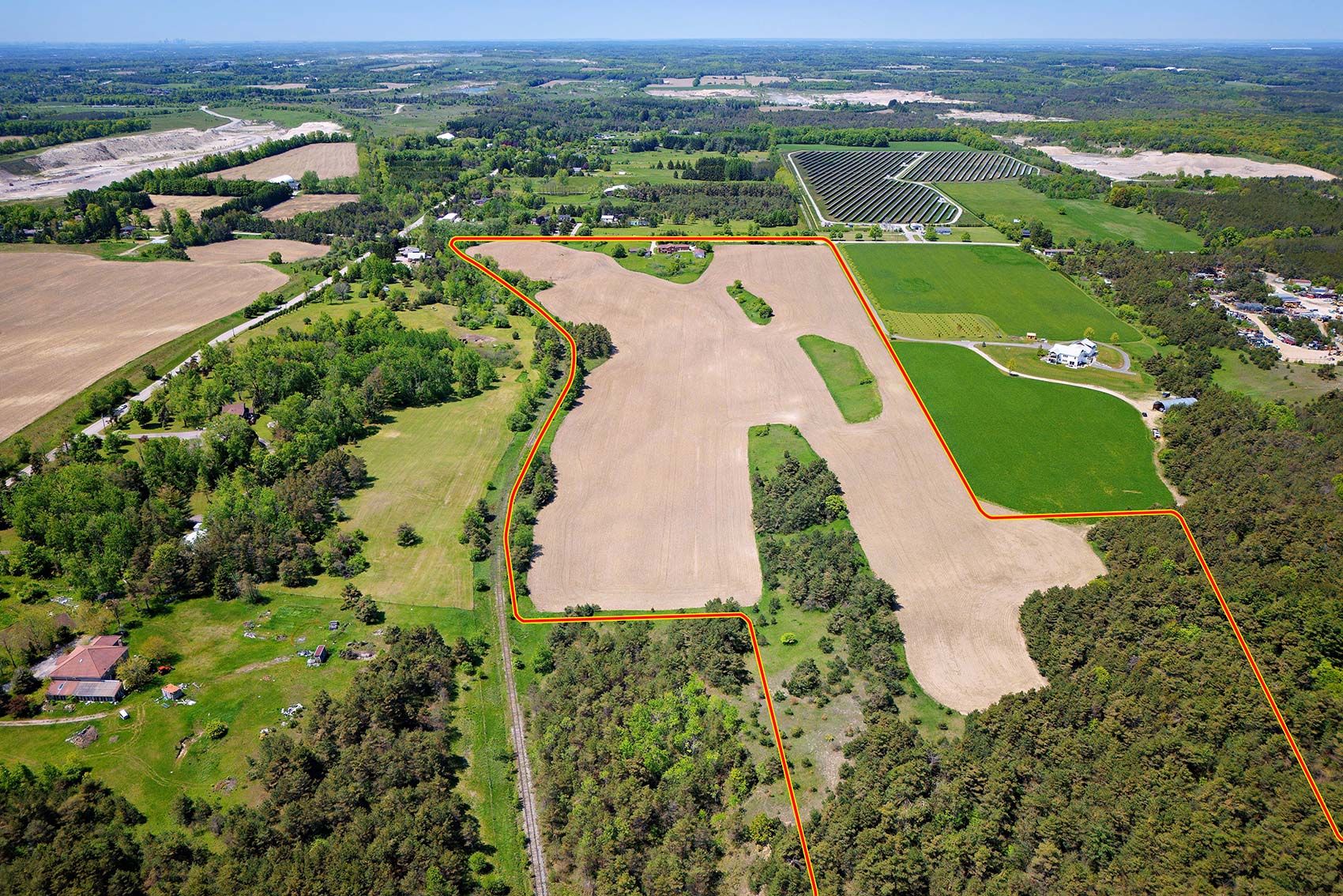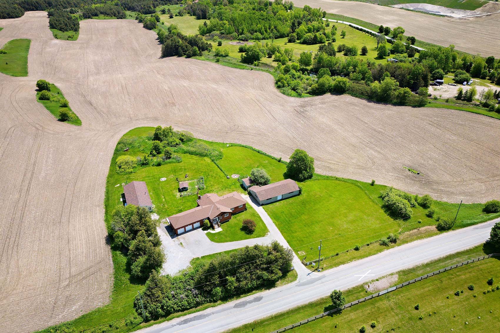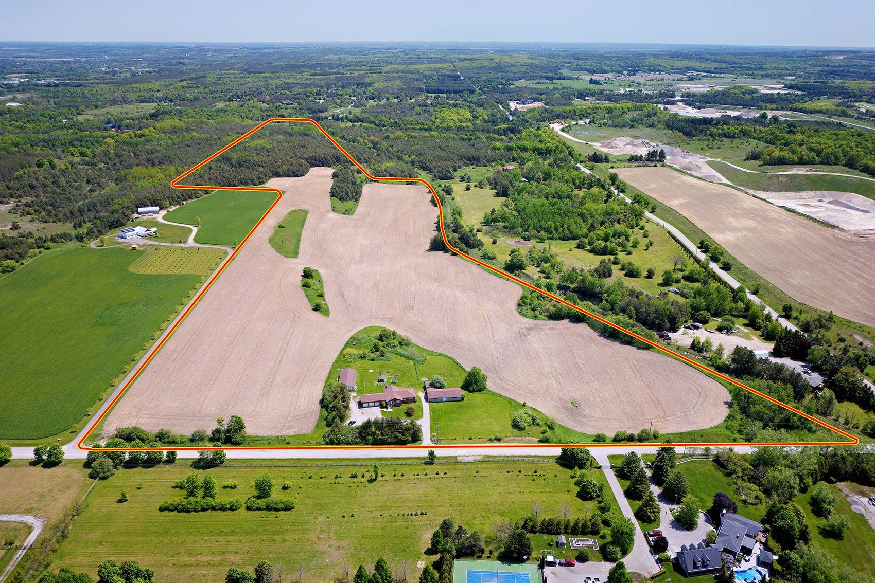 64. 7 acres tranquil hobby farm with multiple buildings- charming raised bungalow offering 3+1 bedrooms, an in-law suite with separate entrance and walk-out, and an attached 3-car garage with multiple driveways providing ample parking. Inside, you'll find spacious principal rooms with laminate and ceramic flooring throughout. The upper and lower levels can function as separate units, making this property ideal for multi-generational living or rental income. The land features two barns, several outbuildings, and a small ep-protected forested area, creating a peaceful, natural setting. With spectacular views, sand and gravel on site, and forest at the rear, the opportunities are endless whether as a hobby farm, land bank, or your own country retreat. Conveniently located near hwy 404 and bloomington for quick access to the city.