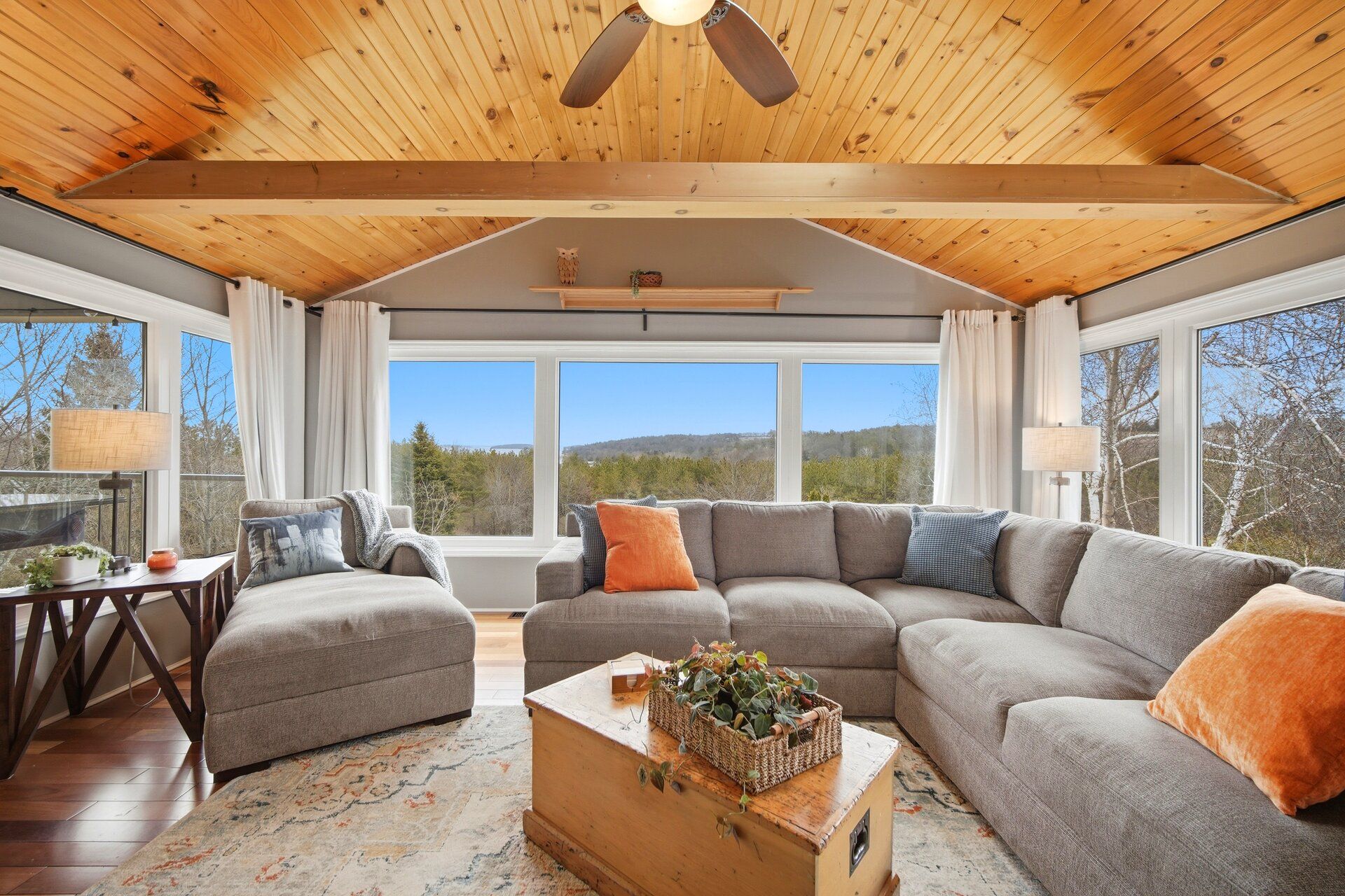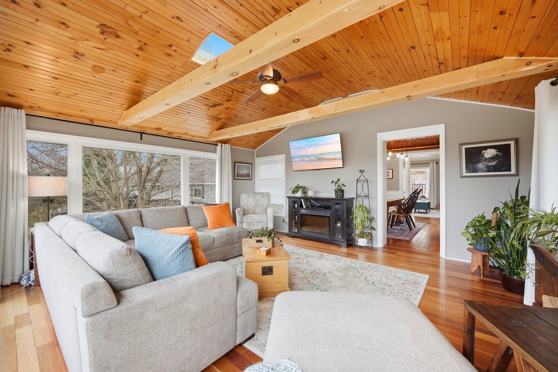 • Vaulted ceilings in the family room with abundant windows for lake views.