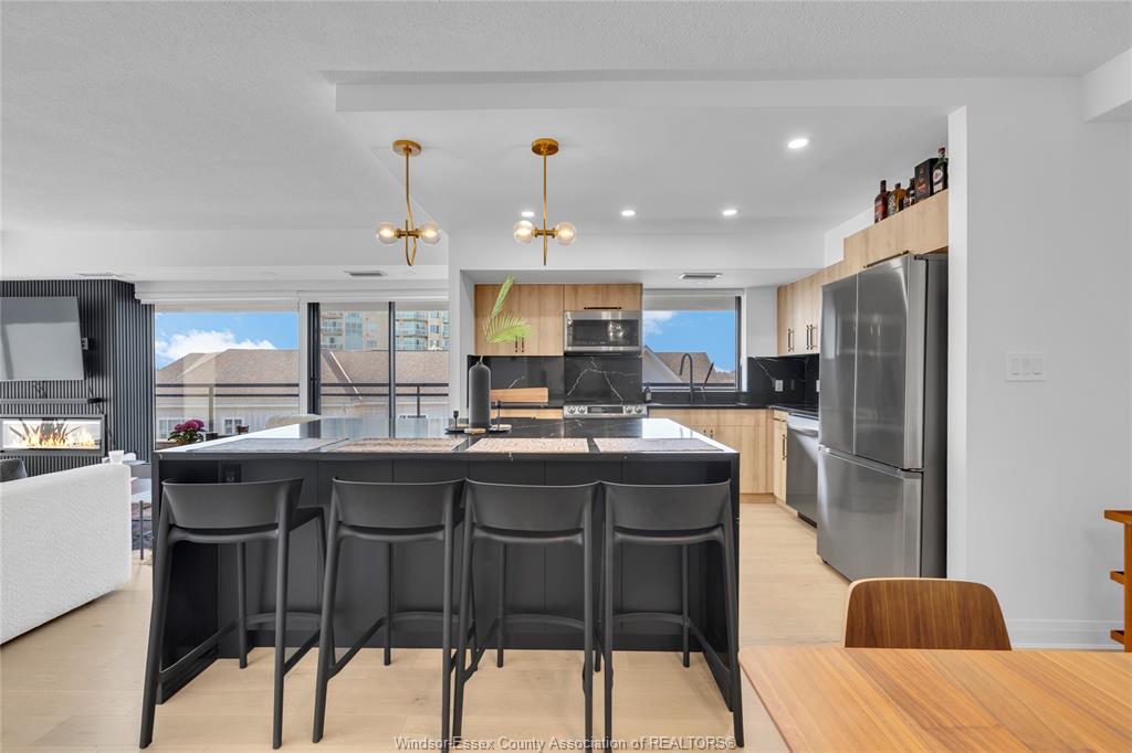 Unit 604 at 5125 riverside dr e offers a rare opportunity in one of windsor’s most desirable, adult oriented waterfront buildings. Recently updated common areas with over $1m invested in hallway renovations, plus amenities including underground parking, storage locker, saltwater pool, gym, sauna, billiards room, party room, and a stunning lobby. This rear corner unit features unobstructed views of the detroit skyline, reaume park, and the peace fountain. Inside, the unit has been tastefully updated over the past 3 years with an open concept layout, custom cabinetry, quartz countertops with waterfall island, and stainless steel appliances. Large, bright rooms throughout, including two oversized bedrooms with ample storage, plus a 1. 5 bath layout with a 5pc main featuring a thermostatic shower. This is one unit that is a must see.