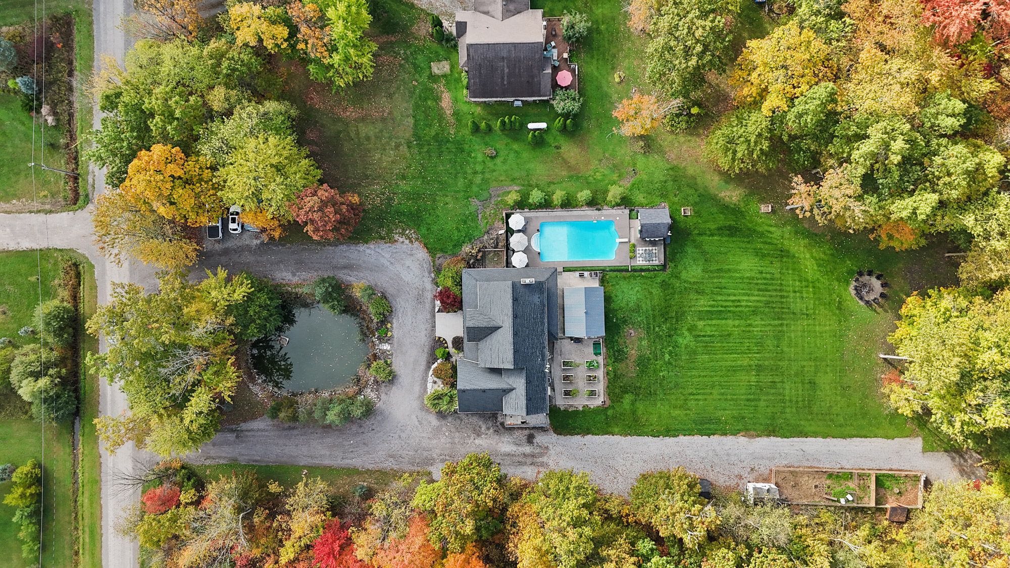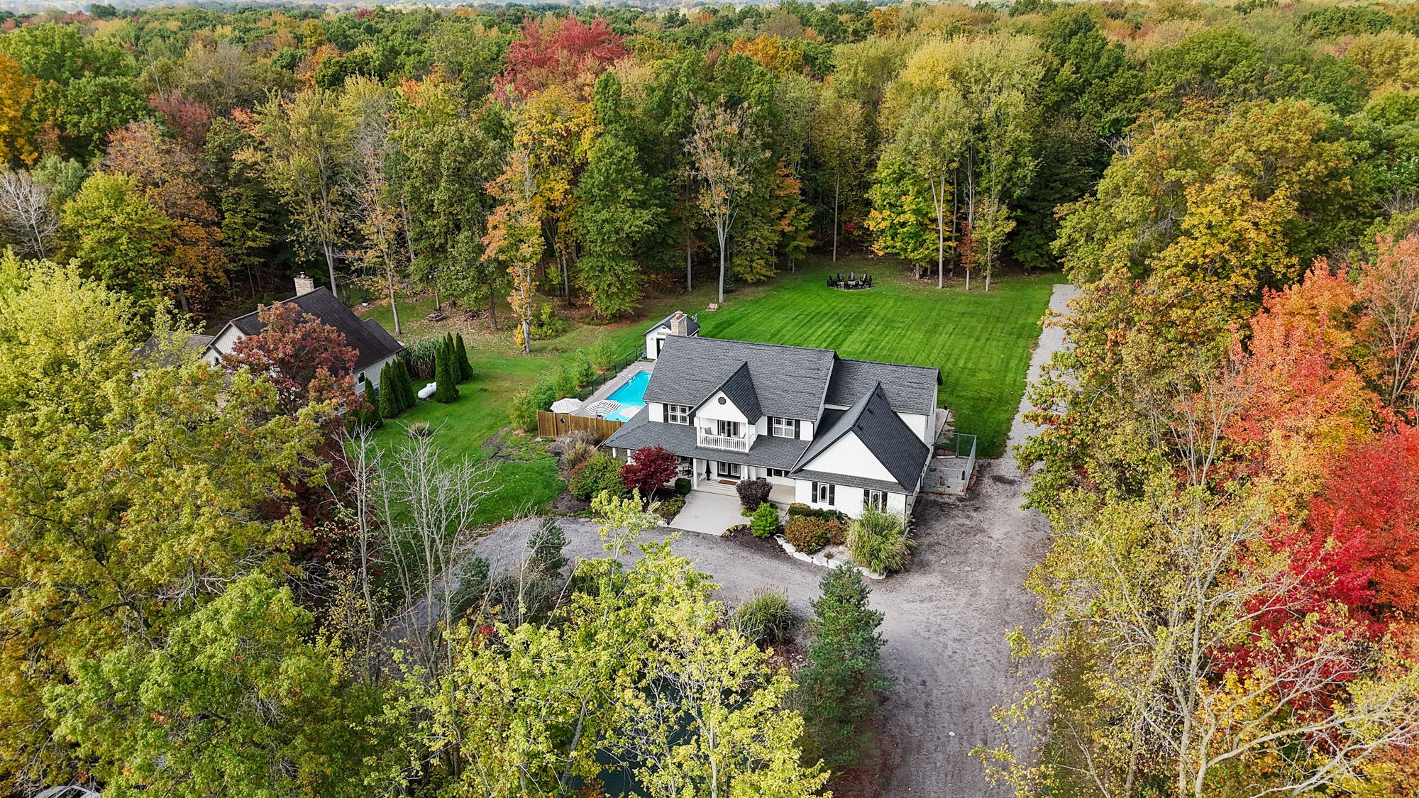 Welcome to this modern farmhouse retreat set on just over 2 acres - where modern design meets the beauty of nature. At the front of the home, a peaceful pond with ducks and fish welcomes you and sets the tone for peaceful country living. This home has been completely transformed with beautiful finishes and thoughtful design creating an easy flow that feels instantly inviting. Inside the main floor has an open concept layout centered around a warm welcoming kitchen that feels like the heart of the home. Upstairs, you will find four spacious bedrooms, 2 full bathrooms, an open loft/office area and a charming patio overlooking the pond, the perfect spot for your morning coffee or quiet evening reflection. Step out back to enjoy your own private oasis featuring an inground pool , custom built 20x30 gazebo, and cozy firepit area ideal for relaxing or summer nights entertaining under the stars. The expansive driveway offers plenty of parking for family gatherings and entertaining large groups of friends, while the bonus fully finished lower level is a playground for fun- from games to movie nights and more! A home where every detail is rooted in nature and refined in design, this home is a rare balance of warmth, beauty and intention. A place to slow down, breath, and truly enjoy.