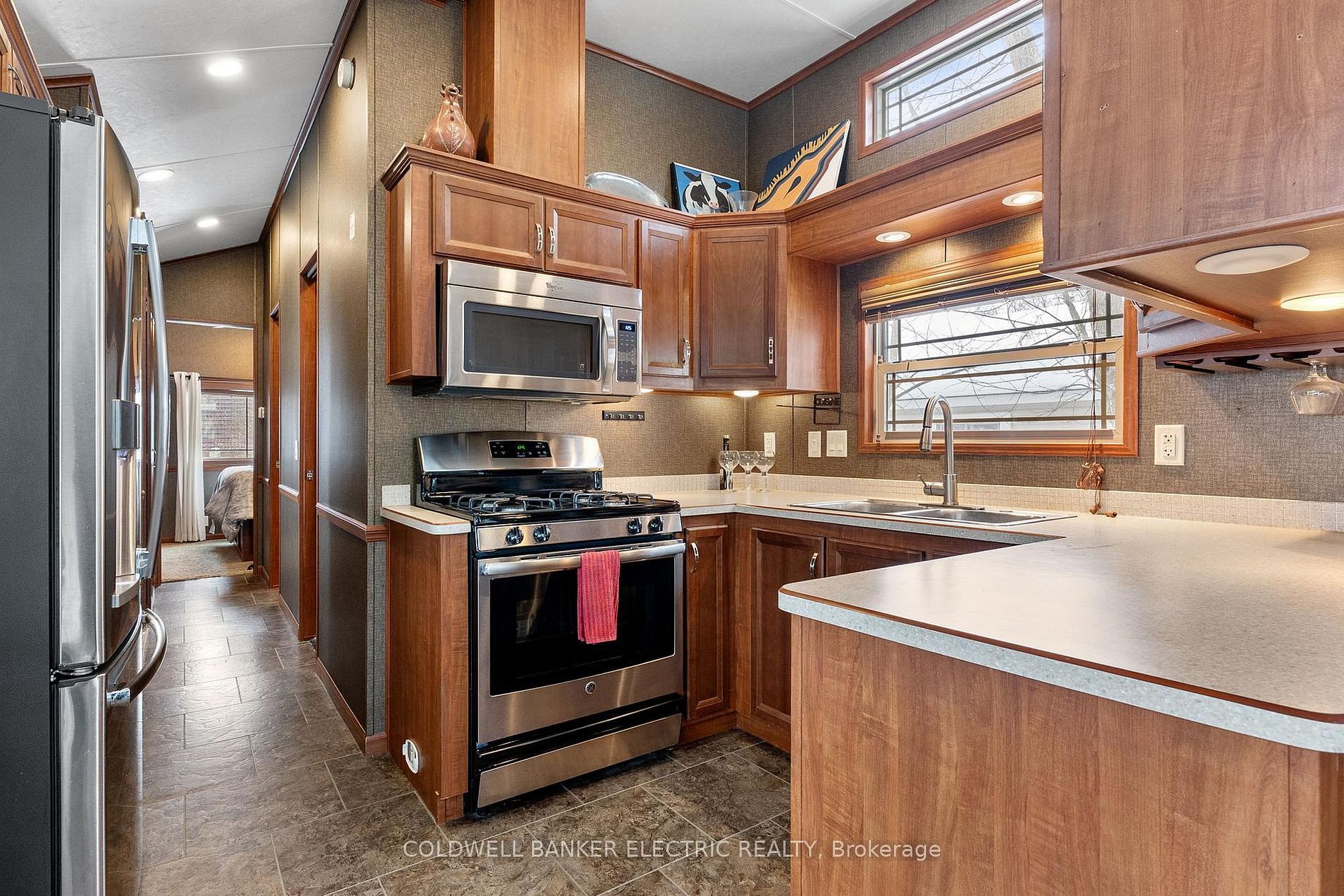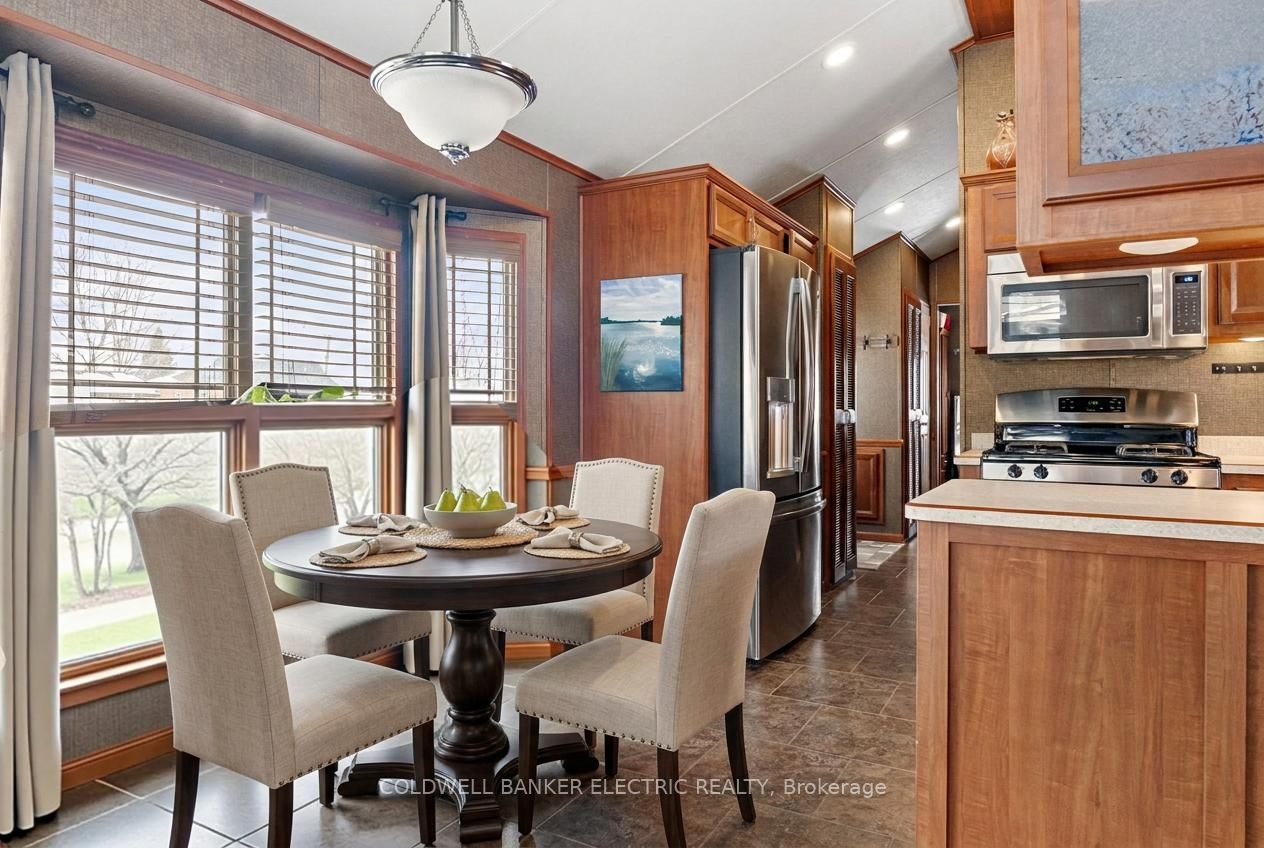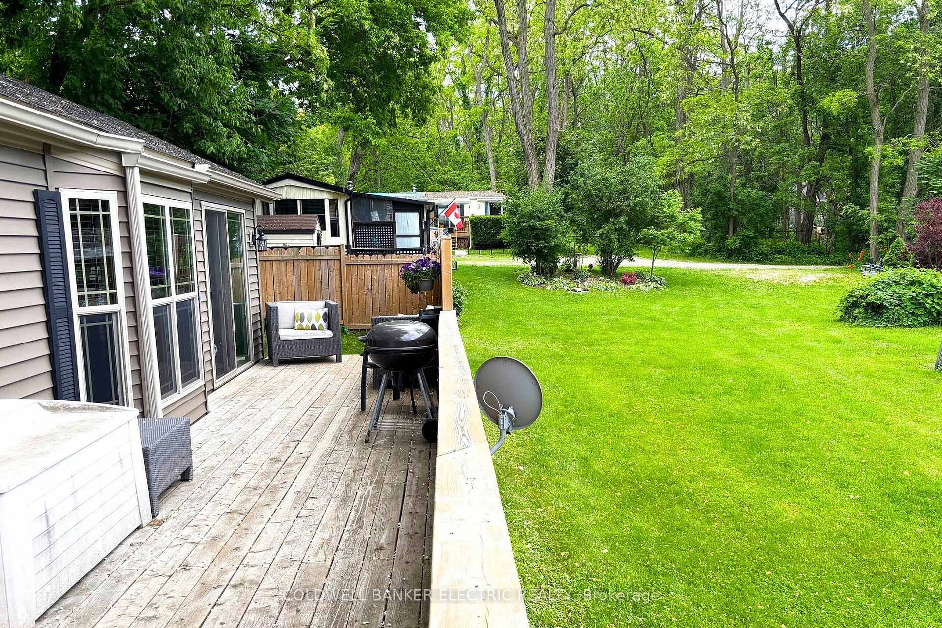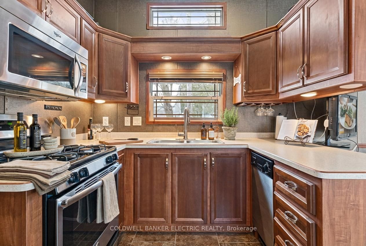 Welcome to your slice of paradise near rice lake, perfect for adult living, year-round comfort, or a peaceful weekend escape. This charming 2-bedroom, 1-bath mobile home offers unbeatable value with low land-lease fees of just $530 per month. Thoughtfully designed and full of cozy character, the open-concept layout blends the living, dining, and kitchen areas into a warm, welcoming space, complemented by an electric fireplace that brings added warmth and charm. The primary bedroom is a snug retreat, while the second bedroom features built-in bunk beds, perfect for guests. You'll love the light-filled 3-piece bathroom, featuring a skylight, space-saving pocket doors, and a tucked-away washer/dryer combo for added convenience. Stay comfortable year-round with forced-air propane heating and central air conditioning. Step outside onto your deck and take in the postcard-worthy sunsets over rice lake. The fully fenced yard offers privacy, ample space for pets or gardening, and the nearby boat launch means you're just moments away from fishing, boating, or paddling. Only 20 minutes to port hope, cobourg, or peterborough, this home strikes the perfect balance between nature and convenience. Whether you're downsizing, investing, or searching for a year-round retreat, this one checks all the boxes - affordable, low-maintenance, and breathtaking.