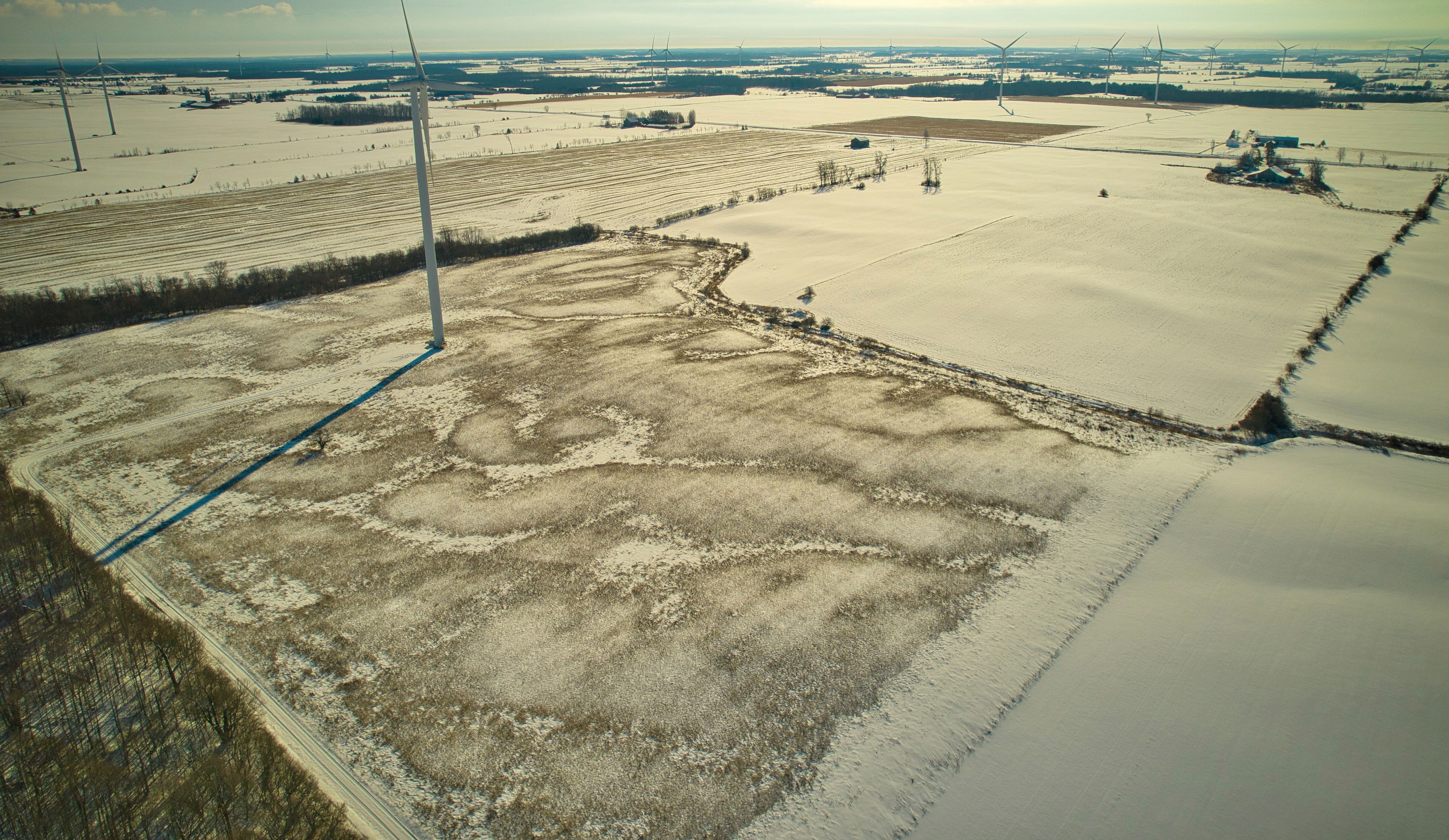 This 99. 7 acre farm has approximately 94 workable acres of organic farmland. There are some random drains through this farm that has a mix of perth clay loam and brookston clay loam. The house on the property has been vacant for many years and there is an older barn plus a couple of smaller outbuildings in the yard area. There is a wind turbine towards the back of the farm that provides income as well.