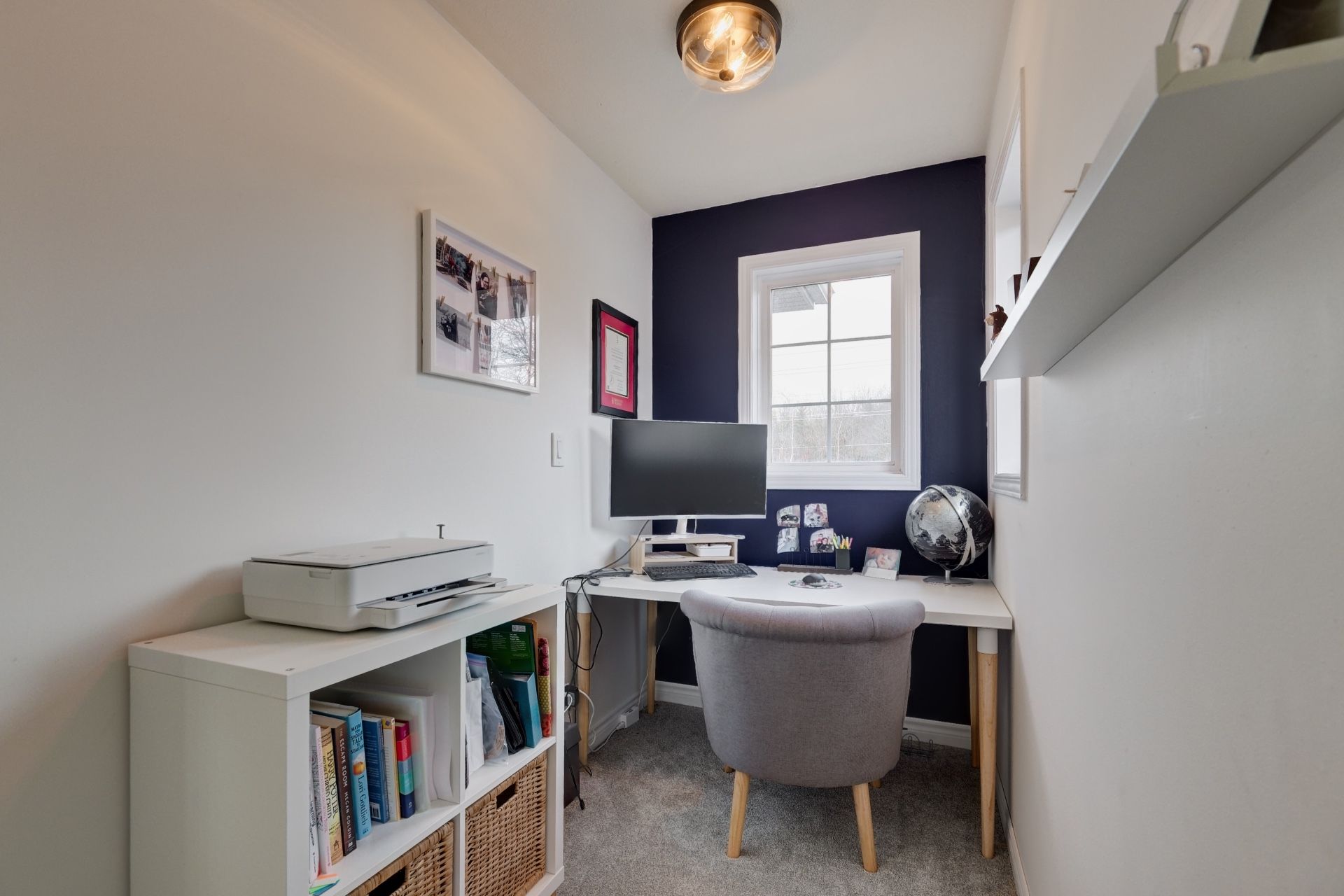 Welcome to this thoughtfully updated freehold townhome, located just minutes from the historic town of ancaster and all its amenities. Offering a smart, functional layout, this home is well suited for families seeking low-maintenance living. The updated white kitchen features quartz countertops, a breakfast bar, a large pantry, modern flooring, and quality finishes that create a bright and welcoming space. The home offers two bedrooms plus a bright loft-style office, ideal for working from home or flexible living. A full semi-ensuite bathroom on the second level, a convenient two-piece bath on the main floor, and a three-piece bathroom in the finished basement provide excellent functionality and separation of space. Enjoy new bay windows in both the primary bedroom and living room, freshly painted. A private patio, cosy porch and fully fenced yard for outdoor relaxation. Parking for three cars. Close to all commuter routes. The lands across jerseyville rd w are currently designated rural with no active development applications on file and are home to established agricultural operations including manorun organic farm and macgregor's farm, reinforcing the area's enduring rural character.