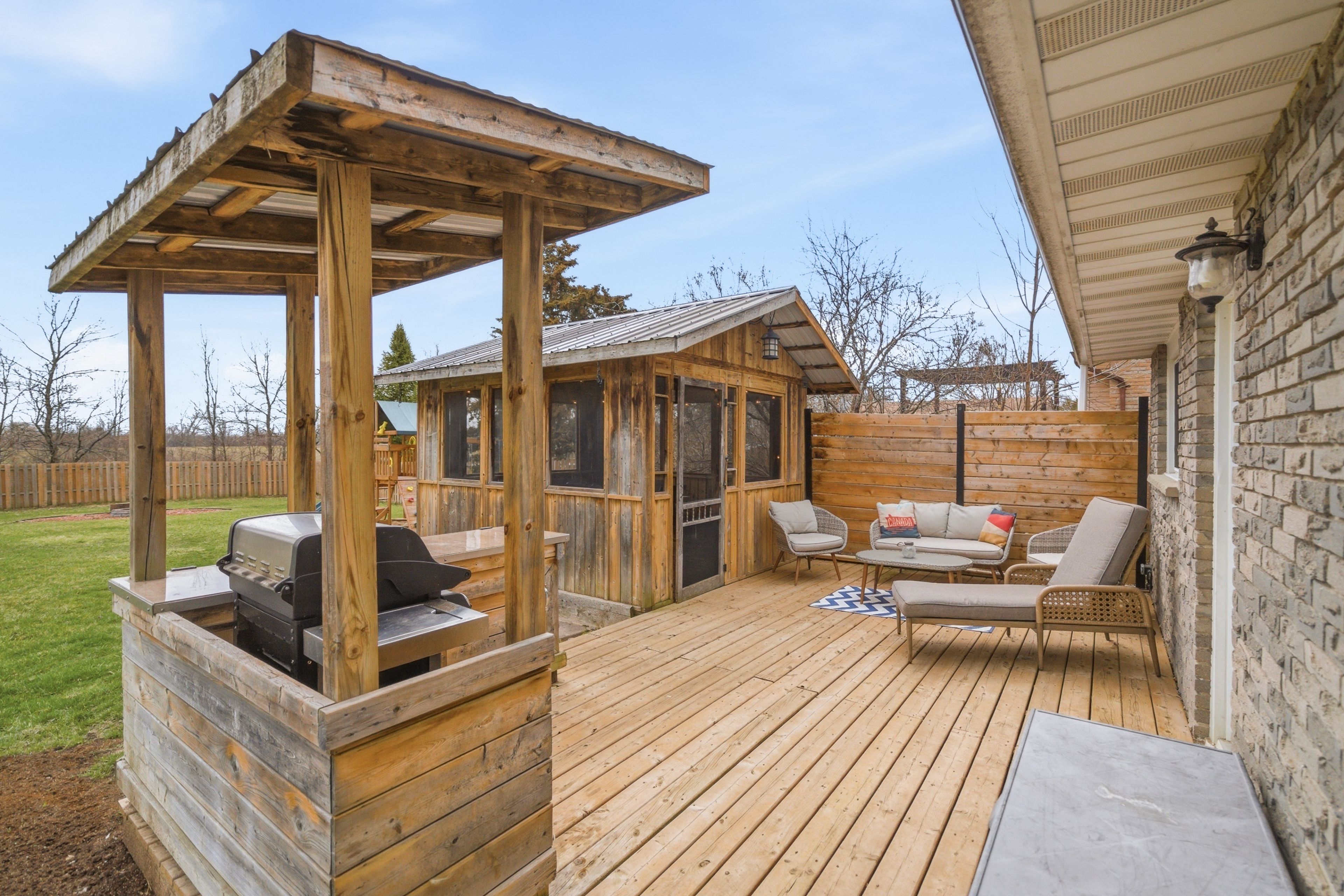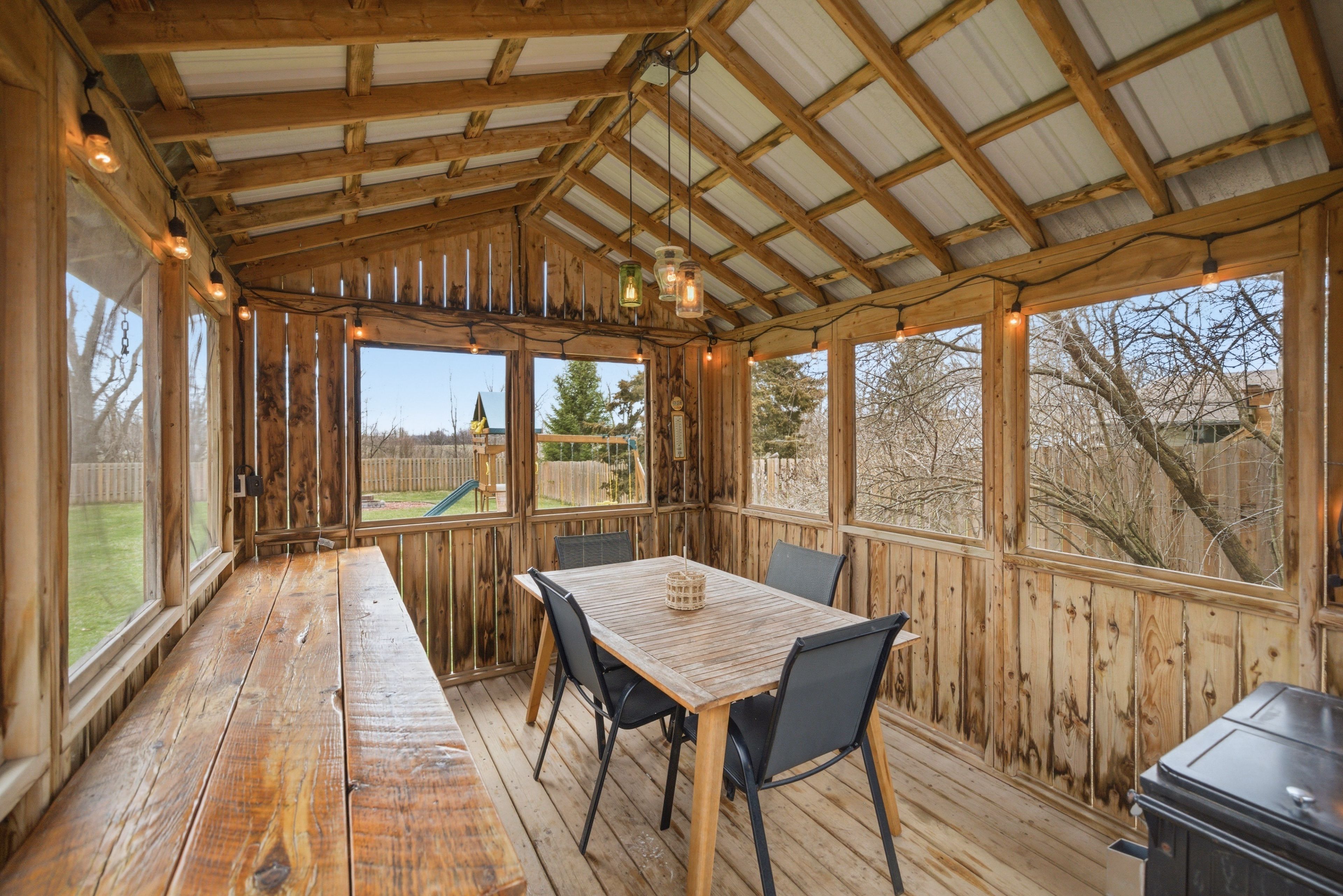 • Spacious outdoor area with a covered BBQ station and screened-in gazebo.