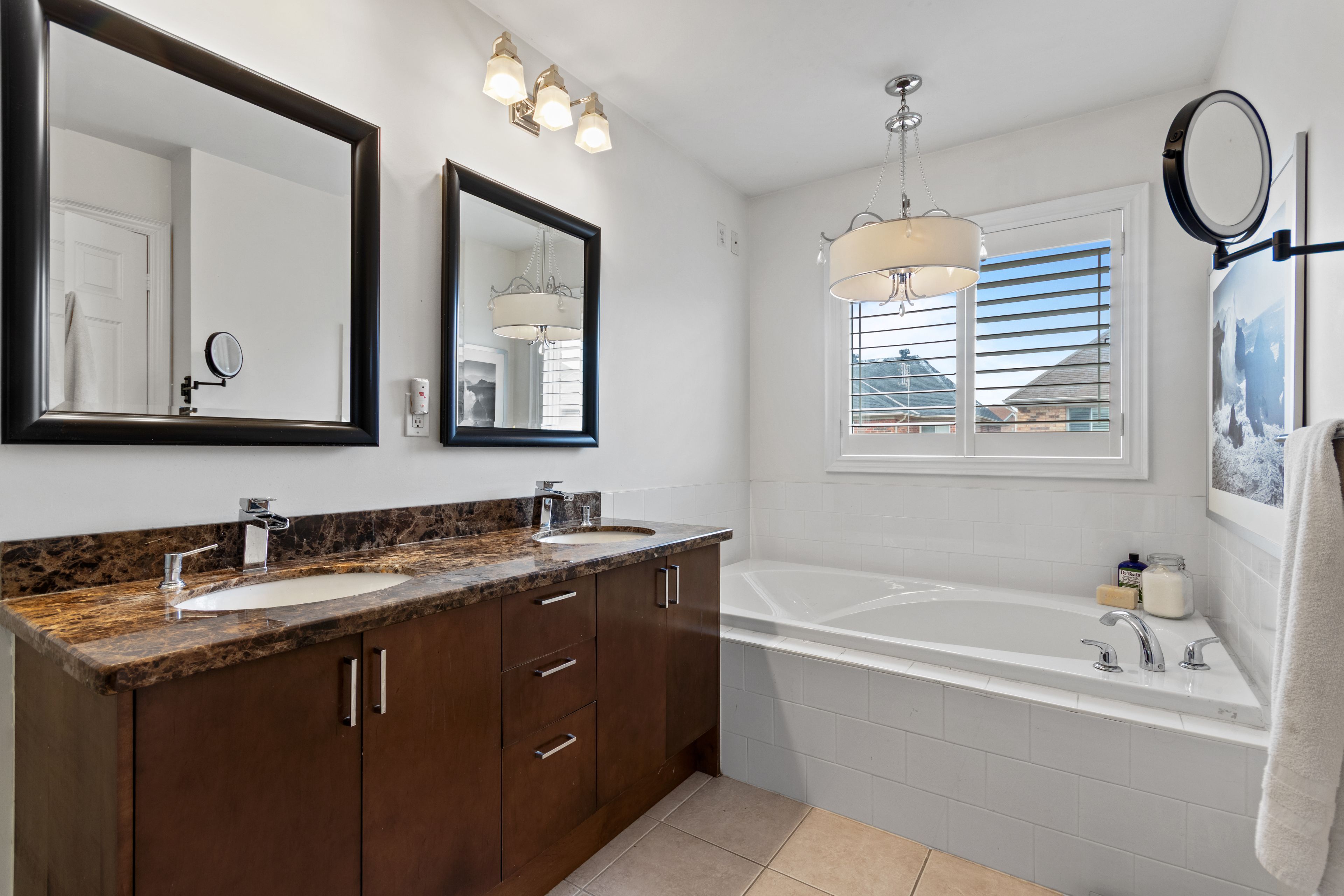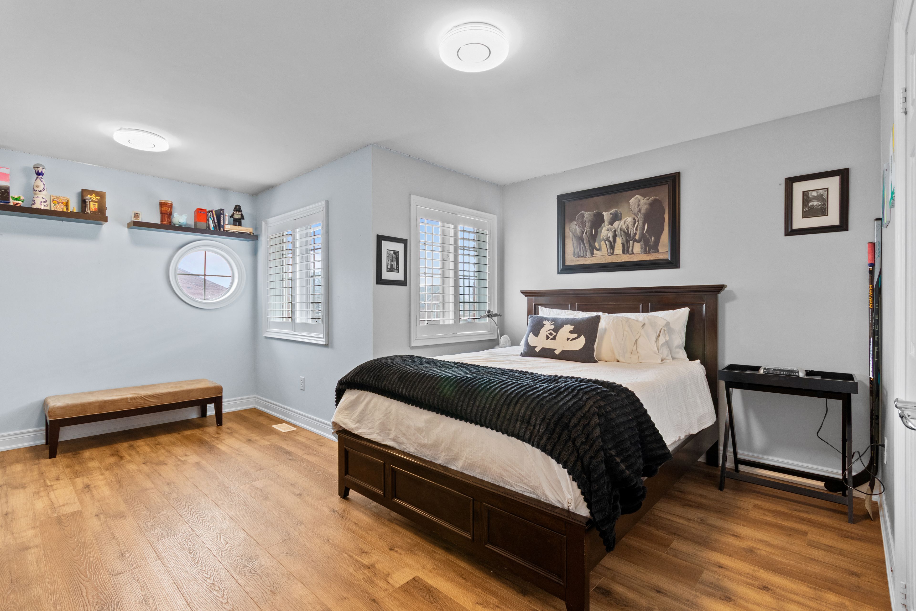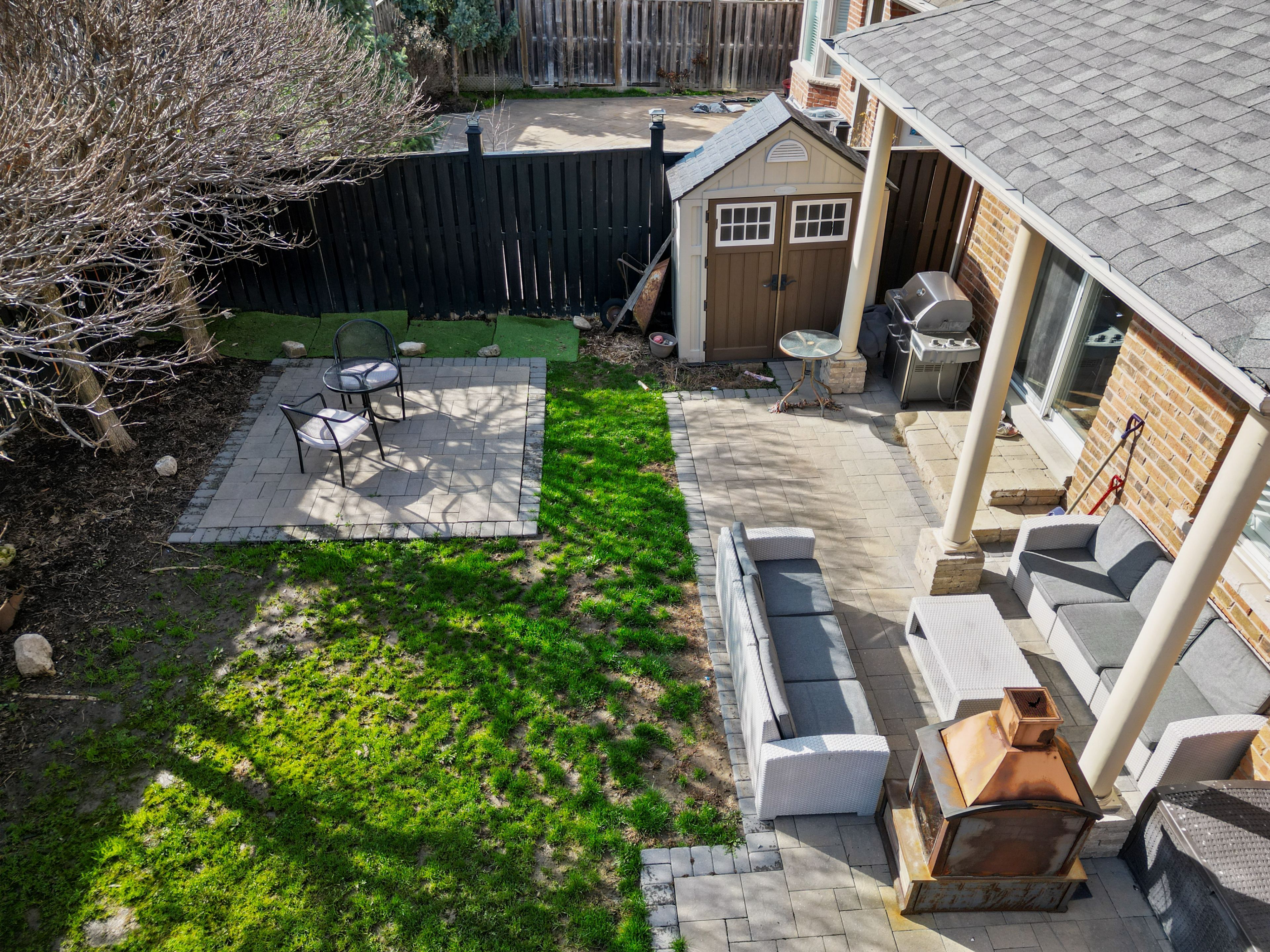 Welcome to 5142 ancient stone ave, a beautifully upgraded family home tucked in the vibrant churchill meadows community. With approx 4,250 sf of total living space, this home boats thoughtful upgrades, including a new roof and a/c (2025), security system with cameras, central vacuum system, california shutters throughout, and window security film for added peace of mind. From the moment you arrive, the home makes a strong impression with its interlocking stone front and extended driveway. Step inside to a bright marble foyer that opens into a thoughtfully designed main floor. The layout flows effortlessly from a formal dining space into a warm, inviting living area anchored by a gas fireplace, all enhanced by oversized windows and pot lights throughout. The kitchen is both stylish and functional, featuring bosch and kitchenaid appliances, a gas stove, stone countertops, and a generous island that naturally becomes the heart of the home. A main-floor laundry room with garage access adds everyday convenience. Above, the home continues to impress with a versatile layout offering two primary bedrooms, ideal for multi-generational living or added flexibility. The additional bedrooms are well-proportioned, complemented by upgraded finishes and the convenience of two staircases connecting the levels. The fully finished basement expands your living space with custom built-ins, a large recreation area, and a cold cellar, perfect for storage or entertaining. Whether it's movie nights, a home office, or a play space, this level adapts to your lifestyle. Step outside to a private backyard designed for enjoyment, complete with interlock stone, a gas bbq connection, and a custom-built shed with electricity, perfect for hobbies or extra storage. Surrounded by top-rated schools, parks, and everyday essentials, this location offers the perfect balance of convenience and community, with easy access to major highways, shopping, and nearby trails.