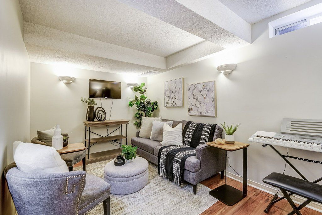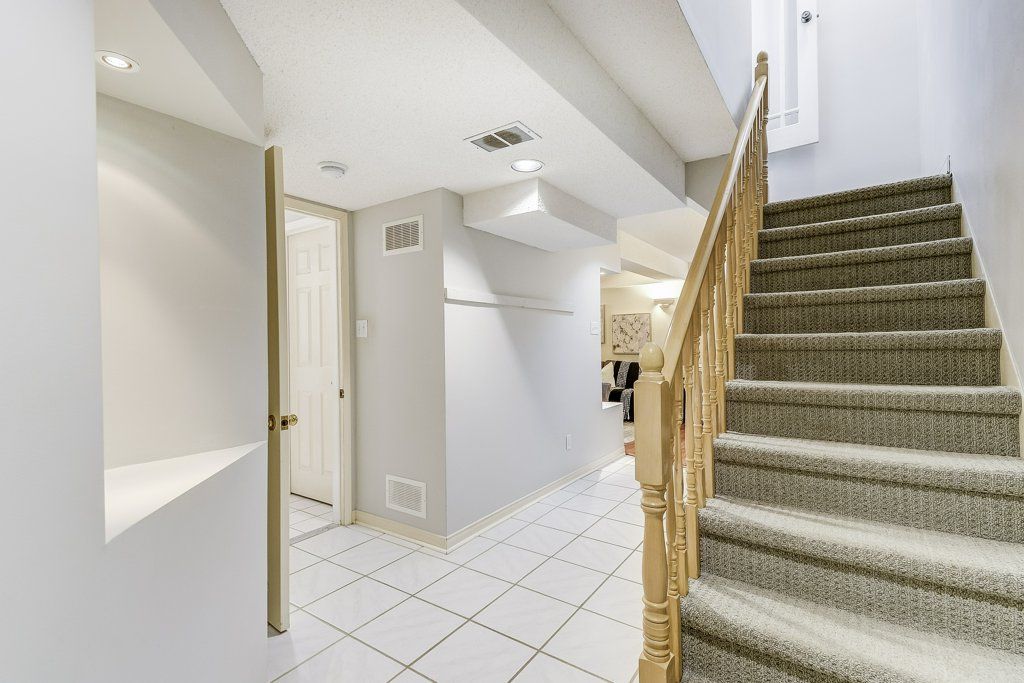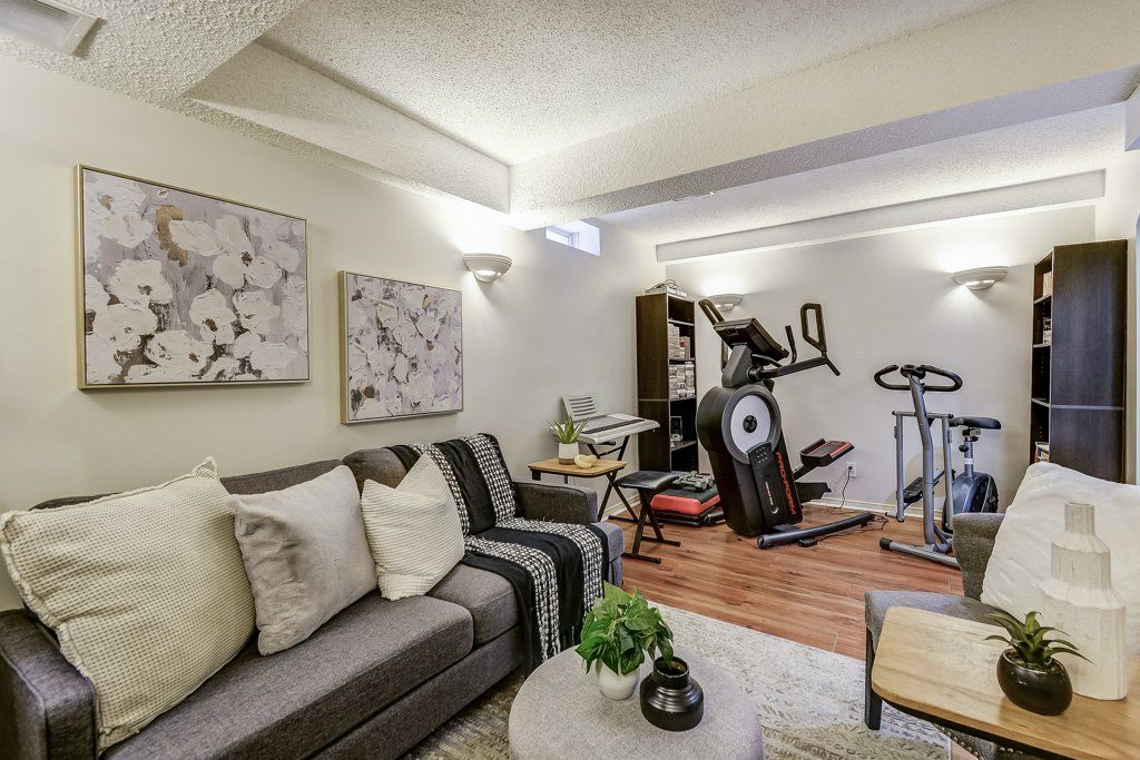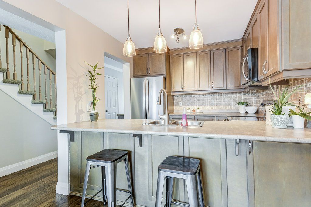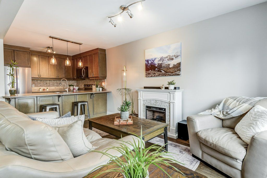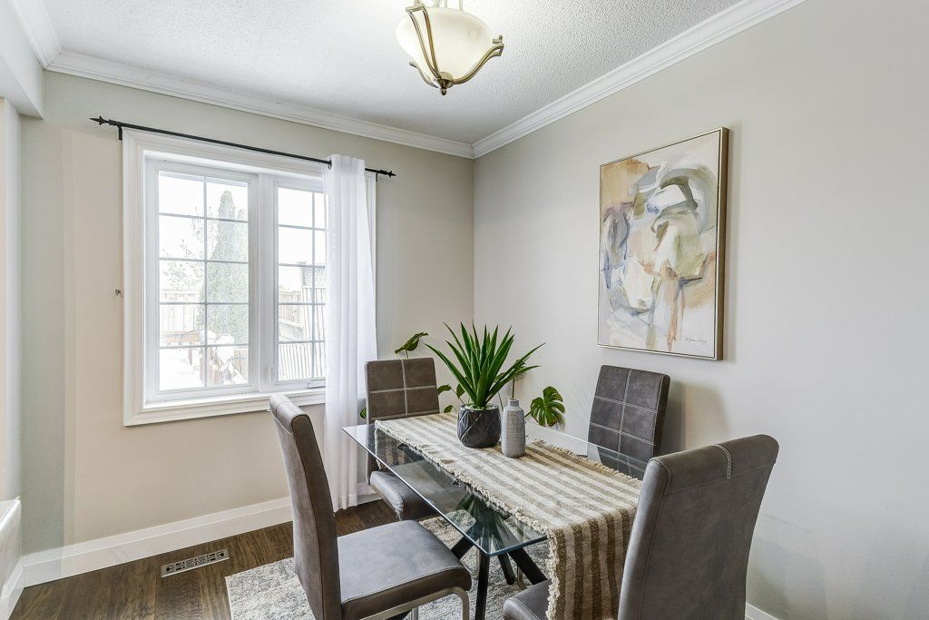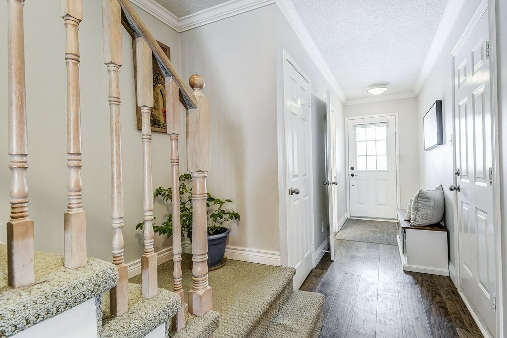 Gorgeous sun-filled townhome with no rear neighbours! Welcome to this beautifully updated, move-in-ready townhome offering bright open-concept living and exceptional functionality. The renovated kitchen features a breakfast bar overlooking the spacious living and dining areas - perfect for entertaining or everyday family life. Convenient direct garage entry adds everyday ease. Hardwood flooring runs throughout the kitchen, living room, dining room, and all bedrooms, creating a warm, cohesive feel throughout the main and upper levels. Upstairs, the spacious primary bedroom features his & hers closets. One secondary bedroom includes a built-in closet organizer, while the third bedroom offers generous space ready for your personal touch - ideal for families, guests, or a dedicated home office. The professionally finished basement expands your living space with a stylish rec room featuring tile and laminate flooring, a modern 3-piece bath, and ample storage. Step outside to your private, south-facing backyard oasis complete with a fabulous deck, retractable awning, brand new turf, and fresh wooden flower beds - creating a low-maintenance, beautifully landscaped retreat. With no rear neighbours, you'll enjoy added privacy year-round. Major updates include: new flooring (2022), new fridge, stove & microwave (2026), dishwasher (2024), furnace (2025), roof (2012), and deck (2013). Two-car driveway parking. Located close to highways, schools, parks, and shopping, this home checks all the boxes for comfort, convenience, and value.