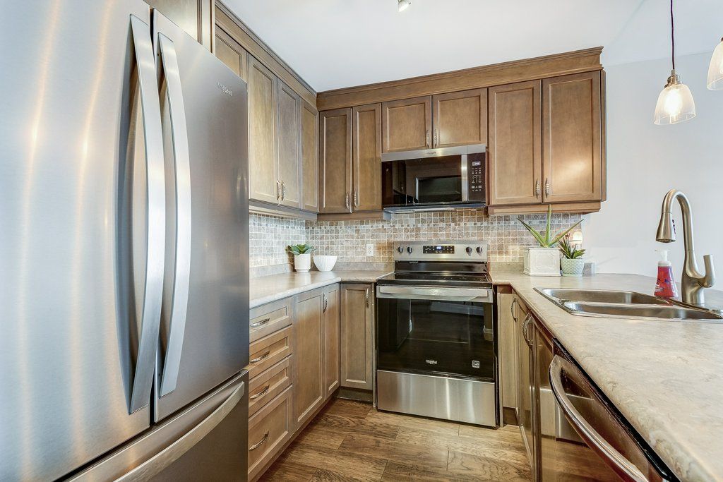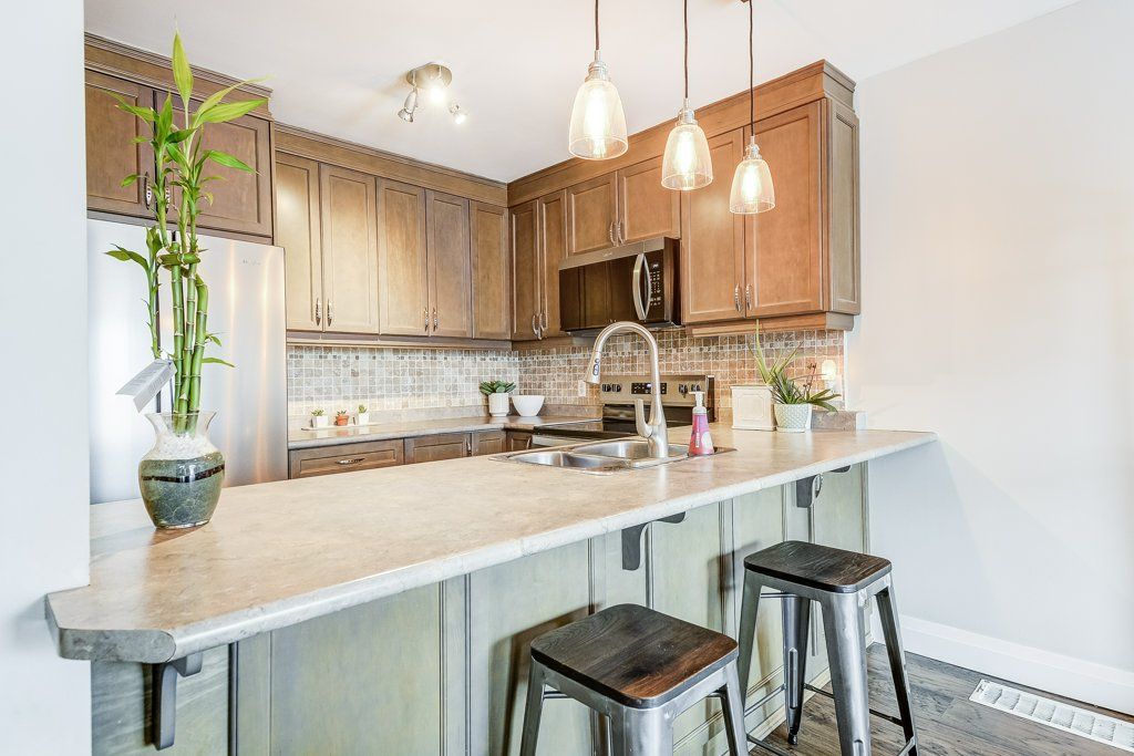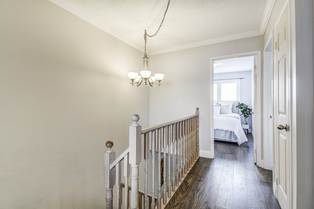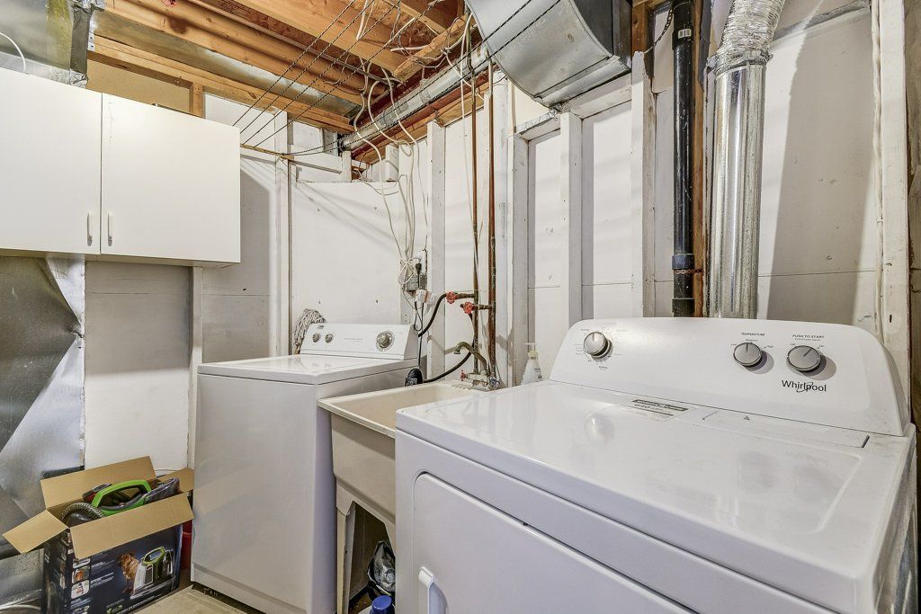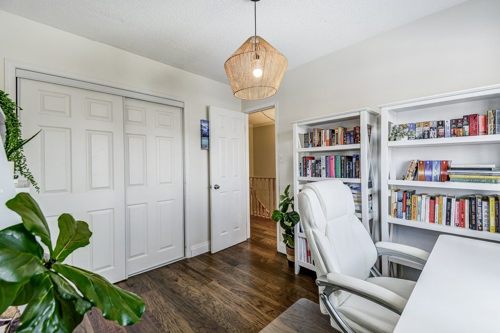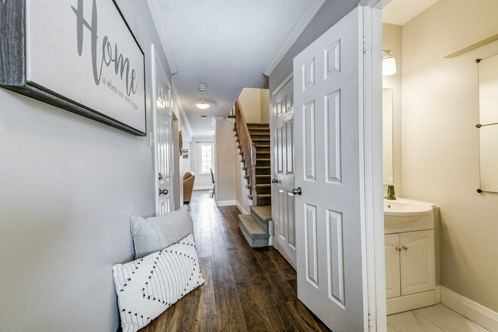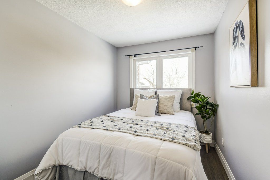 Gorgeous sun-filled townhome with no rear neighbours! Welcome to this beautifully updated, move-in-ready townhome offering bright open-concept living and exceptional functionality. The renovated kitchen features a breakfast bar overlooking the spacious living and dining areas - perfect for entertaining or everyday family life. Convenient direct garage entry adds everyday ease. Hardwood flooring runs throughout the kitchen, living room, dining room, and all bedrooms, creating a warm, cohesive feel throughout the main and upper levels. Upstairs, the spacious primary bedroom features his & hers closets. One secondary bedroom includes a built-in closet organizer, while the third bedroom offers generous space ready for your personal touch - ideal for families, guests, or a dedicated home office. The professionally finished basement expands your living space with a stylish rec room featuring tile and laminate flooring, a modern 3-piece bath, and ample storage. Step outside to your private, south-facing backyard oasis complete with a fabulous deck, retractable awning, brand new turf, and fresh wooden flower beds - creating a low-maintenance, beautifully landscaped retreat. With no rear neighbours, you'll enjoy added privacy year-round. Major updates include: new flooring (2022), new fridge, stove & microwave (2026), dishwasher (2024), furnace (2025), roof (2012), and deck (2013). Two-car driveway parking. Located close to highways, schools, parks, and shopping, this home checks all the boxes for comfort, convenience, and value.