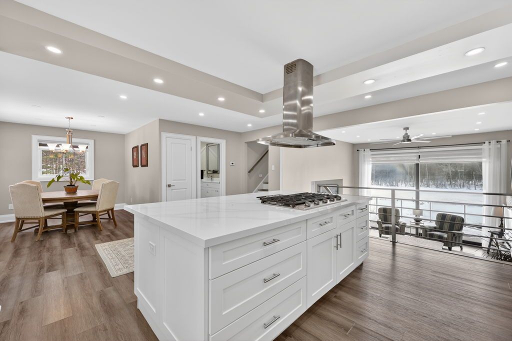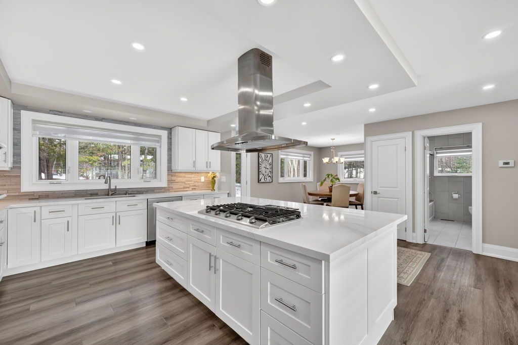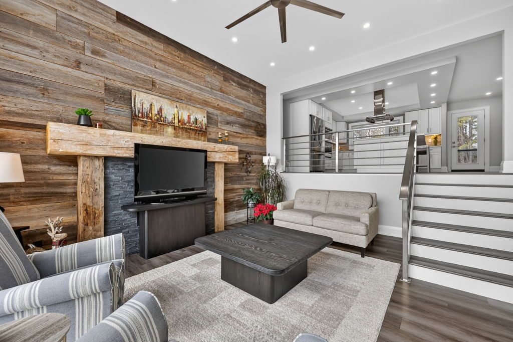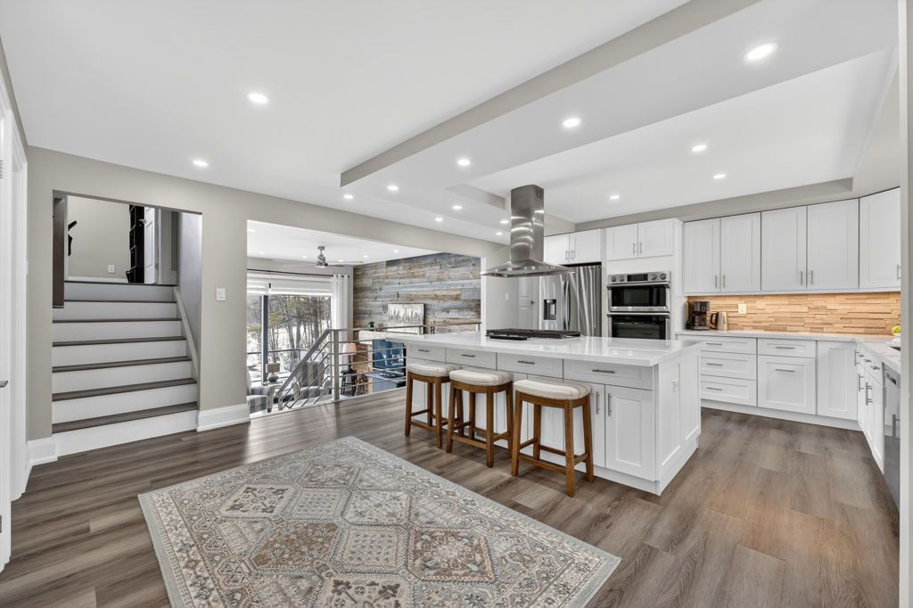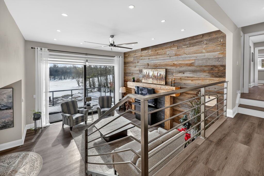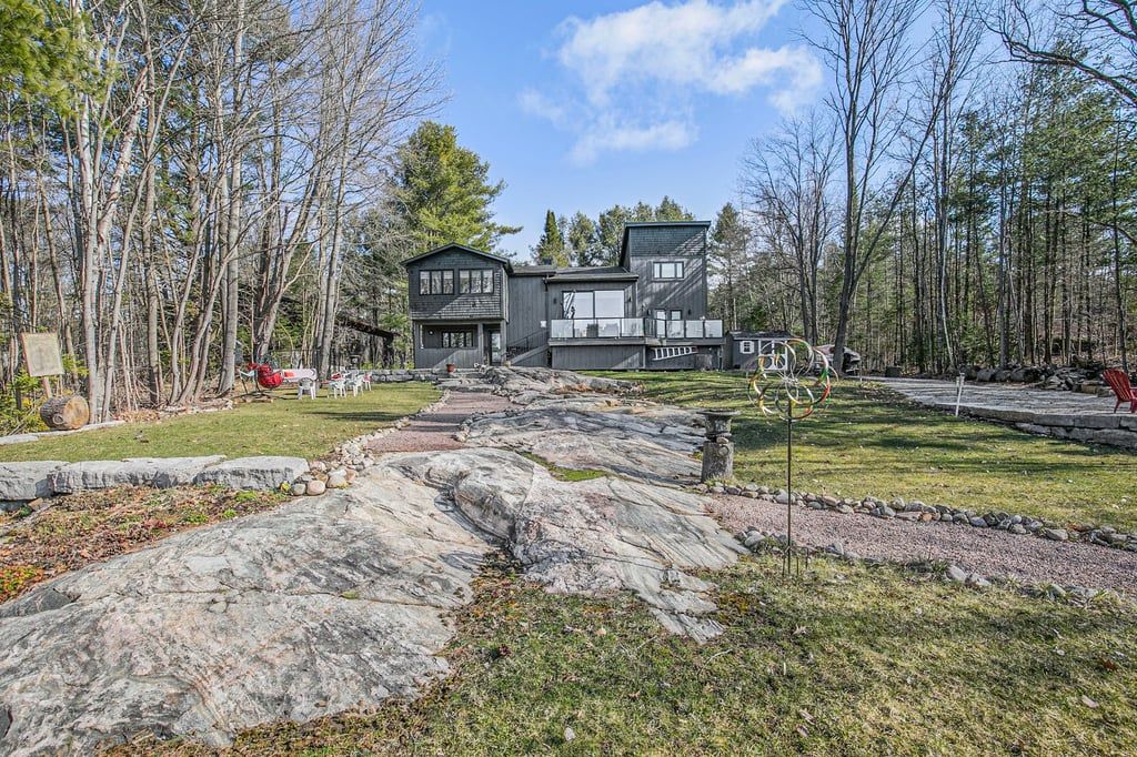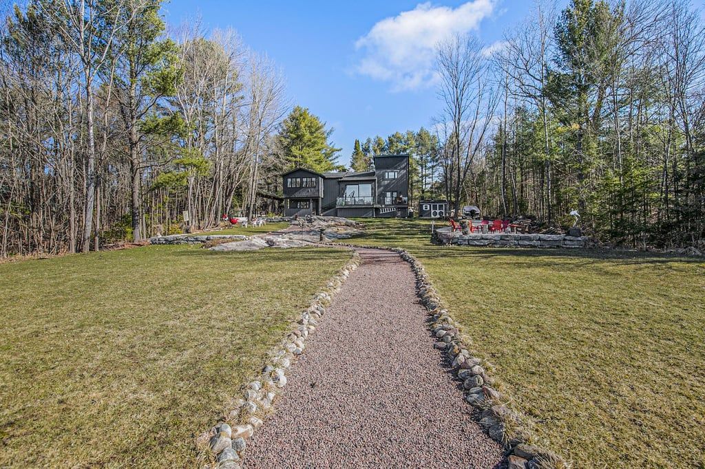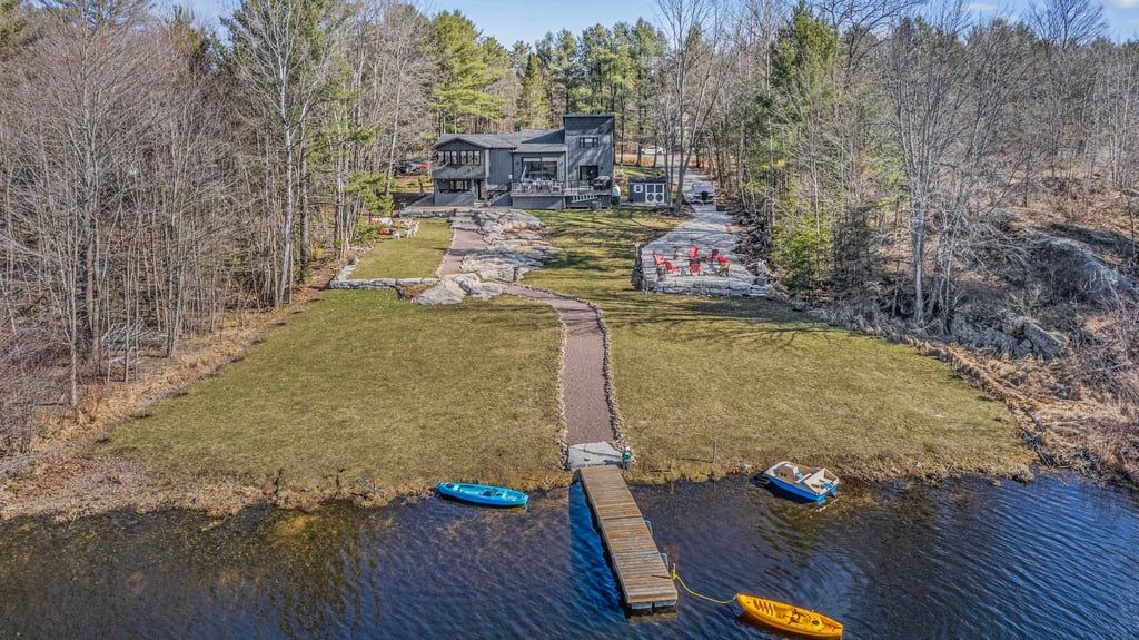 Custom finished, high end, 4 level backsplit, stunning kitchen with full slab quartz counter with double-sided cupboards, countertop range, s/s ceiling exhaust, double oven, s/s ice and water fridge, b/i dishwasher, huge sink overlooks landscaped garden with large stone wall, 12-foot high ceiling great room, double glass sliding door walkout to deck, barn beam mantel with gas fireplace, s/s railings, pot lights galore, cupboards all with organizers, built-in pantry, colonial doors throughout, huge composite deck with glass railing, 2 separate driveways, paved driveway holds 12 cars, 2nd driveway large enough for boat and trailer + 4 more cars, fully landscaped property, backyard fire pit, fruit trees and perennial gardens, great fishing off the dock, seven river access frontage, 15 minutes to all amenities *** seeing is believing***