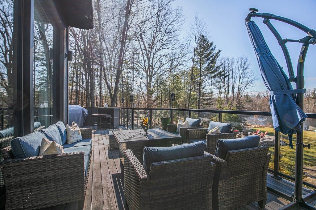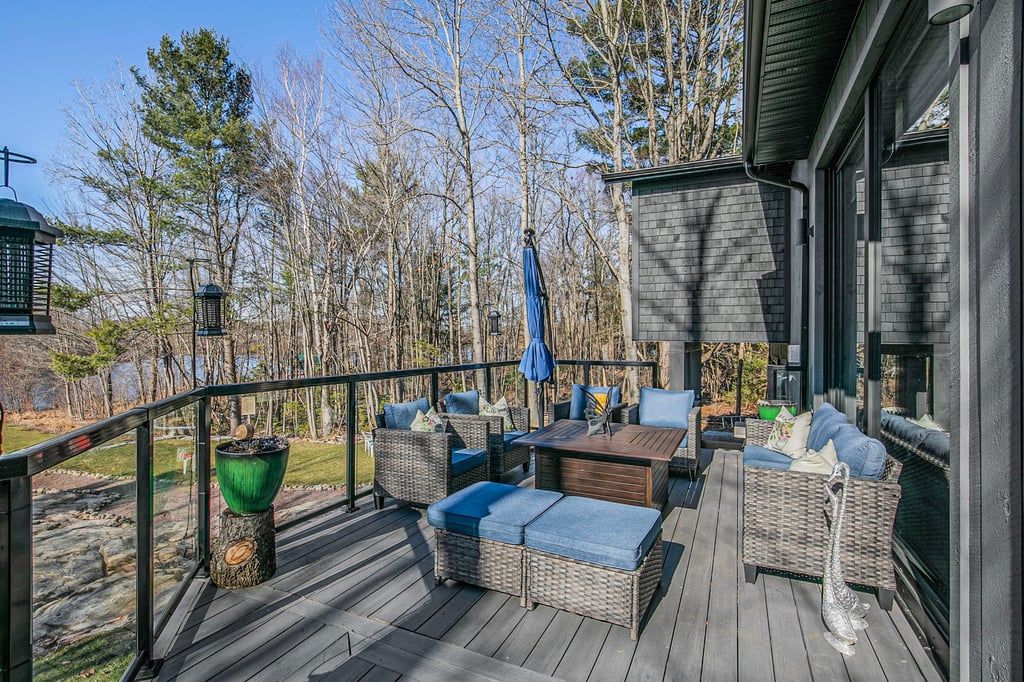 • Large composite deck with glass railing perfect for outdoor enjoyment.