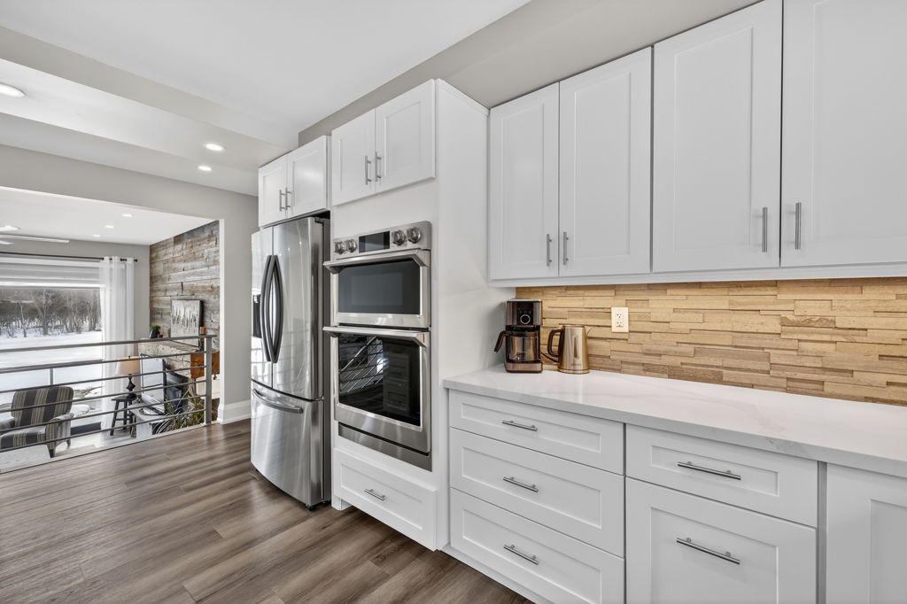 • Stunning kitchen features quartz counters and modern stainless appliances.