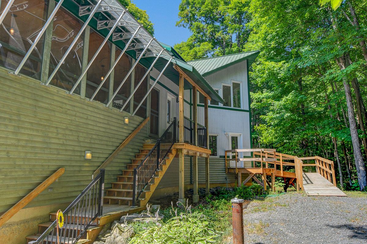 Extraordinary three-bedroom home with in-law suite, large sunroom and a huge garage! Nestled in a serene 5. 67-acre maple and mixed bush setting just a short drive from ottawa, this exceptional four-bedroom, three-bathroom home offers a perfect blend of tranquillity and modern living. As you approach the property, you'll be captivated by the lush surroundings and the stunning architecture that harmonizes with nature. Upon entering, you are welcomed by a spacious and light-filled open-concept living area, featuring large windows that showcase the breathtaking views of the woods. The gourmet kitchen, equipped with modern appliances, ample counter space, and a generous island, is perfect for entertaining or preparing family meals. The adjoining family room provides the ideal space for family gatherings, with easy access to the huge screen room for al fresco dining. The highlight of this home is the expansive sunroom that invites the outdoors in. This bright and airy space is perfect for relaxation or entertaining, featuring large windows and direct access to the outdoor deck. Imagine soaking in the hot tub while surrounded by the peaceful sounds of nature; it's an ideal sanctuary for all seasons. The primary suite serves as a relaxing retreat, complete with an ensuite bathroom that features luxurious finishes and a walk-through closet. The additional two bedrooms are spacious and versatile, making them ideal for a family, guests, or a home office. An exceptional feature of this home is the in-law suite, which offers privacy and comfort for extended family, working-from-home young adults, or guests. This separate living space features its own entrance, kitchenette, and full bathroom, ensuring independence while remaining close to home. The property features a spacious, heated garage, ideal for car enthusiasts or as an additional storage space. Whether you need room for vehicles, tools, or recreational equipment, this garage meets all your needs year-round.
