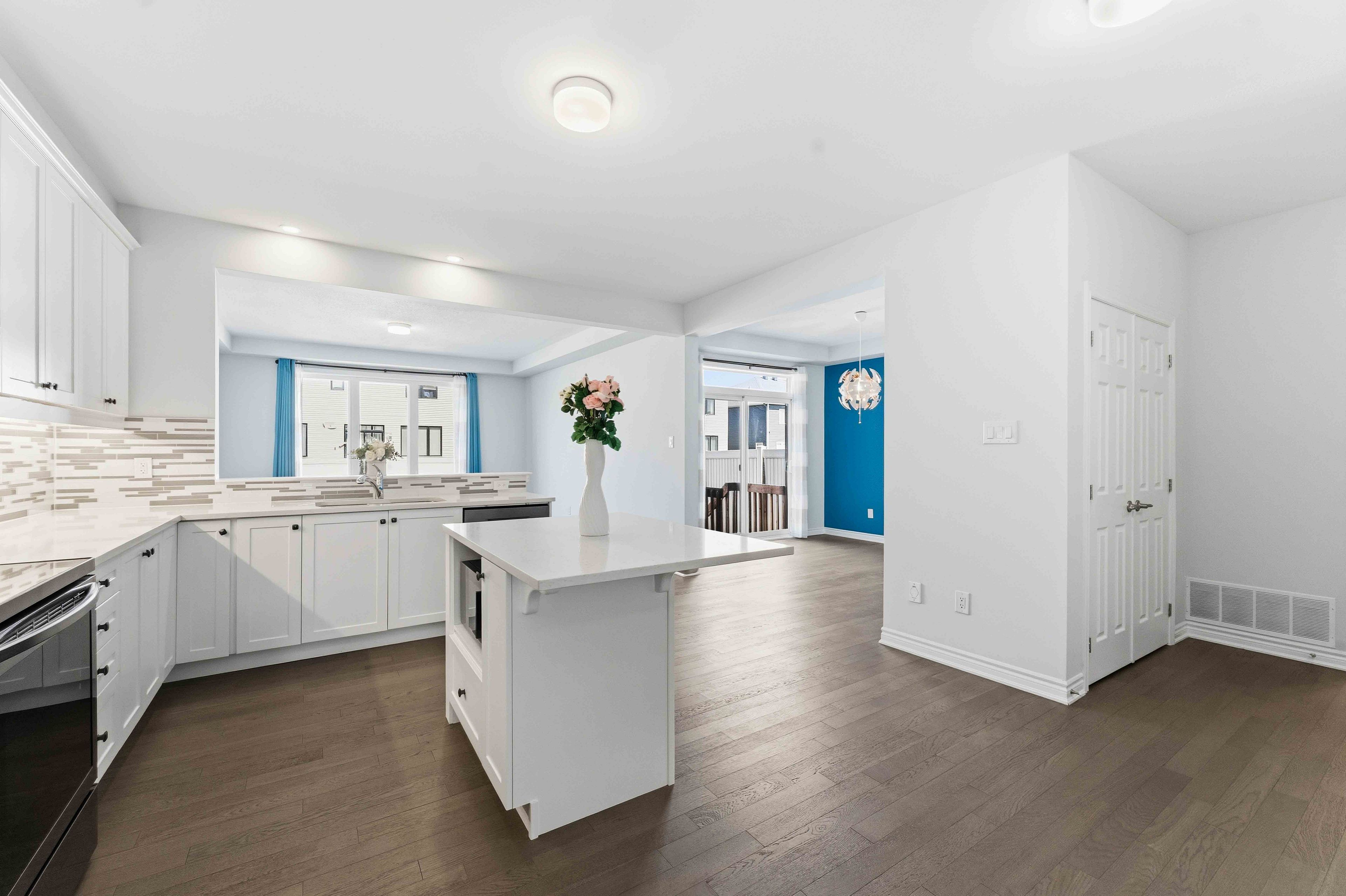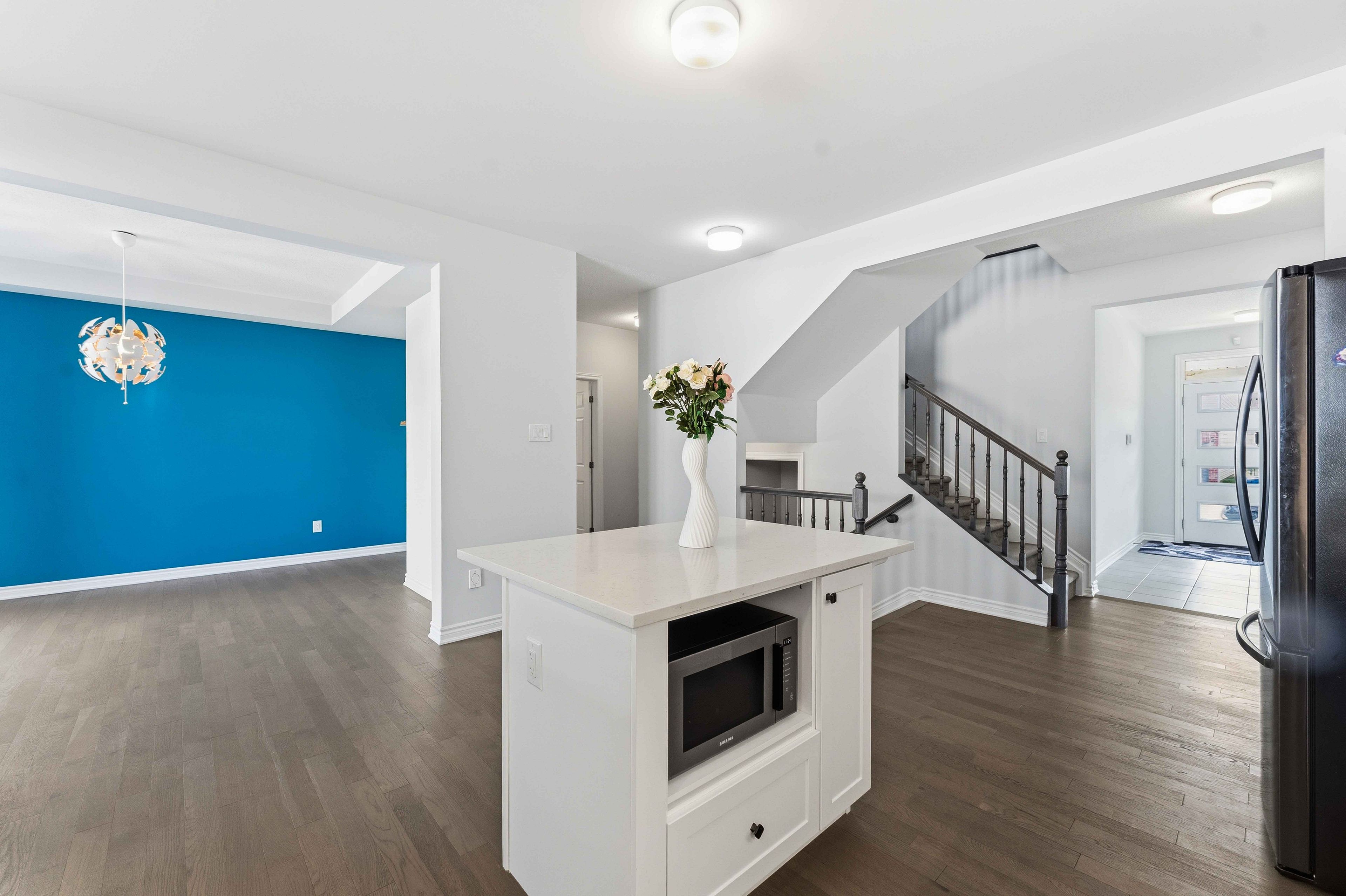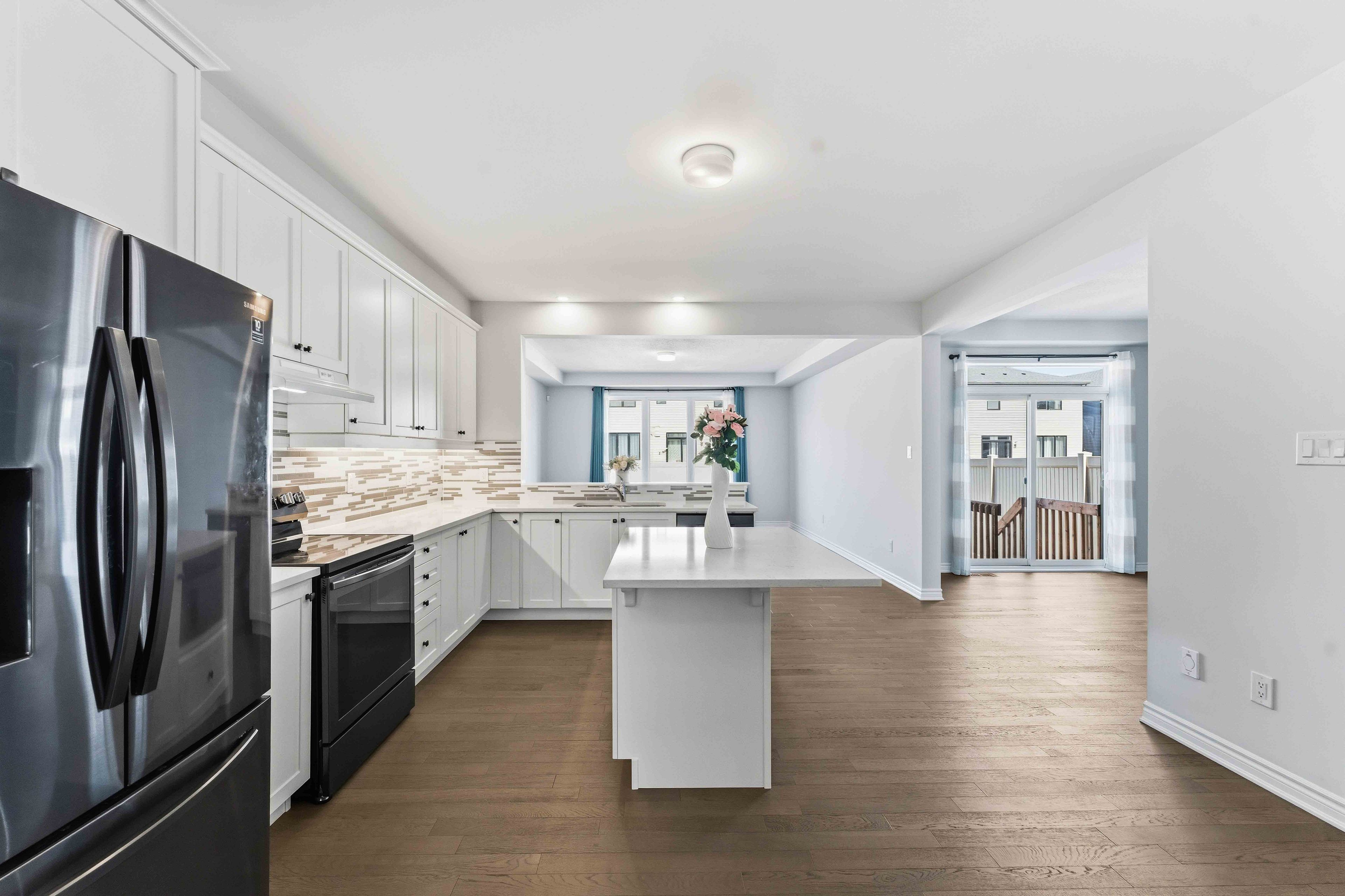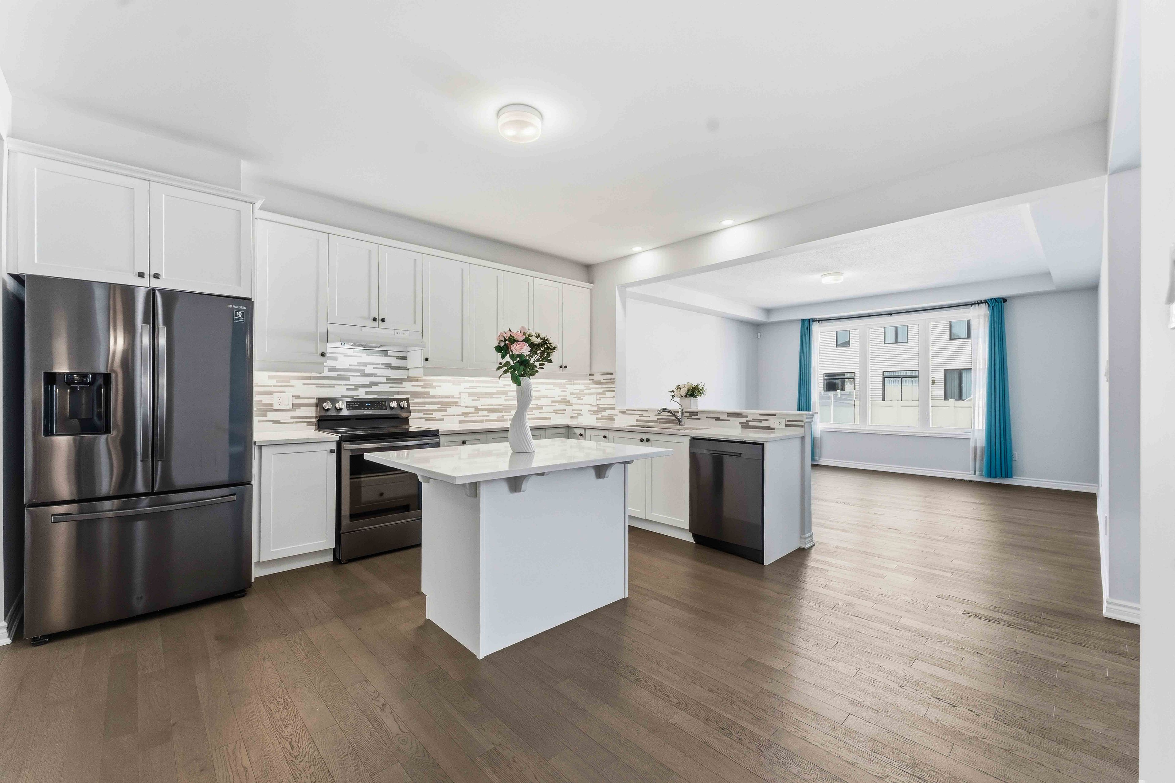 • Open-concept main floor features rich hardwood floors and modern kitchen amenities.