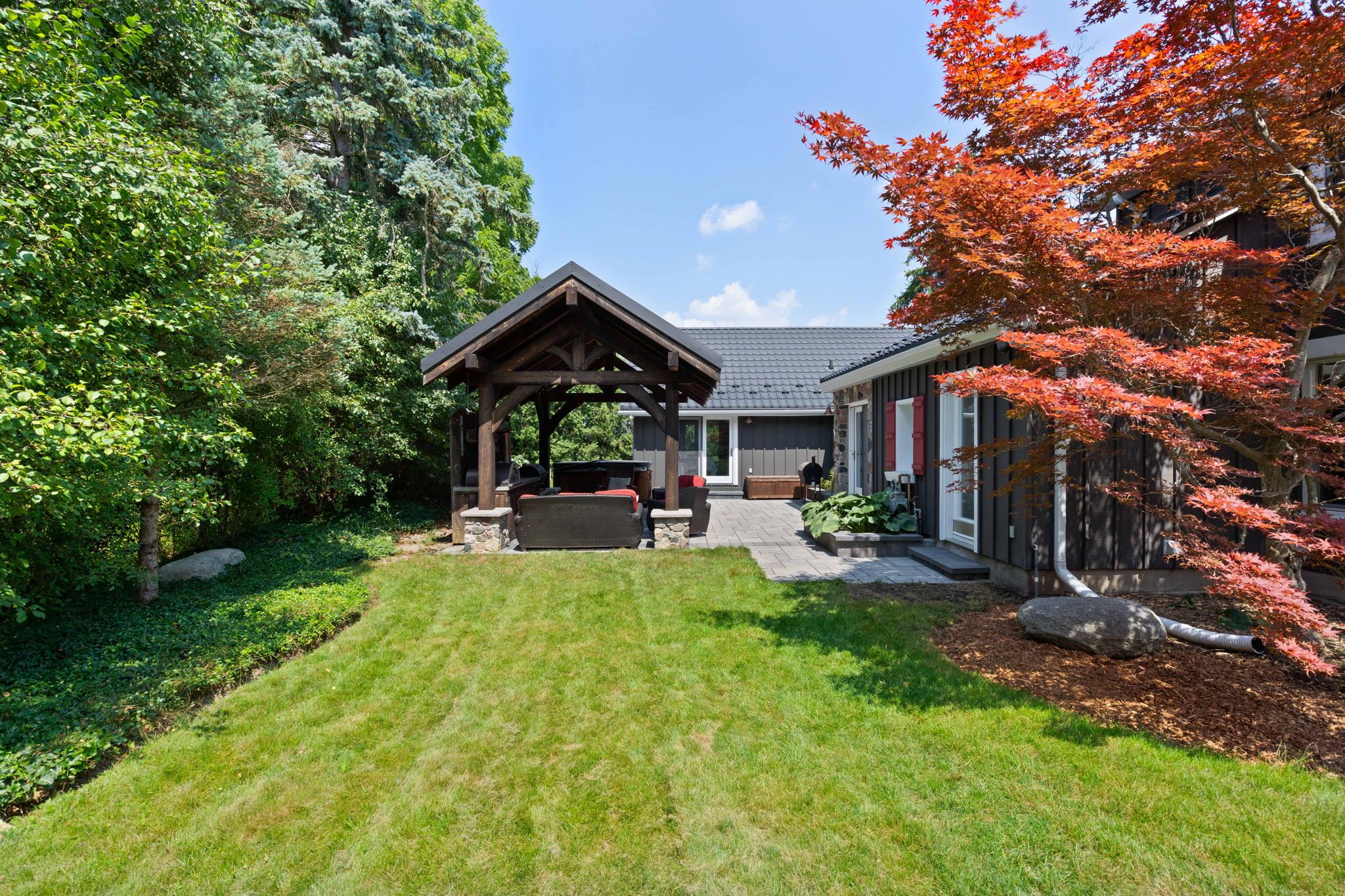 Country in the city. Combining the best of cottage living, country charm, and city amenities, all rolled into one. Welcome to 515 jarvis street. Set on a stunning 0. 66-acre lot surrounded by mature trees and nature, this unique property offers an ultra-private lifestyle just minutes from downtown london, springbank park, shopping, dining, entertainment, and convenient access to both highway 401 and 402. Professionally renovated with attention to detail, this 1. 5-storey stone and board-and-batten home offers over 2,300 sq ft of above-grade living space. The main floor features a spacious primary bedroom with a 4-piece ensuite, a welcoming sunroom, large living and dining areas, a showstopper kitchen with granite counters, and a vaulted family room with a gas fireplace that creates a warm and inviting atmosphere. Upstairs, you'll find two additional bedrooms and a 2-piece bathroom, providing flexibility for family, guests, or a home office. Outside, the 18-by-14-foot timberframe pavilion with metal roof anchors the beautifully landscaped backyard, complete with a built-in outdoor kitchen and an arctic spa hot tub. The detached garage and workshop provide 774 sq ft of space, plus a finished 296 sq ft loft with its own gas fireplace, ideal for a guest suite, studio, or home business. The home is connected to the municipal sewer. It currently uses well water, but a municipal water line has already been brought into the basement, making conversion easy. With seasonal skyline views, natural privacy, and a central location close to everything, this property is a rare opportunity to enjoy the best of all worlds.