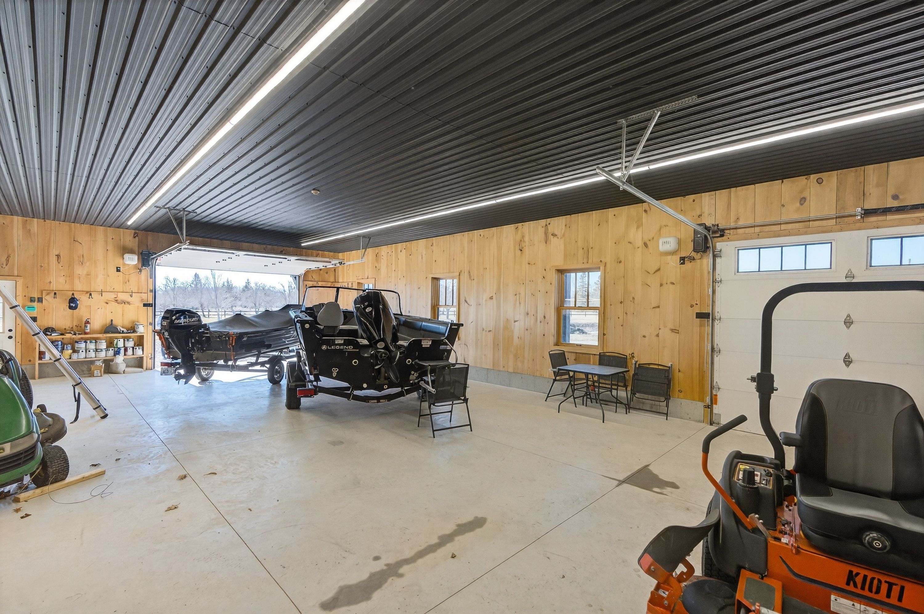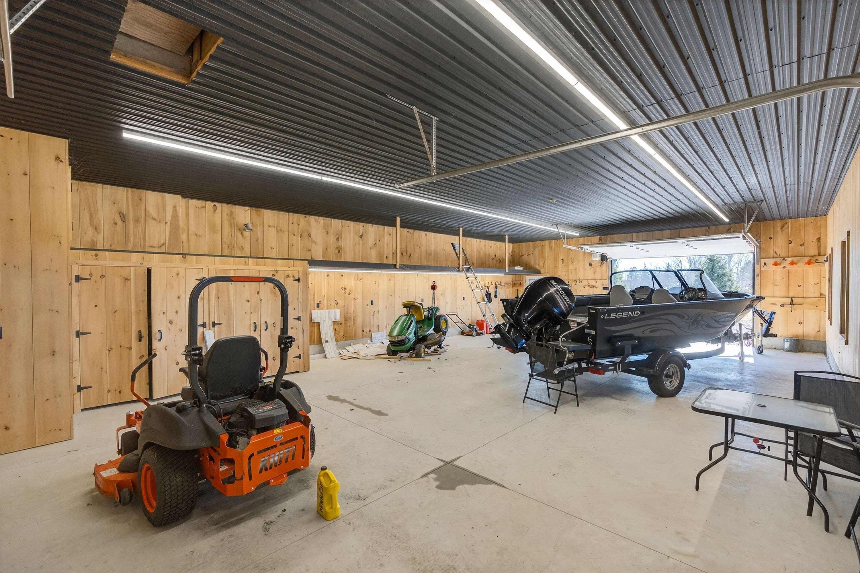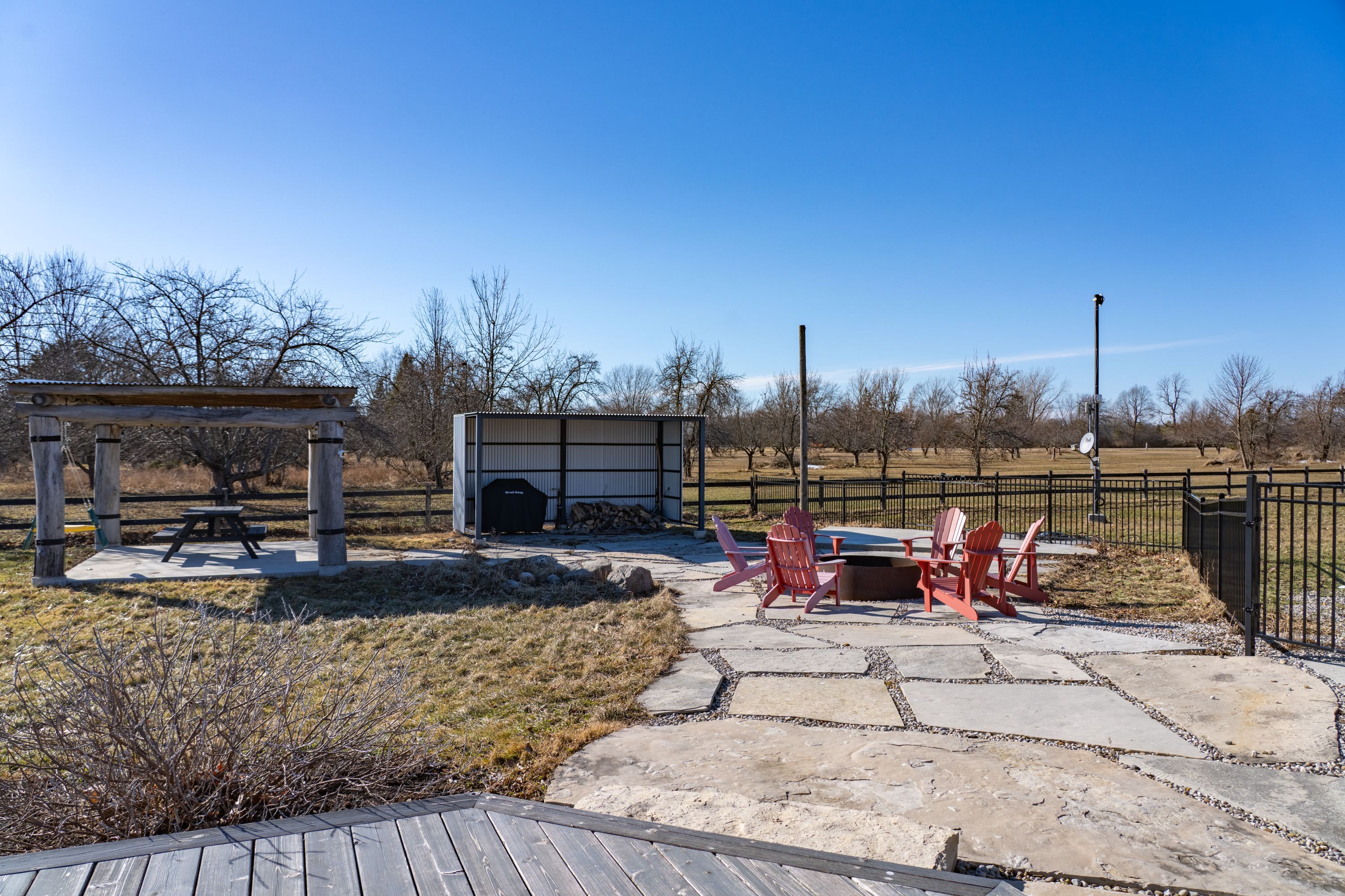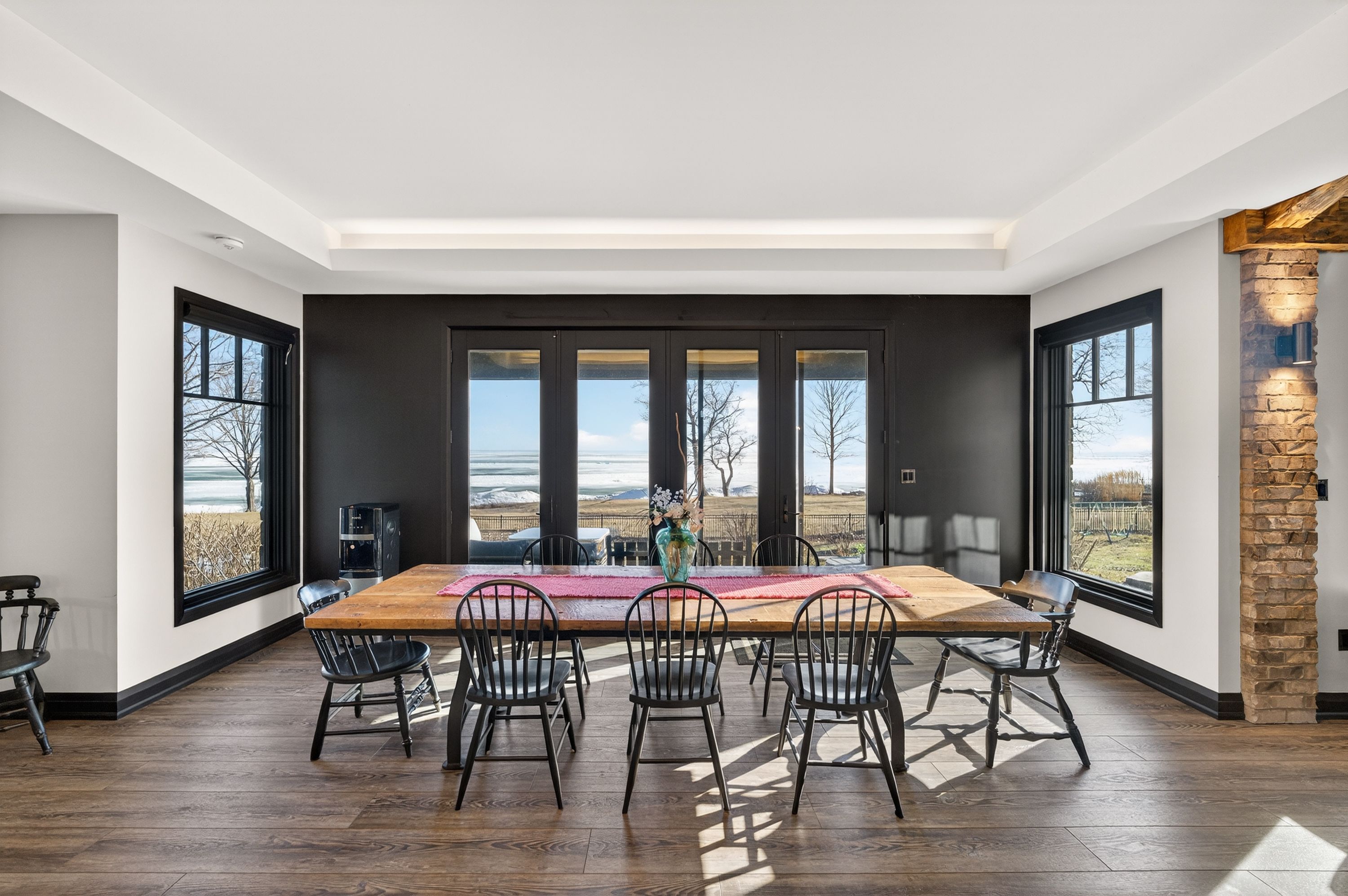 Behind a gated entrance and down a winding tree-lined driveway sits a lakefront estate along the shores of lake erie in the community of dunnville. Welcome to 515 sandy bay. Set on over 5. 5 acres with more than 270 feet of shoreline, this sprawling bungalow blends contemporary design with natural materials including stacked stone, wood accents, exposed beams and steel structural elements. The layout captures lake views from the main living areas. From the foyer, sightlines extend through the kitchen and dining area toward the water. The kitchen features black cabinetry, suede granite countertops, a large island with seating, pebble stone backsplash, wolf gas range, double built-in ovens, custom panel refrigerator and a walk-in pantry accessed through a repurposed horse stable door. The main level is divided into two wings. One side includes the bedrooms and bathrooms, while the other opens to the living room, glass sunroom & home office. Vaulted ceilings, exposed beams and stone fireplaces frame the lake views while large windows provide natural light. The primary suite features a walk-in closet and an ensuite with tin ceilings, floating wood vanity with chain detail, walk-in glass shower and black soaker tub positioned toward the lake. The fully finished lower level is accessed by a steel beam staircase with wood capping. Stone feature walls and an electric fireplace are featured throughout. Bedrooms include barn doors, wood and log feature walls, a custom lake mural and a converted wine cellar now used as a children's bedroom. Exterior features include a gated entrance, winding driveway with lighting, fruit trees, raised garden beds and a fenced yard. Massive stone walkways, a fire pit area and rock steps lead to the shoreline. A covered patio off the kitchen provides space for outdoor dining and entertaining. A detached shop offers space for storage, boats or hobbies and includes a finished one-bedroom apartment ideal for guests or extended family.